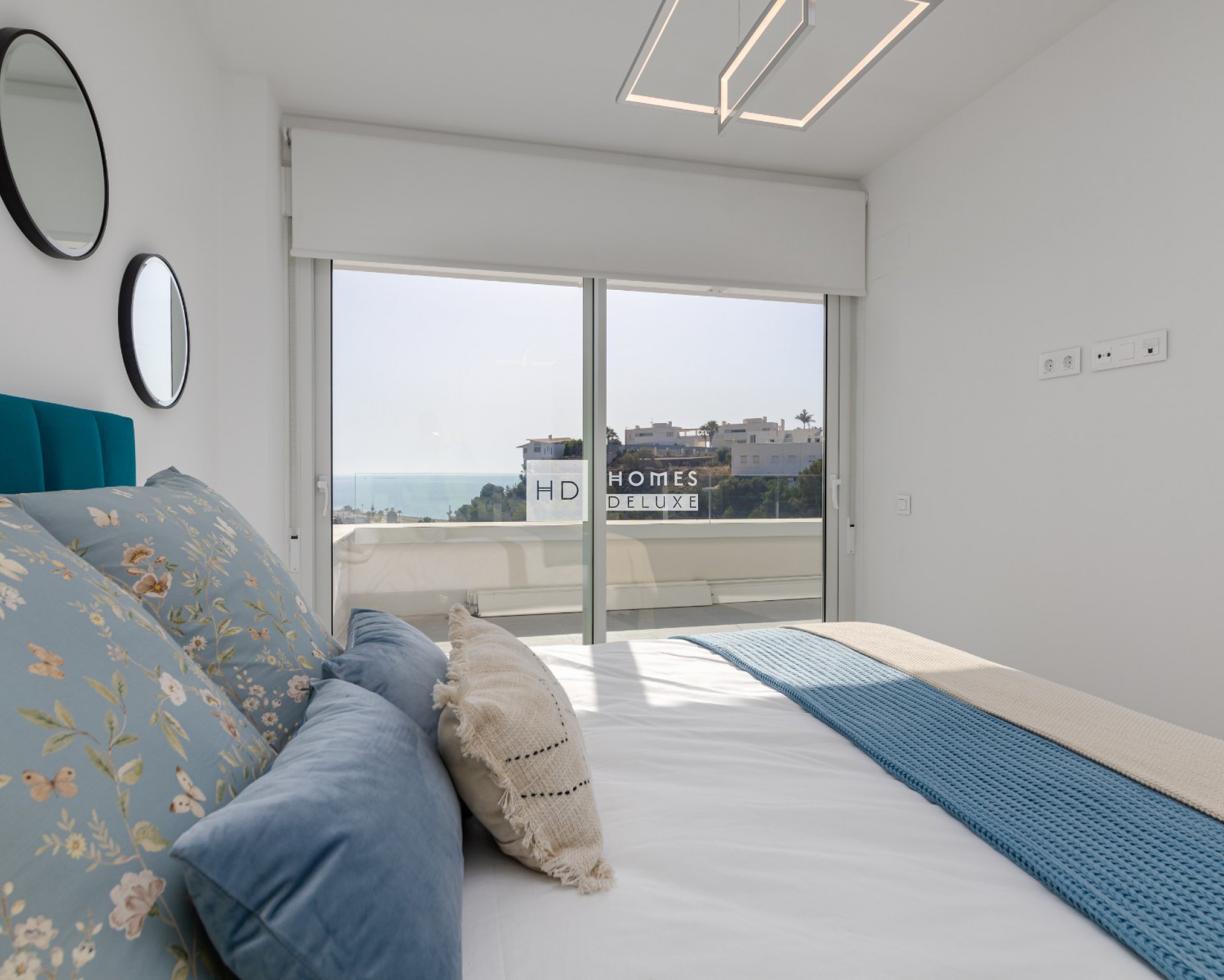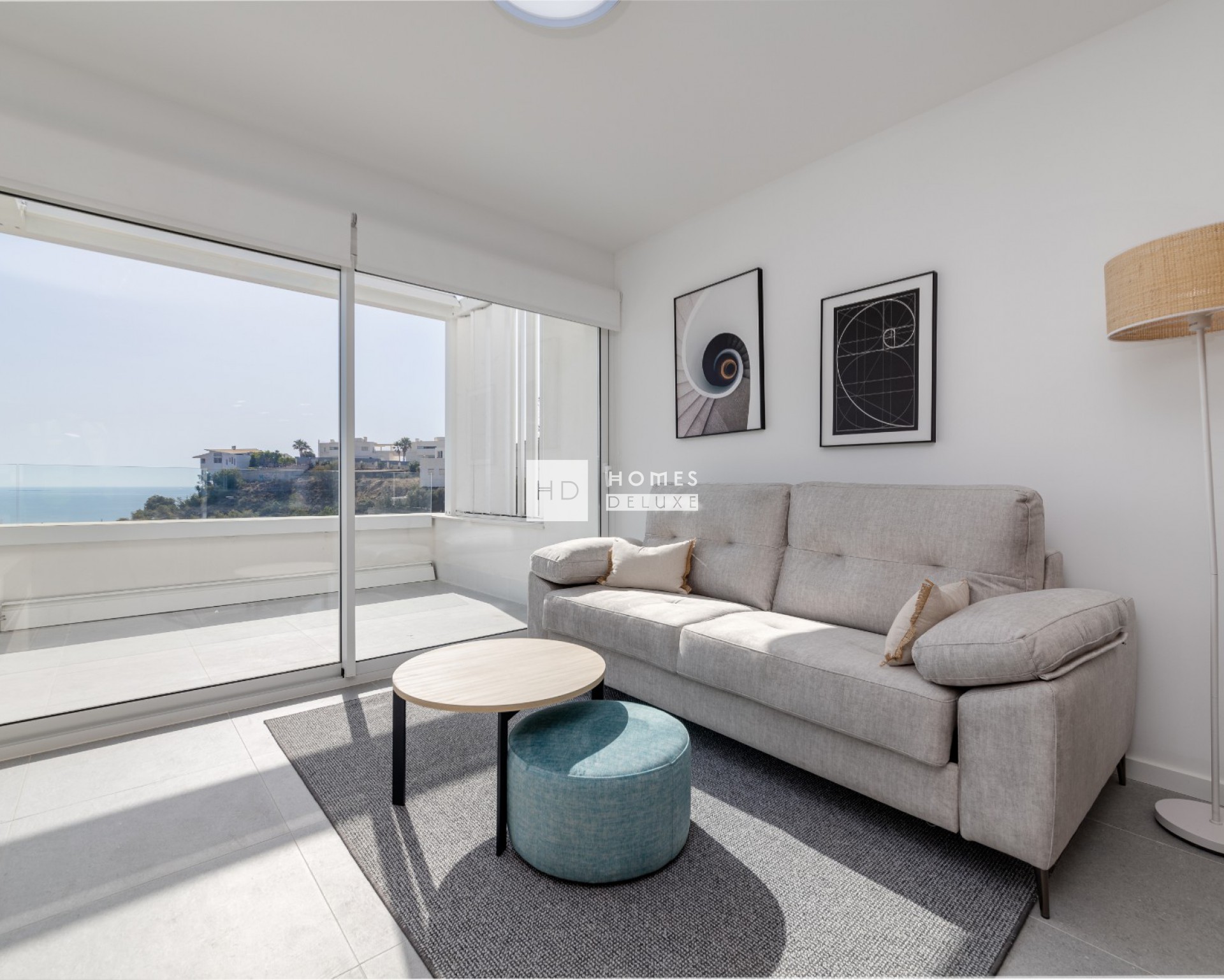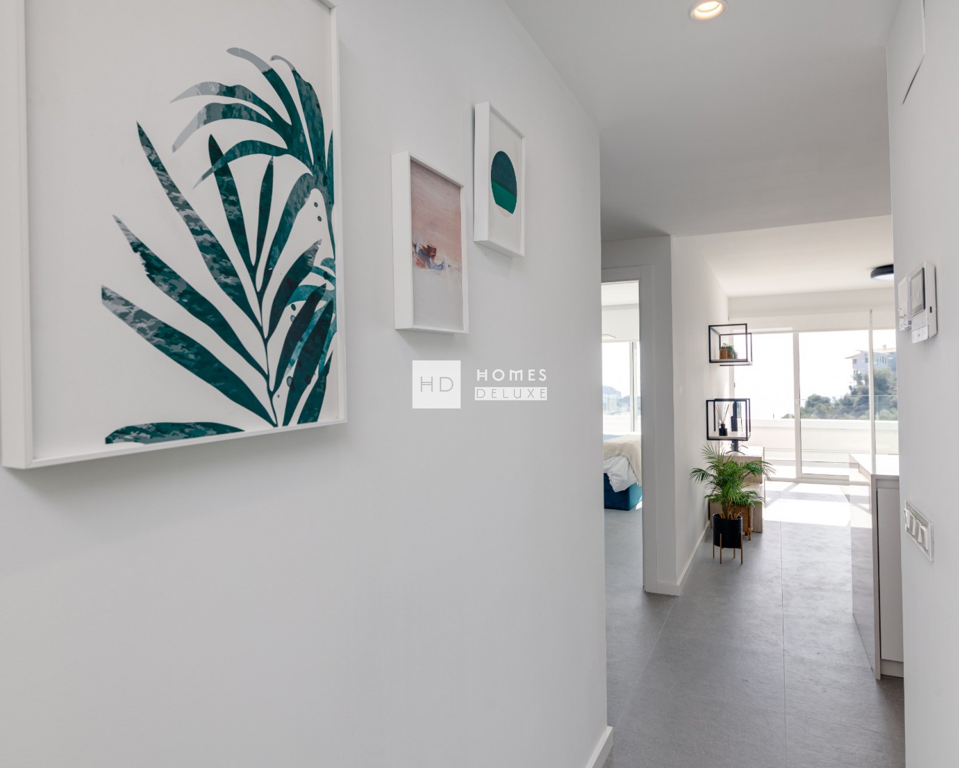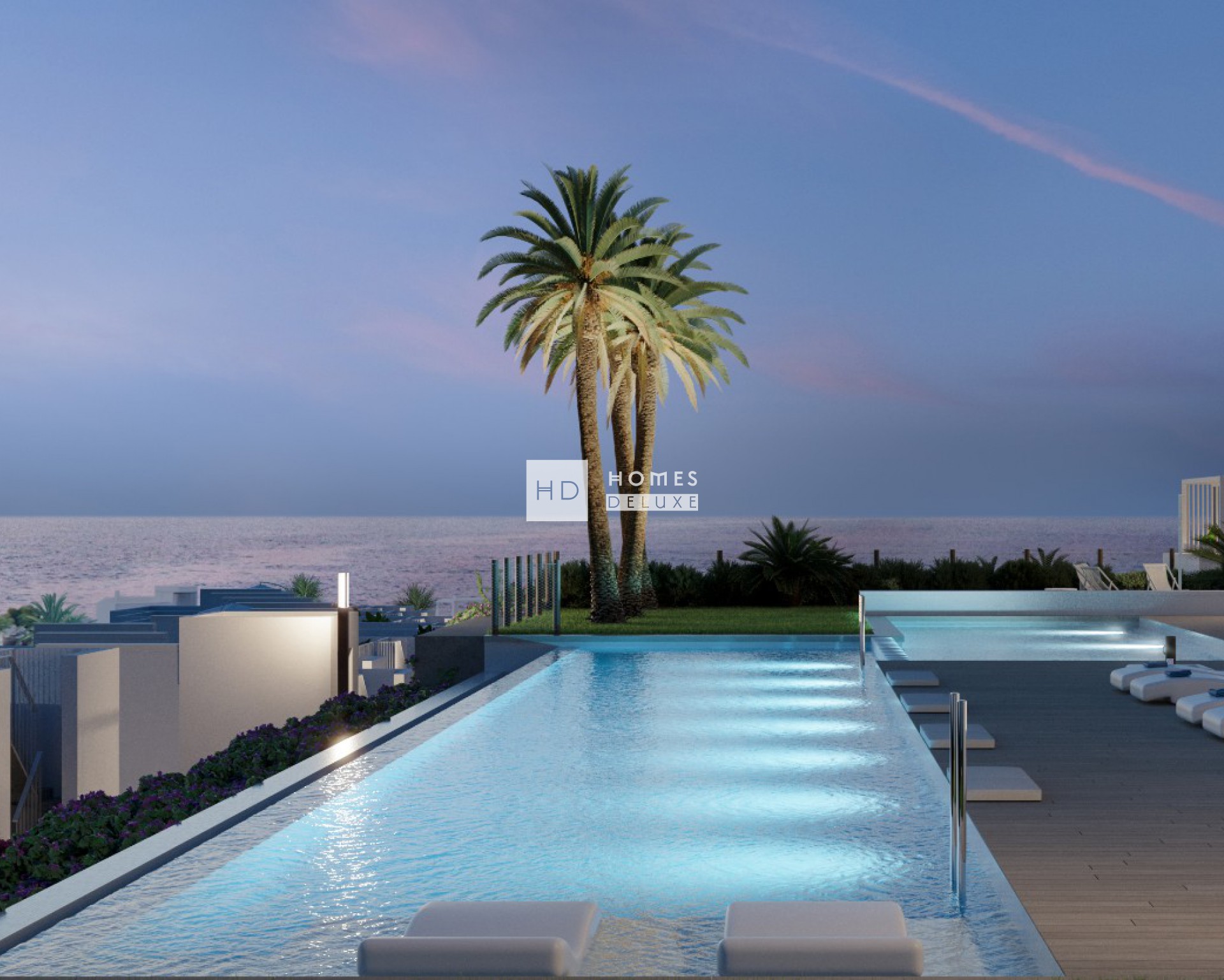 Die Anlage besteht aus 5 terrassenförmig angelegten Gebäuden, die sich an die steile Hanglage anpassen, so dass jedes Haus einen unschlagbaren Ausblick bietet. Die Anlage verfügt über schöne Gemeinschaftspools, die mit dem Meer verschmelzen, angenehme Außengärten, Freizeitbereiche und Promenaden. Der beheizte Infinity-Pool verfügt über einen separaten Spielbereich für Kinder und eine Schwimmbahn. Wenn Sie es vorziehen, können Sie sich in einem der beiden Whirlpools mit Blick auf das Meer entspannen. Die Sonnenterrasse rund um den Pool ist mit Liegestühlen, Rasenflächen und einem exklusiven Außenbereich für Yoga und Pilates mit Blick auf das Meer ausgestattet. Die Anlage verfügt außerdem über einen Fitnessraum mit Umkleidekabine, einen Padelplatz und einen Gemeinschaftsraum mit Meerblick, der sich im Zentrum der Wohnanlage befindet und in dem Sie Veranstaltungen feiern, Projektionen ansehen oder sich mit anderen Bewohnern treffen können, was Ihren Aufenthalt in der Anlage bereichert. Ausgestattet mit einem großen Fernsehbildschirm, einer Sitzecke, einer Küchenbar und einem Essbereich.
