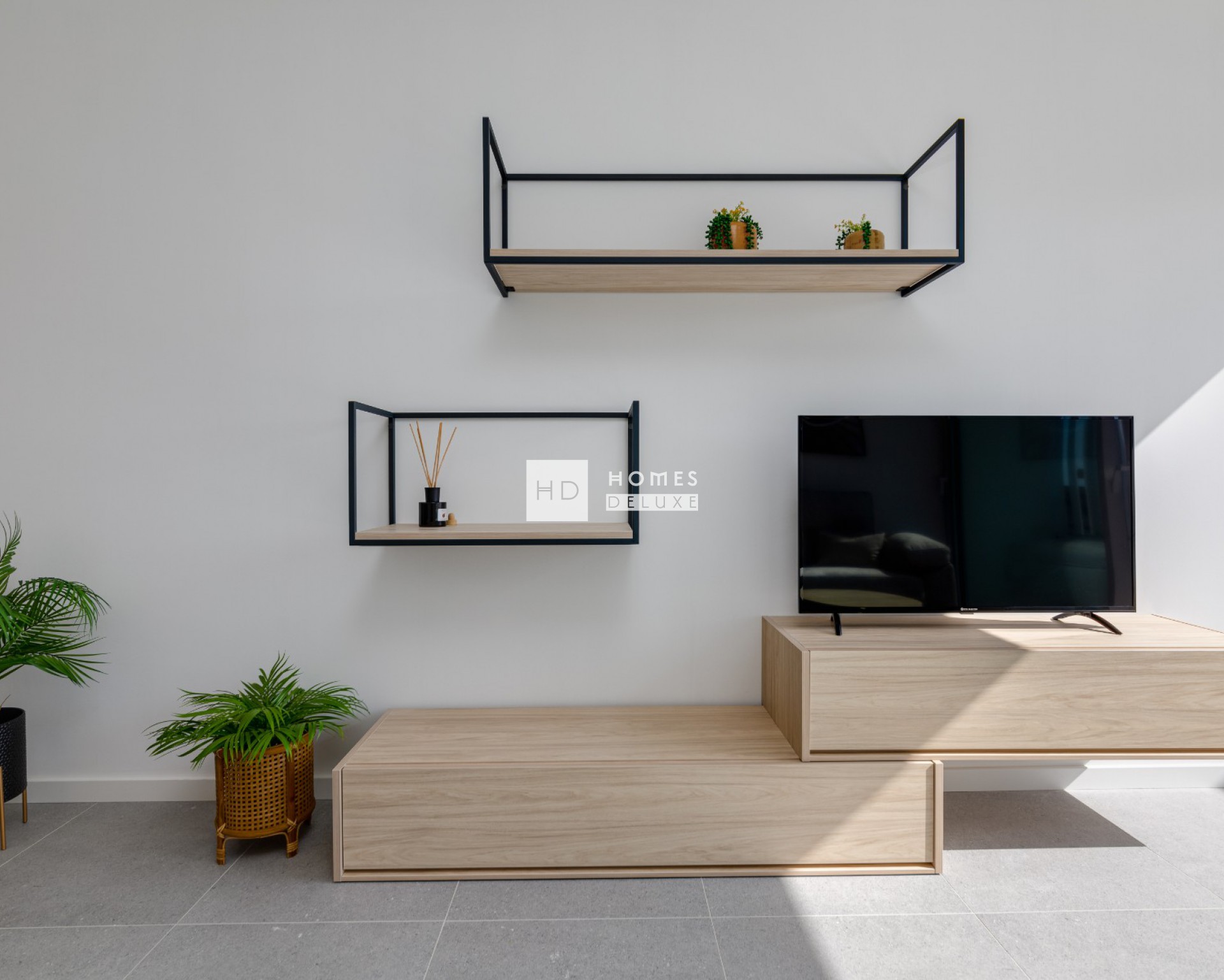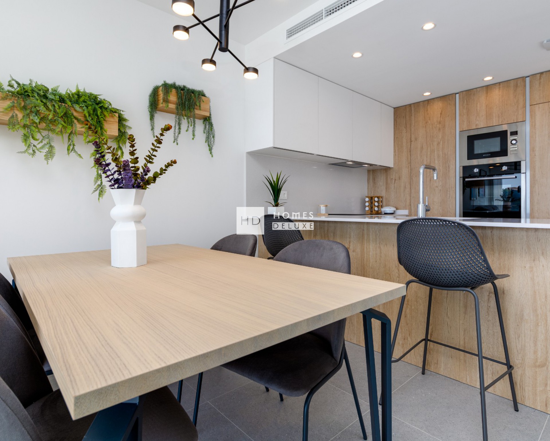 Die Innenausstattung besteht aus einem hellen und geräumigen Wohn- und Essbereich mit großen Fenstern, die direkt auf die Terrasse führen, so dass man die Landschaft vom Innenraum aus genießen kann, einer voll ausgestatteten modernen Küche im amerikanischen Stil, einem Hauptschlafzimmer mit eigenem Bad, zwei weiteren Doppelschlafzimmern und einem separaten Gästebad, das auch von einem der Schlafzimmer aus zugänglich ist. Je nachdem, für welches Modell Sie sich entscheiden, verfügen Sie über eine private Sonnenterrasse oder einen privaten Garten und einen offenen Unterbau.