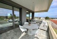 Das Sky-Villa-Apartment mit seinem avantgardistischen Design wurde mit dem Gedanken an puren Luxus gebaut, mit hohen Qualitätsstandards und einigen einzigartigen Merkmalen. Die Wohnung wurde im Jahr 2022 gebaut und hat eine bebaute Fläche von 140 m² und große Terrassen. Die Innenaufteilung besteht aus einem hellen, offenen Wohn- und Essbereich mit mehreren Terrassentüren im gesamten Wohnbereich, die Zugang zu den vorderen und hinteren Terrassen bieten, und dem spektakulären Fenster, das die Integration in die Umgebung maximiert, einer einzigartig gestalteten, eleganten Küche mit allen hochwertigen Geräten, dem Hauptschlafzimmer mit eigenem Bad und begehbarem Kleiderschrank / Ankleidebereich, zwei weiteren Doppelschlafzimmern, die alle über Terrassentüren Zugang zur Terrasse haben, und einem separaten Gästebad. Die großzügigen Terrassen ermöglichen es Ihnen, das Leben im Freien zu genießen und die unglaubliche Aussicht zu genießen.