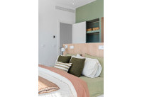 Die Innenaufteilung besteht aus einem geräumigen, offenen Wohn- und Essbereich mit großen Fenstern im gesamten Wohnbereich, die viel natürliches Licht hereinlassen und sich vollständig öffnen lassen, so dass Innen- und Außenbereich zu einer Einheit verschmelzen, einer modernen, voll ausgestatteten Küche im amerikanischen Stil mit Kochinsel und Terrassentüren, die Zugang zur Terrasse bieten, einer Gästetoilette und einem großen Schlafzimmer mit Doppelbett und eigenem Bad im Erdgeschoss. Die Innentreppe führt Sie in den ersten Stock mit der beeindruckenden Master-Suite mit eigenem Bad und dem erstaunlichen begehbaren Kleiderschrank / Ankleidebereich, das Master-Schlafzimmer verfügt über besondere Merkmale mit den großen Fenstern, die in allen Ansichten und hat auch Zugang zu einer privaten Sonnenterrasse von 15m2. Der erste Stock hat auch ein weiteres Schlafzimmer mit Doppelbett und en-suite Badezimmer und hat Zugang zu einer privaten Terrasse von knapp über 4m2.