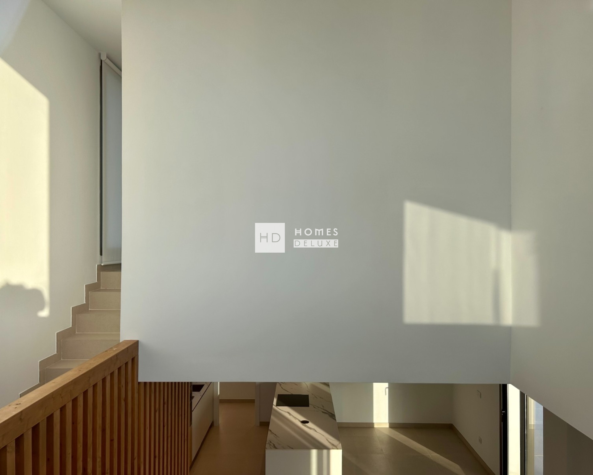 Es stehen mehrere Villenmodelle zur Auswahl, die sich in der Aufteilung leicht unterscheiden. Die Innenausstattung besteht aus einem Eingangsbereich, der zu einem hellen und geräumigen offenen Wohn- und Essbereich mit bodentiefen Fenstern führt, die dafür sorgen, dass Sie viel natürliches Licht in der gesamten Villa haben und Zugang zur Terrasse und zum Garten haben. Im Hauptwohnbereich befindet sich eine voll ausgestattete moderne Küche im amerikanischen Stil mit einer Insel in der Mitte, die mit mattem Laminat oder Holz verkleidet ist. Es gibt auch einen separaten Waschraum und eine Gästetoilette. Im Erdgeschoss befinden sich außerdem zwei Doppelschlafzimmer, beide mit eigenem Bad. Die Innentreppe führt Sie in den ersten Stock, wo sich die beeindruckende Hauptsuite mit einem großen Schlafzimmer, einem eigenen Bad und einem Ankleidebereich befindet. Die Primary Suite hat Zugang zu zwei Sonnenterrassen auf der Vorder- und Rückseite des Anwesens. Je nach Villenmodell gibt es auch Optionen mit einem Schlafzimmer im Erdgeschoss und zwei Schlafzimmern im ersten Stock. Die Villen, die über ein Untergeschoss verfügen, sind über eine Innentreppe zu erreichen. Hier befinden sich die private Garage, ein englischer Innenhof, der natürliches Licht hereinlässt, und zusätzliche Räume, die sich perfekt für zusätzliche Schlafzimmer, ein Büro, ein Fitnessstudio, einen Mehrzweckraum oder Stauraum eignen, je nach Ihren Bedürfnissen und Anforderungen.