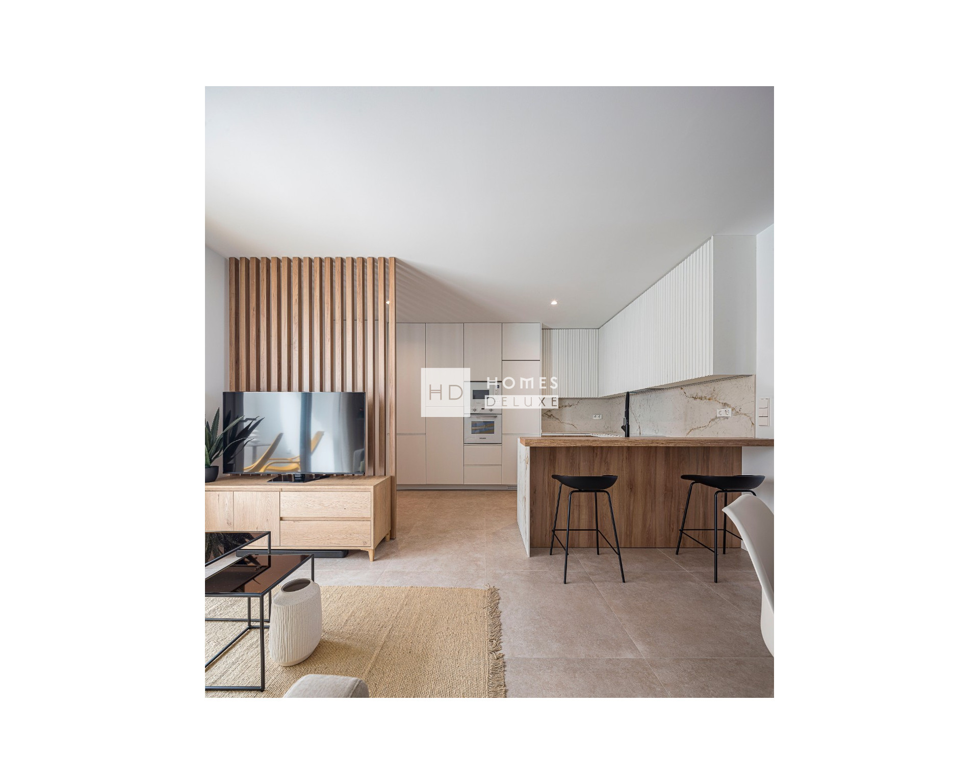 Die Wohnung im Obergeschoss Innenraum Layout : Der Zugang zur Dachgeschosswohnung erfolgt über eine Treppe, die zu einer großen privaten gefliesten Terrasse und zum Eingang der Immobilie führt. Im Inneren finden Sie einen geräumigen, offenen Wohn- und Essbereich mit einer großen, voll ausgestatteten amerikanischen Küche. Die Wohnung verfügt über zwei Schlafzimmer (das Hauptschlafzimmer mit eigenem Bad) und ein separates Gästebad. Die private Dachterrasse ist von der Rückseite der Küche aus zugänglich und verfügt über eine Sommerküche und eine Pergola, perfekt um den ganzen Tag die Sonne zu genießen und im Freien zu essen.