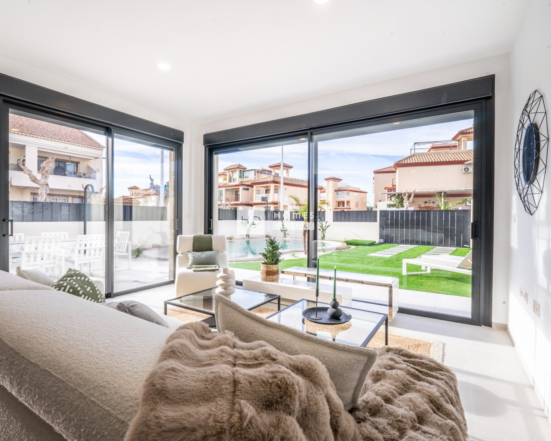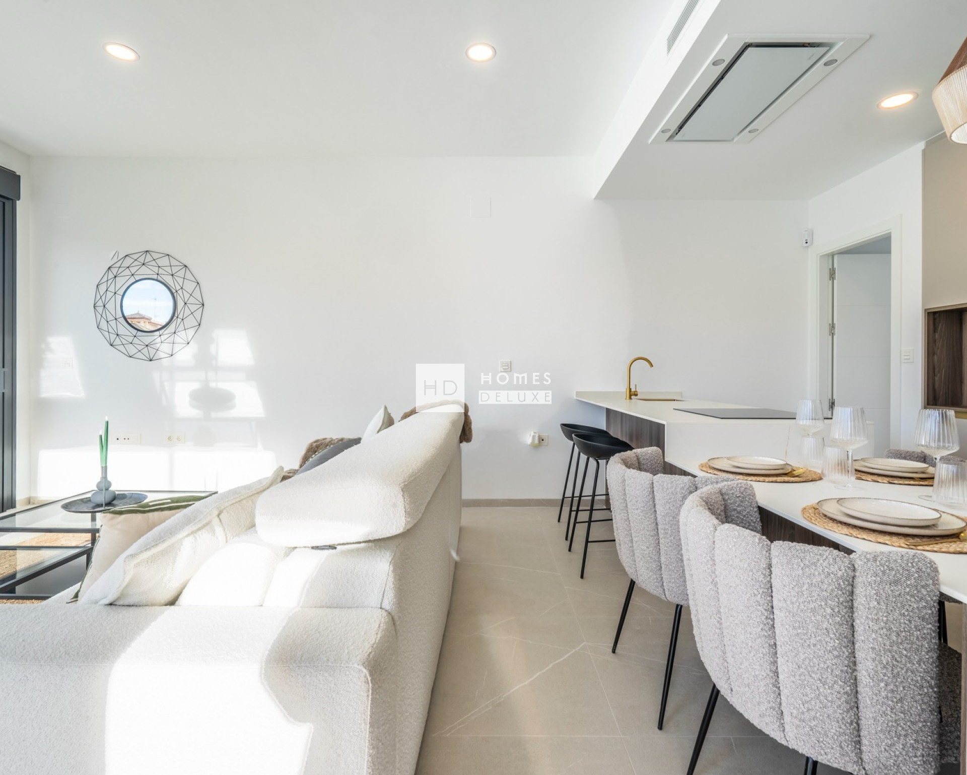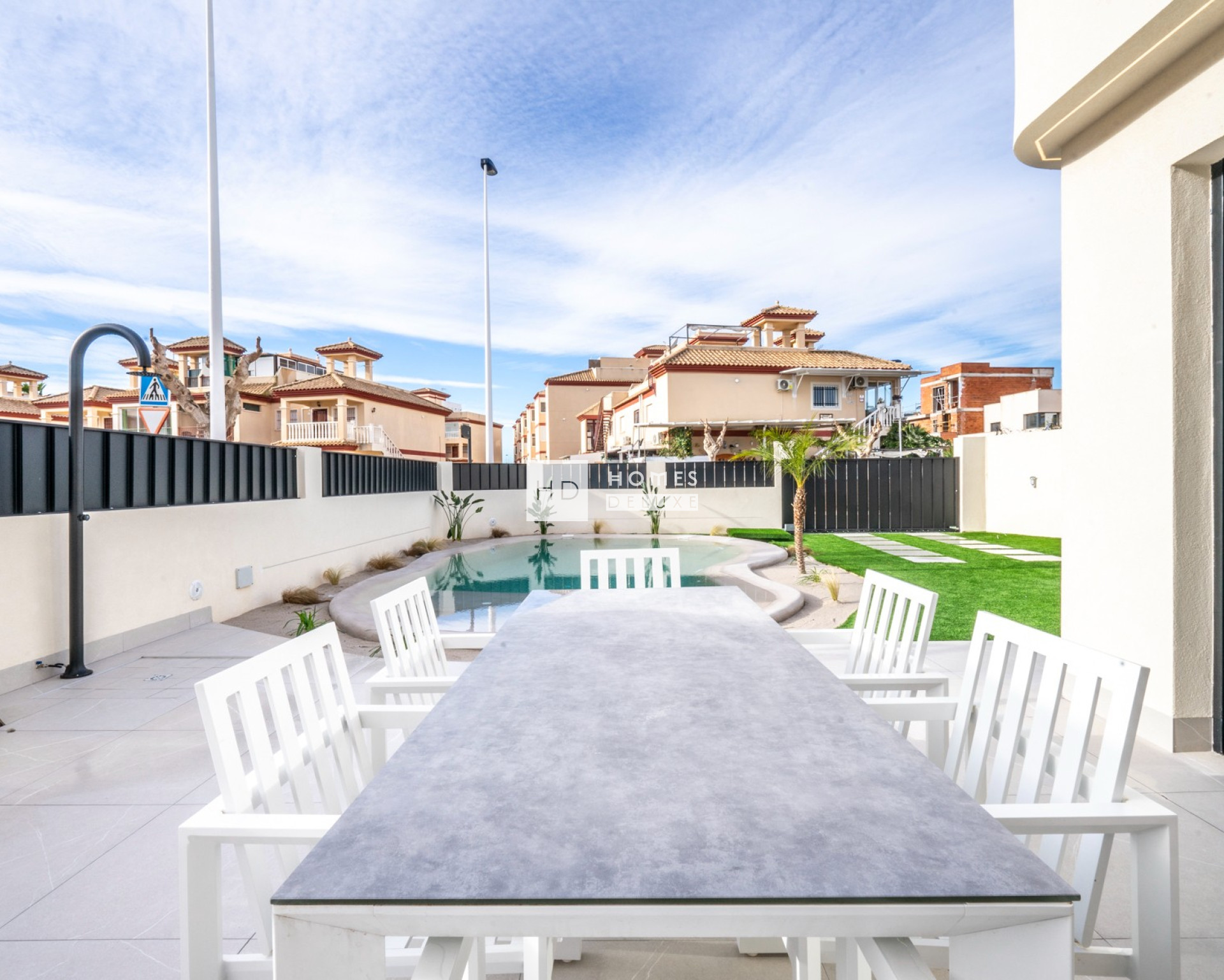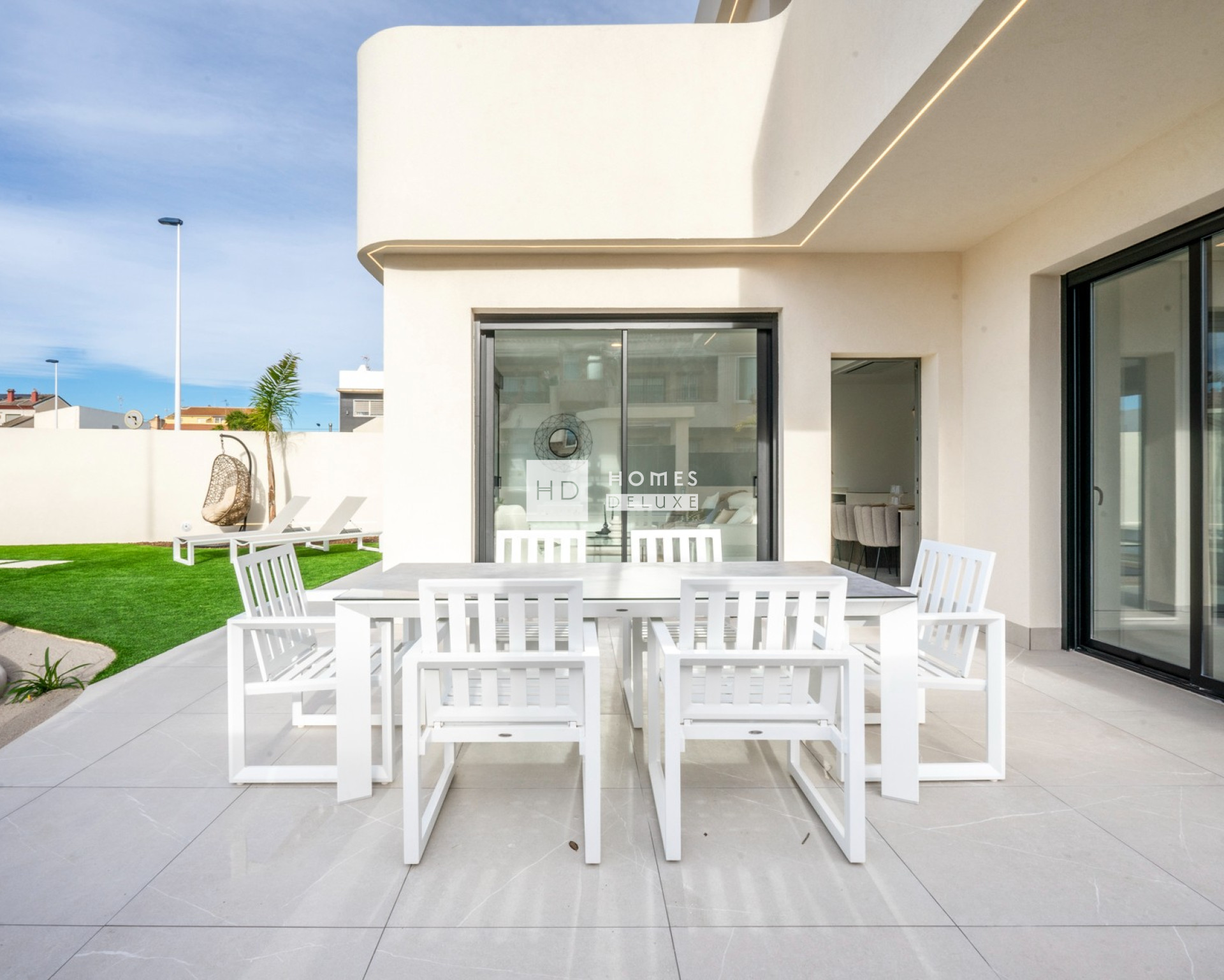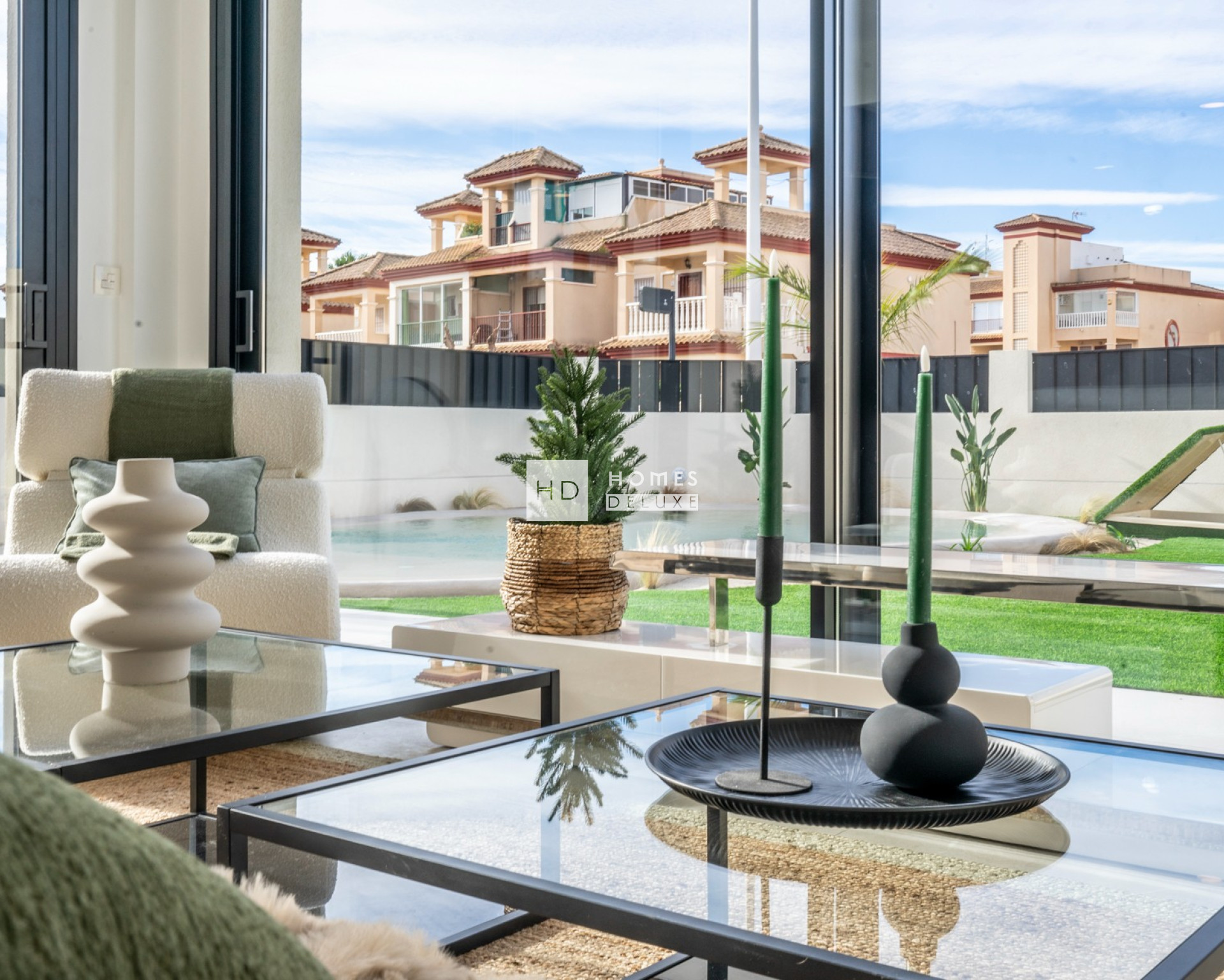Diese Villen verfügen über ein preisgekröntes, modernes Design mit großzügigen Außenbereichen, darunter ein privater Garten und Terrassenbereiche sowie ein atemberaubender privater Swimmingpool im Strandstil, der das Leben im Freien in Spanien optimal zur Geltung bringt.