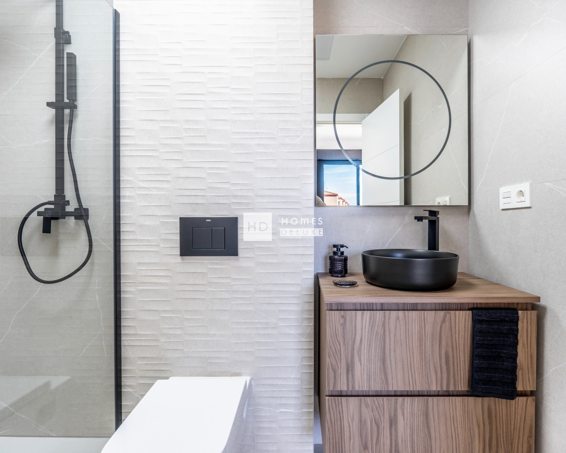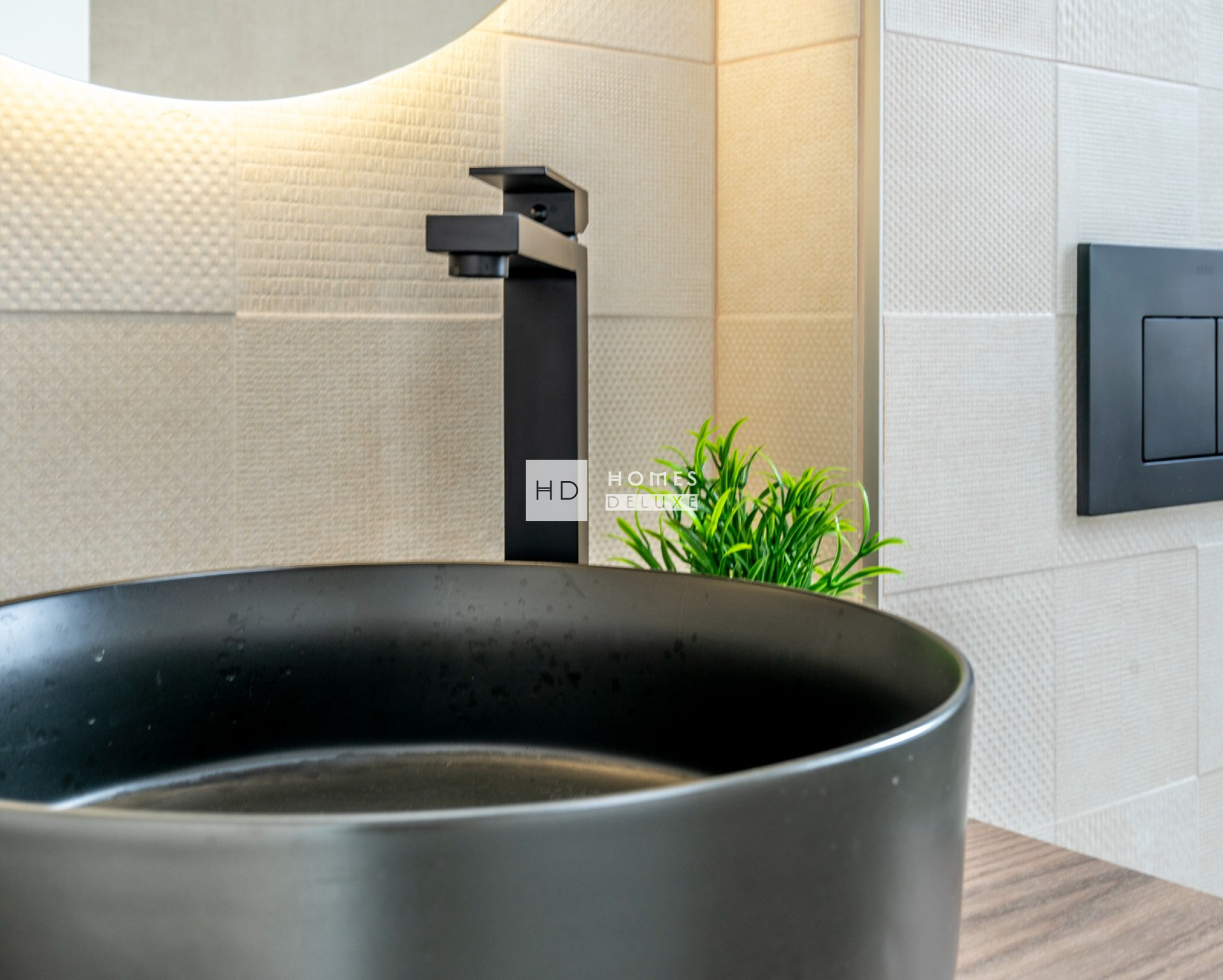 Die Wohnungen verfügen über eine vorinstallierte Klimaanlage, elektrische Küchengeräte (Backofen, Herd, Dunstabzugshaube, Mikrowelle, Kühl-Gefrierkombination und Geschirrspüler), Einbauschränke in allen Schlafzimmern, LED-Beleuchtung innen und außen, einen privaten Swimmingpool und einen privaten Parkplatz auf dem Grundstück.