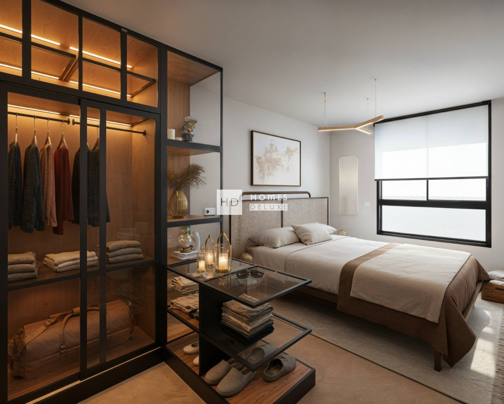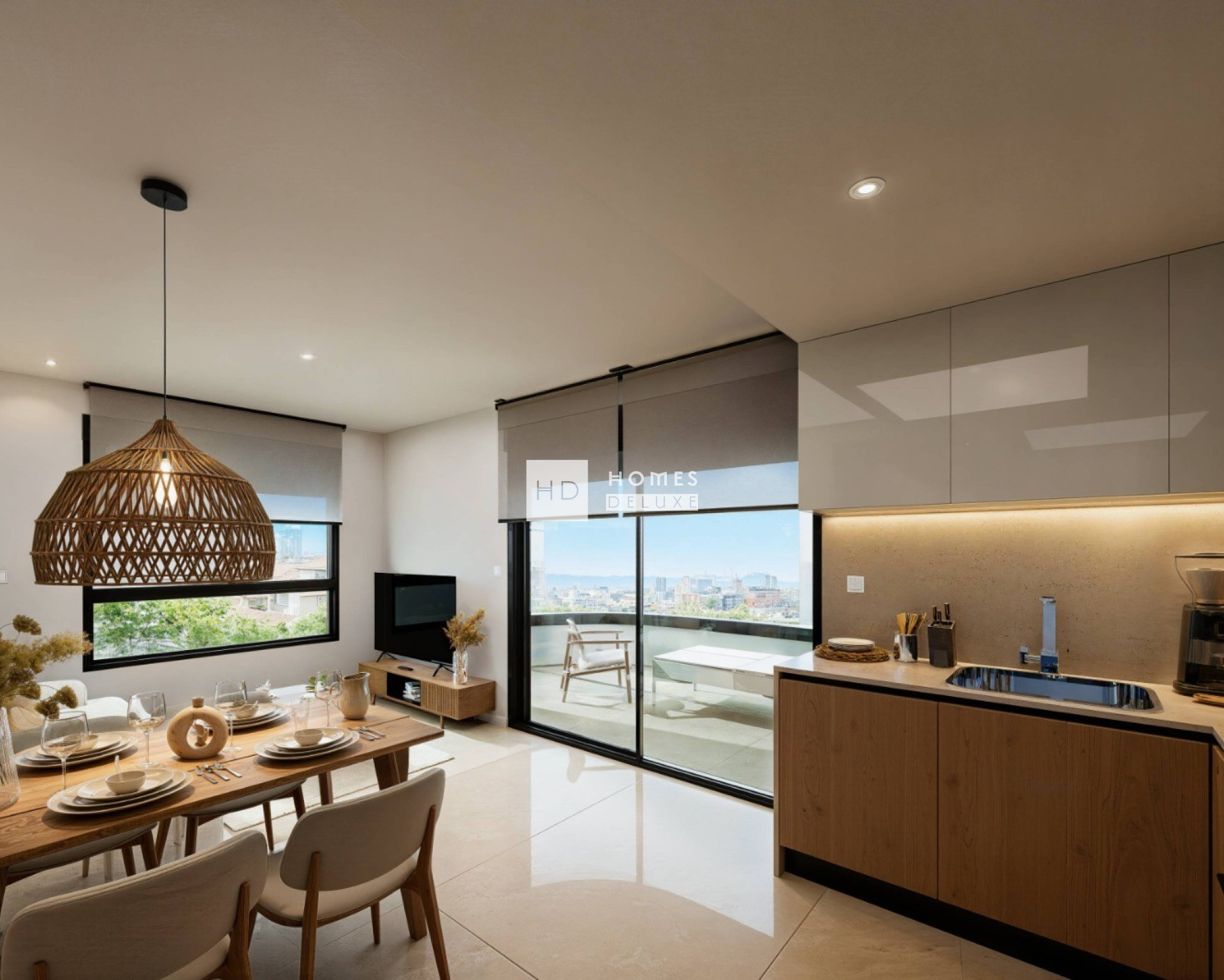 Das Gebäude hat 7 Etagen und ist in einem atemberaubenden zeitgenössischen Stil gestaltet. Das exklusive Penthouse sticht hervor, da es das einzige Haus auf seiner eigenen Etage ist und über einen privaten Swimmingpool und einen Grillbereich verfügt, ideal für diejenigen, die zusätzliche Privatsphäre und Luxus suchen. Die Innenausstattung umfasst einen hellen und geräumigen offenen Wohn- und Essbereich mit großen Fenstern, die sich zur großzügigen Terrasse hin öffnen. Im Hauptwohnbereich befindet sich eine voll ausgestattete moderne Küche im amerikanischen Stil mit hohen und niedrigen Schränken mit Laminatoberfläche in Beigetönen kombiniert mit Holz. Das große Hauptschlafzimmer verfügt über ein eigenes Bad und einen Ankleidebereich. Es gibt ein weiteres geräumiges Doppelzimmer und ein separates Gästebad. Das Penthouse-Apartment verfügt über eine Außentreppe auf der Terrasse, die zum 78 m² großen Dachsolarium mit privatem Swimmingpool und eingebautem Grill führt. Die Immobilien sind mit einer Vorinstallation für eine Klimaanlage, Küchengeräten (Backofen, Cerankochfeld, Dunstabzugshaube und Kühl-Gefrierkombination), Einbauschränken und elektrischen Jalousien in allen Schlafzimmern, einer Video-Gegensprechanlage, einer LED-Außenbeleuchtung und einem privaten Parkplatz ausgestattet.