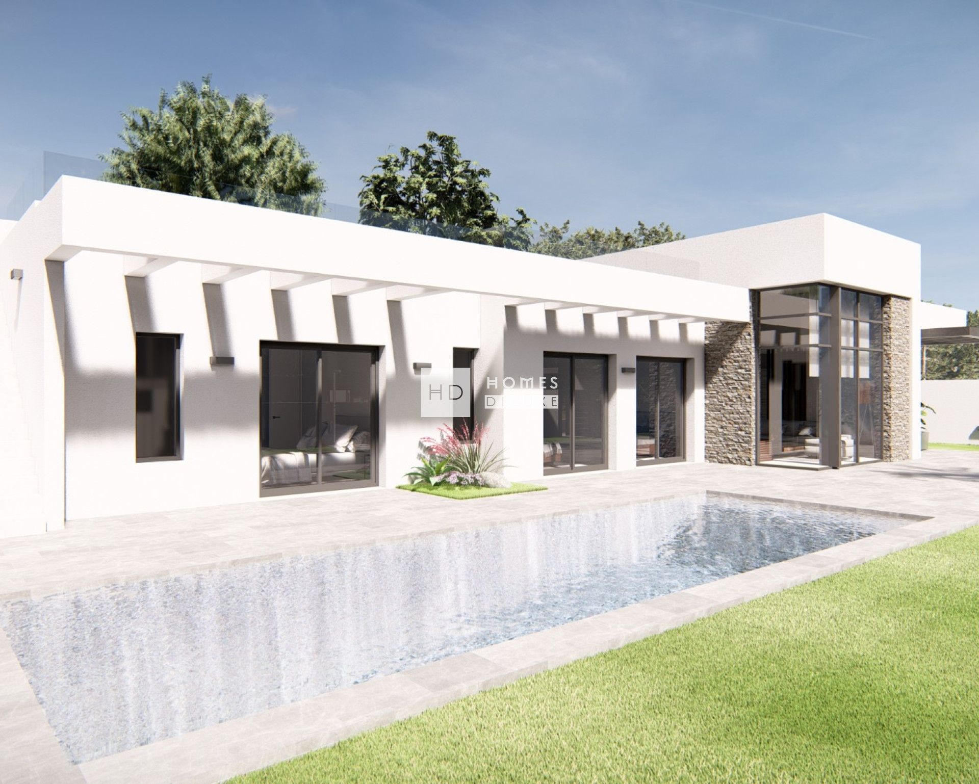 Das Haus wird innen und außen komplett ausgestattet übergeben, einschließlich Klimaanlage, Fußbodenheizung in allen Badezimmern, Küchengeräten, Einbauschränken in allen Schlafzimmern, LED-Beleuchtung im Innen- und Außenbereich, Garten mit Kunstrasen und weißem Kies, privatem Swimmingpool mit Vorinstallation für eine Wärmepumpe, Außendusche und privater Garage.