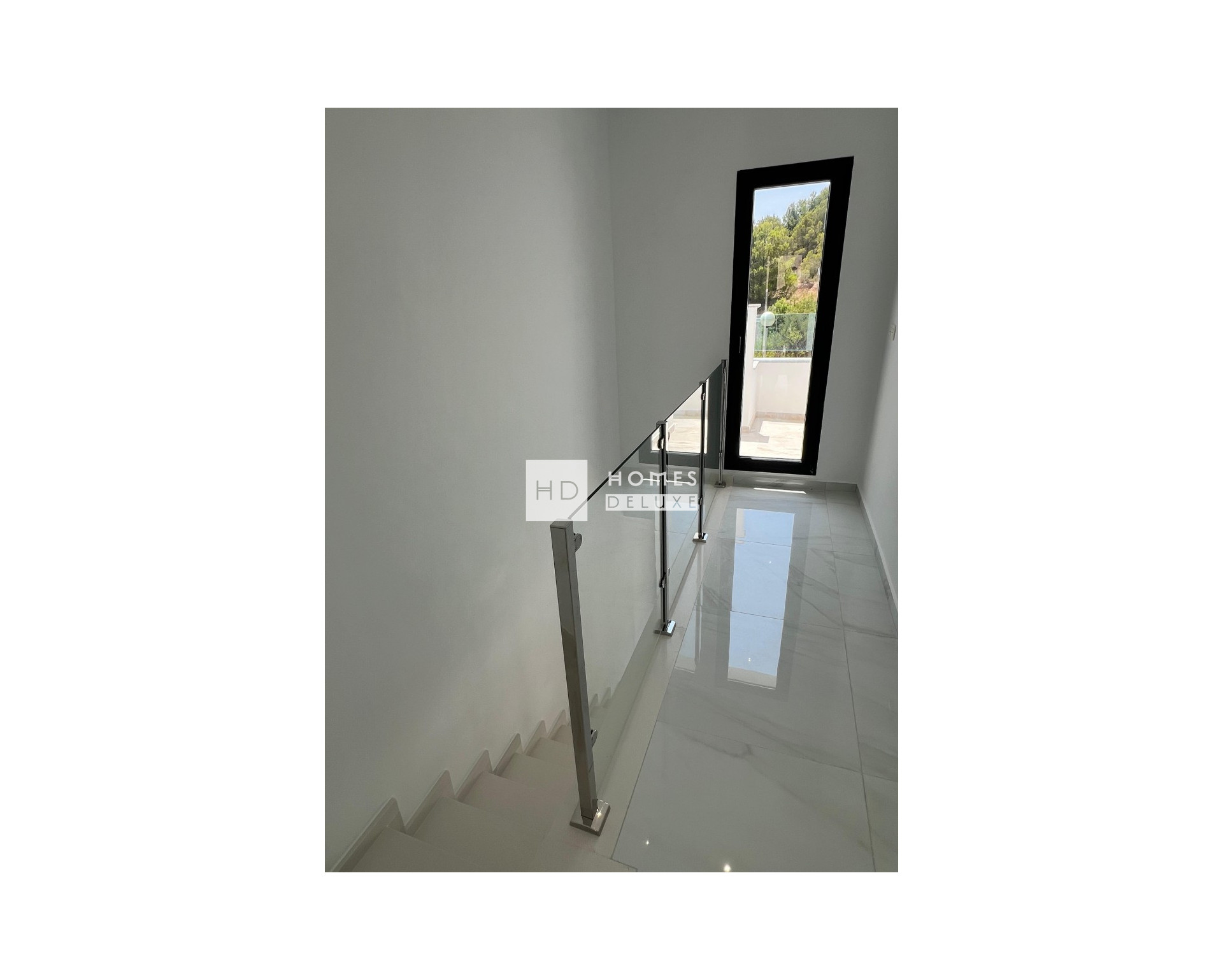 Die Villa erstreckt sich über zwei Etagen und verfügt über einen hellen und geräumigen offenen Wohn- und Essbereich mit Fenstern, die auf die Terrasse hinausgehen. Im Hauptwohnbereich befindet sich eine voll ausgestattete Küche im amerikanischen Stil in Weiß- und Grautönen mit reichlich Stauraum und Arbeitsflächen. Die Küche hat eine Tür zum hinteren Innenhof. Im Erdgeschoss befinden sich außerdem ein Doppelzimmer und ein separates Gästebad. Die Innentreppe führt Sie in den ersten Stock mit dem großen Hauptschlafzimmer, das über ein eigenes Bad und Zugang zu einer Sonnenterrasse an der Vorderseite des Grundstücks verfügt. Es gibt ein weiteres geräumiges Doppelzimmer mit eigenem Bad und Zugang zu einer privaten Sonnenterrasse auf der Rückseite des Grundstücks. Die Sonnenterrasse auf der Vorderseite des Grundstücks verfügt über eine Außentreppe, die zum Dachsolarium führt, wo Sie den ganzen Tag die Sonne genießen und den Blick auf das Meer und die Berge genießen können.