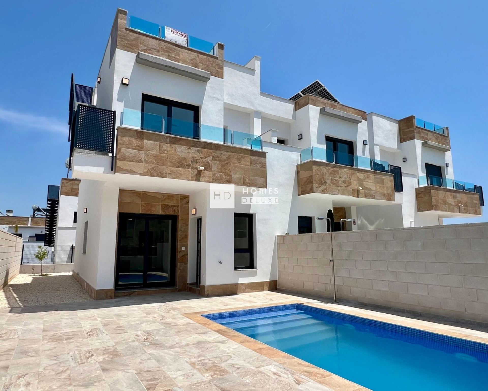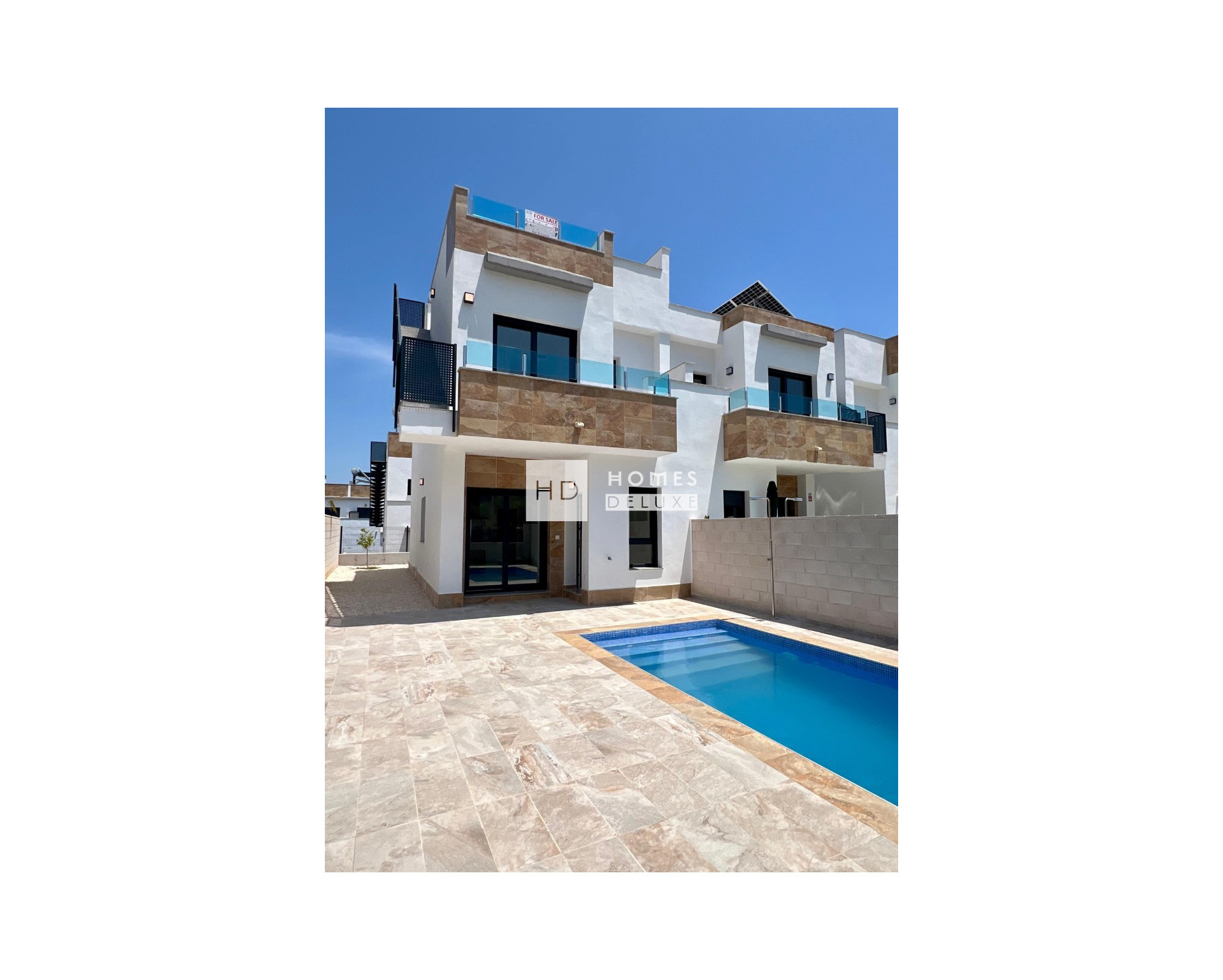 Die Immobilie wurde mit hochwertigen Materialien und modernen Oberflächen gebaut und verfügt außerdem über einen Energieausweis der Klasse A, um maximalen Komfort und Energieeinsparungen zu gewährleisten. Das 167 m² große Grundstück verfügt über einen privaten Garten und eine Terrasse mit einem einladenden privaten Swimmingpool von 5 x 2,5 m. Der Außenbereich wird durch die 37 m² große Dachterrasse erweitert, auf der Sie das Leben im Freien in Spanien in vollen Zügen genießen können.
