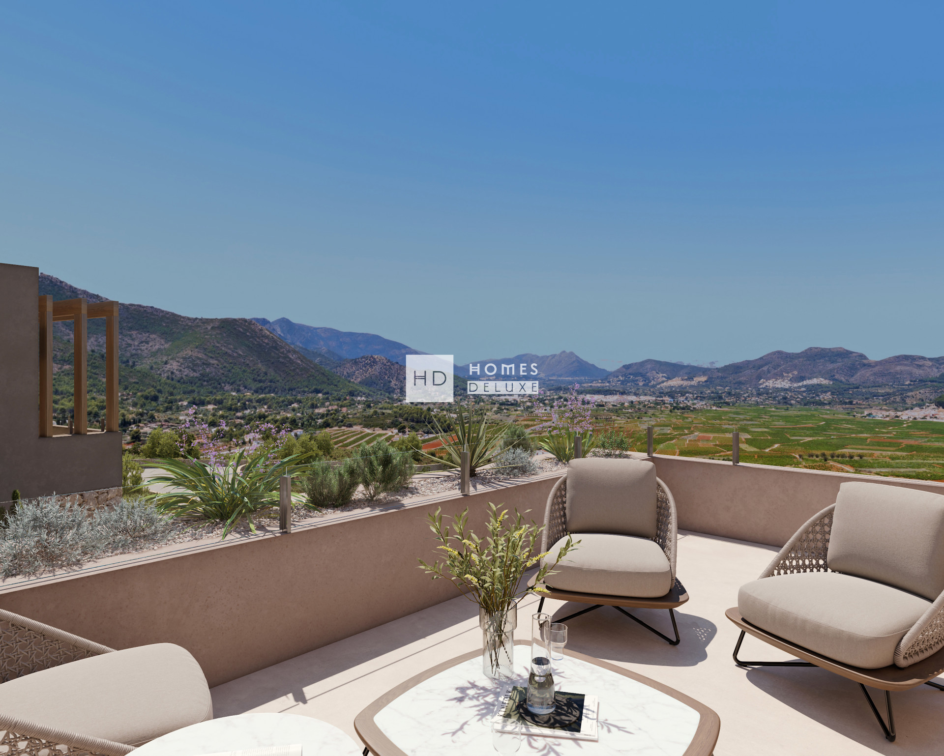 Elements EcoResidences entsteht in Llíber, im Herzen des Vall de Pop, als ein Ort, an dem Natur und Architektur miteinander verschmelzen, um einen einzigartigen Lebensstil zu schaffen. Umgeben von Weinbergen, Bergen und malerischen Dörfern findet sich ein Projekt, das die mediterrane Tradition mit einem zeitgenössischen und nachhaltigen Design neu interpretiert und jedem Bewohner die Möglichkeit bietet, im Einklang mit der Landschaft zu leben. Die Infrastruktur wurde von Grund auf mit den modernsten und verantwortungsbewusstesten Techniken entwickelt und schafft ein Umfeld, das bis ins kleinste Detail gepflegt ist. Darüber hinaus lädt die Wohnanlage dazu ein, gemeinsame Erlebnisse zu genießen: Ein Sozialclub mit Restaurant, Spa und Fitnessstudio, Gemeinschaftsgärten, Sporteinrichtungen und Grünflächen stärken die Verbindung zur Natur und zur Gemeinschaft. Ein Ort, an dem das Leben langsam genossen wird, mit der Ruhe und Authentizität der Nord Costa Blanca. In diesem Kontext entsteht die Airen Collection, Villen, die dafür entworfen wurden, sich in die Umgebung einzufügen und Häuser mit Seele zu bieten. Das Modell Airen B ist die perfekte Wahl für diejenigen, die das Zusammenleben und den Erholungsbereich voneinander abgrenzen möchten. Das Erdgeschoss beherbergt ein geräumiges Wohnzimmer mit Essbereich und offener Küche, das sich zur Terrasse und dem privaten Pool hin öffnet. Das Obergeschoss ist der Rückzugsort der Intimität: Drei Schlafzimmer mit privaten Terrassen, die den Blick auf das Tal und die Sierra del Castell d'Aixa freigeben. Das Hauptschlafzimmer mit eigenem Bad und Ankleidezimmer wird zu einem Raum, in dem man den Tag ruhig beginnen und ausklingen lassen kann. All dies wird ergänzt durch eine Ausstattung, die Wohlbefinden und Nachhaltigkeit garantiert: Aerothermie, Fußbodenheizung, Photovoltaikanlagen, Smart-Home-Technologie und eine Ladestation für Elektroautos. Airen B ist nicht nur eine Villa – es ist eine Einladung, eine neue Art des Lebens zu entdecken, im Gleichgewicht mit der Natur, dem Design und sich selbst.