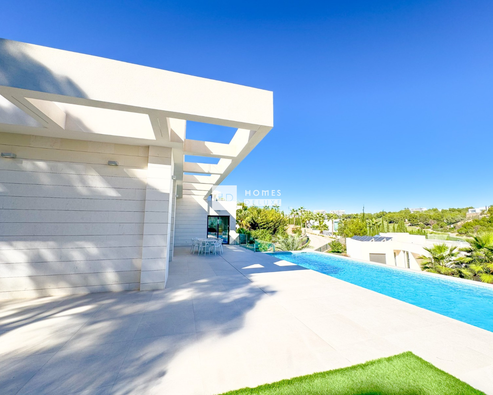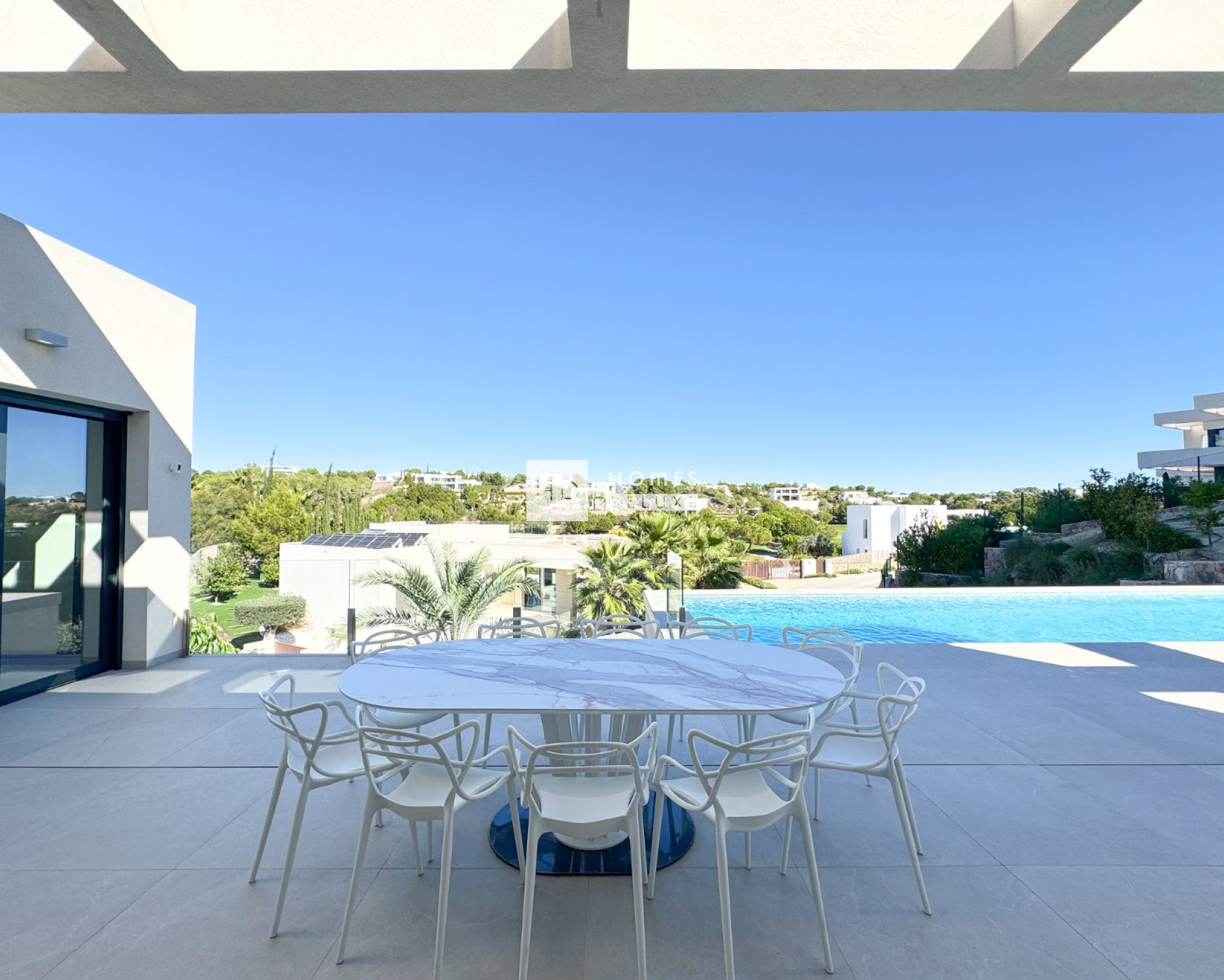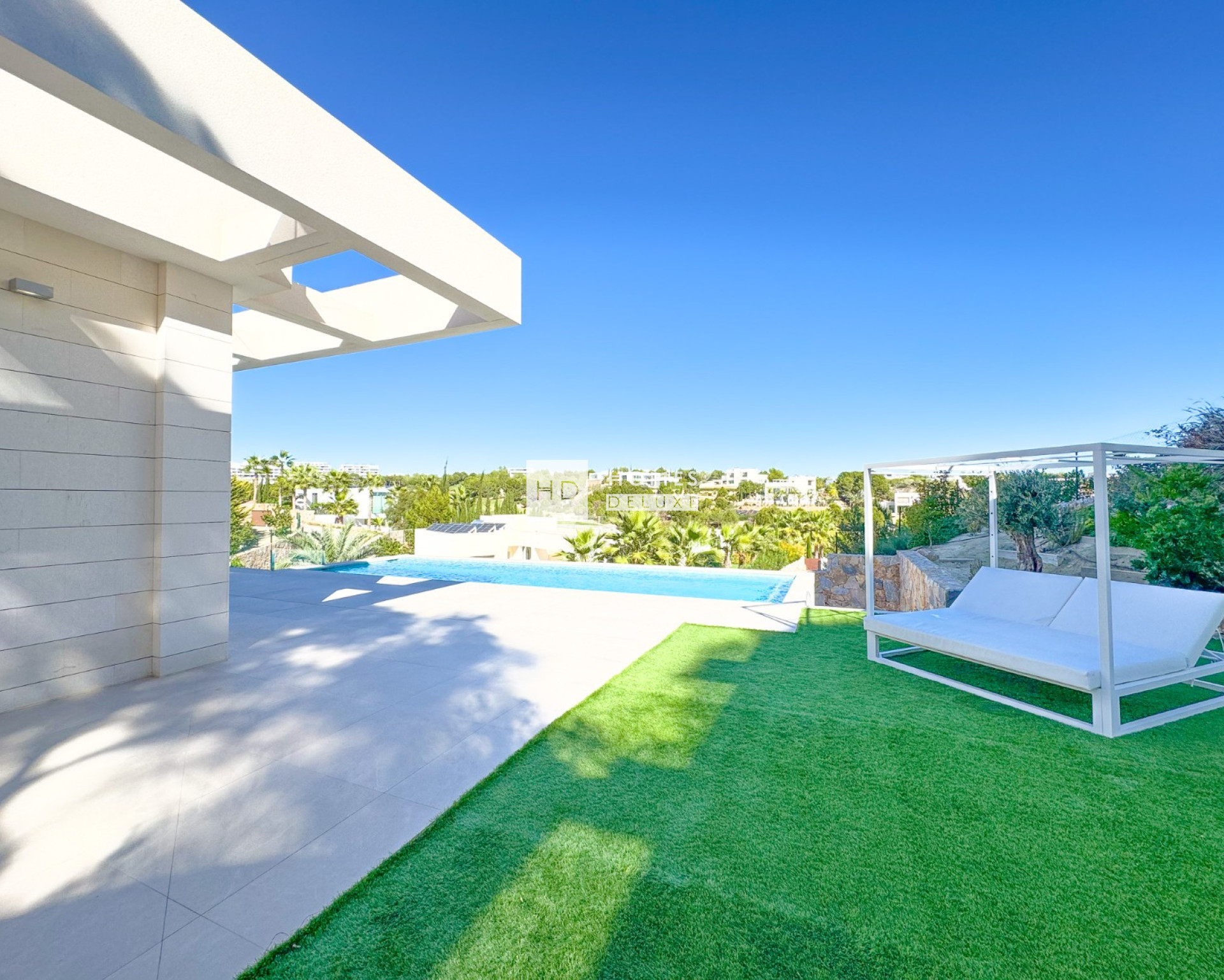 Luxuriöse freistehende Villa in der Wohnanlage Madroño Las Colinas Golf mit 5 Schlafzimmern, 4 Bädern, Kinoraum, Garage, Keller und privatem Pool mit atemberaubendem Blick auf den Golfplatz. Private Lage in zweiter Reihe zum Golfplatz. 180°-Panoramablick von einer großen Terrasse im Erdgeschoss sowie von weiteren Terrassen im Obergeschoss. Geräumiger Keller mit 3 Schlafzimmern, 2 Bädern, Kino und Waschküche. Private Garage für zwei Autos und Platz für mehrere weitere. Moderne Küche mit hochwertigen Geräten und modernem Design mit hochwertigen Oberflächen und vielen besonderen Ausstattungsmerkmalen. Diese Immobilie befindet sich in der exklusiven Golfanlage Las Colinas und bietet einen herrlichen Rückzugsort, um von Ihrem Heimbüro aus zu arbeiten oder sich mit Ihrer Familie zu entspannen. Nur wenige Minuten von allen lokalen Annehmlichkeiten sowie weiteren Golfplätzen, einladenden Buchten mit weißen Sandstränden und Geschäften entfernt.