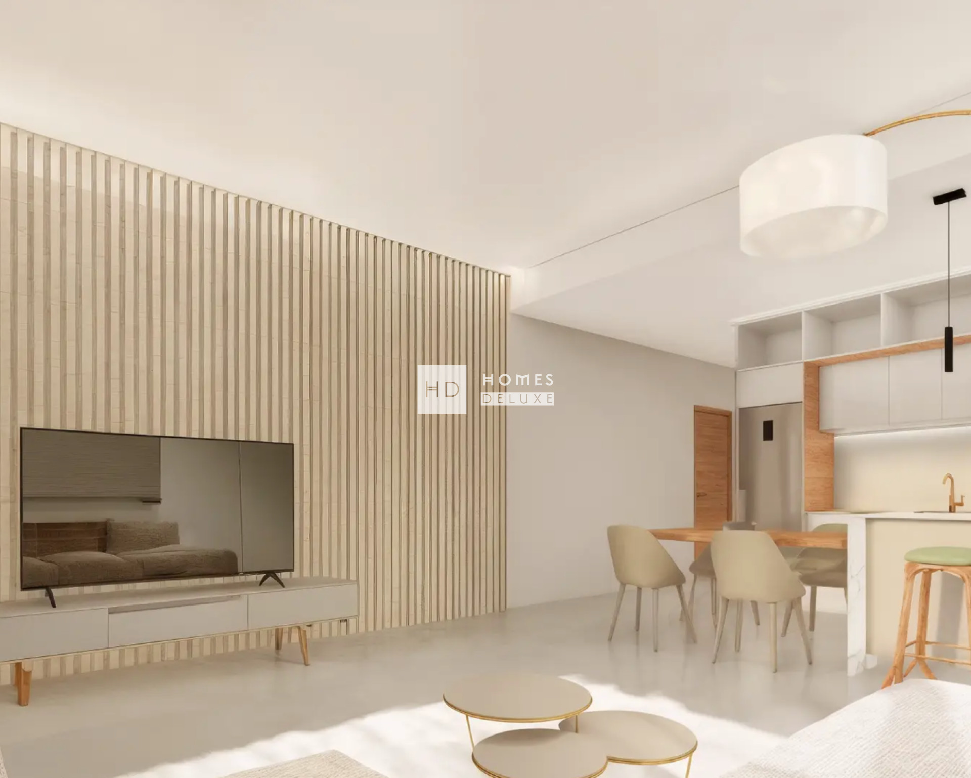 Die Innenausstattung umfasst einen geräumigen offenen Wohn- und Essbereich mit großen Fenstern, die sich zur privaten Terrasse hin öffnen lassen. Im Hauptwohnbereich befindet sich eine voll ausgestattete moderne Küche im amerikanischen Stil mit weiß lackierten Oberflächen und Glastüren. Das Penthouse mit 2 Schlafzimmern verfügt über ein Doppelzimmer und ein separates Gästebad im Erdgeschoss. Die Innentreppe, die in den ersten Stock führt, bietet ein großes Doppelzimmer mit eigenem Bad sowie eine großzügige Dachterrasse, die den Außenbereich weiter vergrößert. Die Immobilien verfügen über eine Vorinstallation für eine Klimaanlage, Küchengeräte (Backofen, Kochfeld, Dunstabzugshaube, Mikrowelle und Kühl-Gefrierkombination), Einbauschränke in allen Schlafzimmern und einen privaten Außenparkplatz.