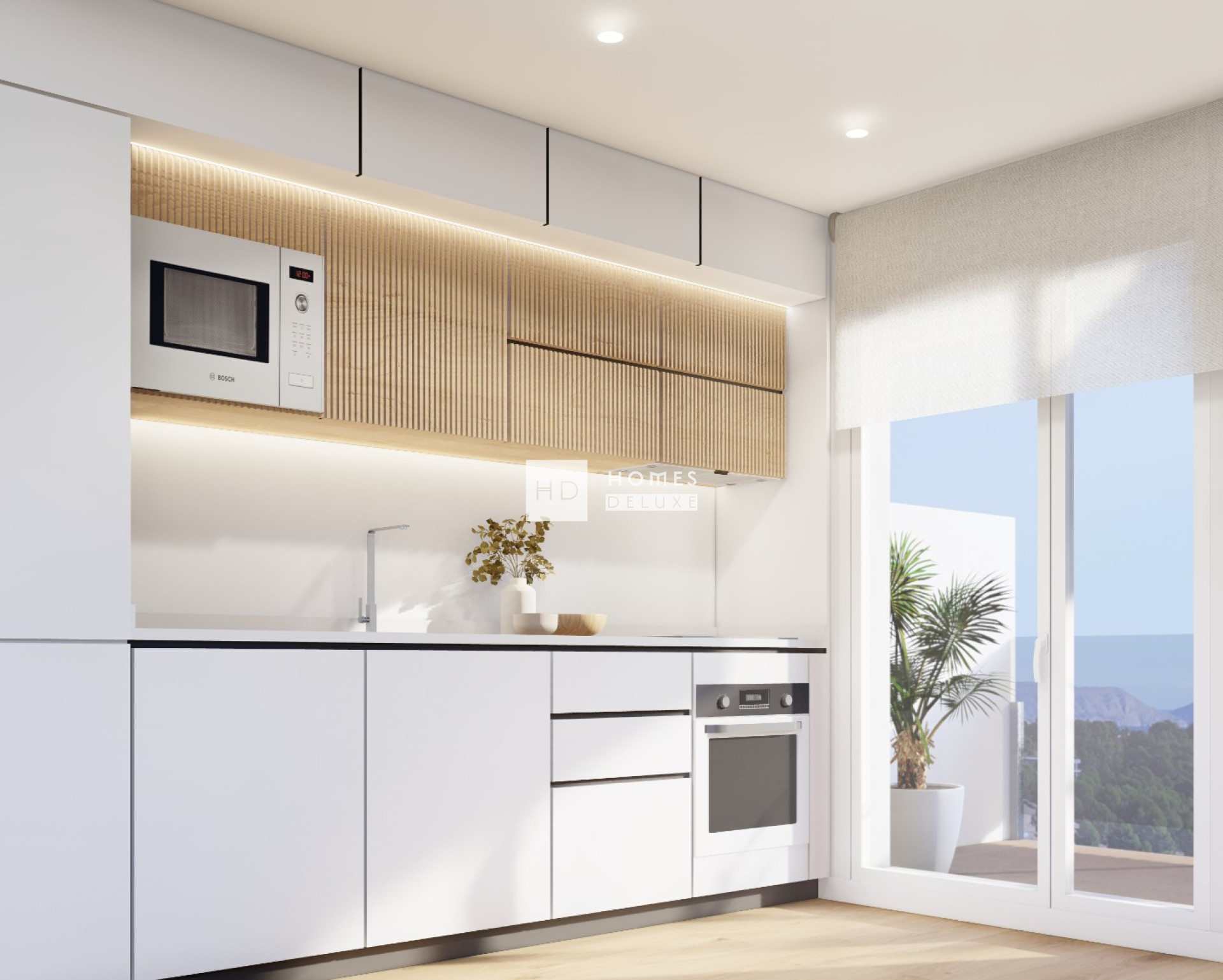 Die Immobilien verfügen über eine Klimaanlage mit Luftkanälen, Vorinstallationen für beheizte Handtuchhalter in den Badezimmern, Küchengeräte von Siemens (Backofen, Induktionskochfeld, Dunstabzugshaube und Mikrowelle), Einbauschränke in allen Schlafzimmern, LED-Beleuchtung, Video-Gegensprechanlage, Solarium mit eingebautem Grill und einen privaten Parkplatz mit Vorinstallation für eine elektrische Ladestation.
