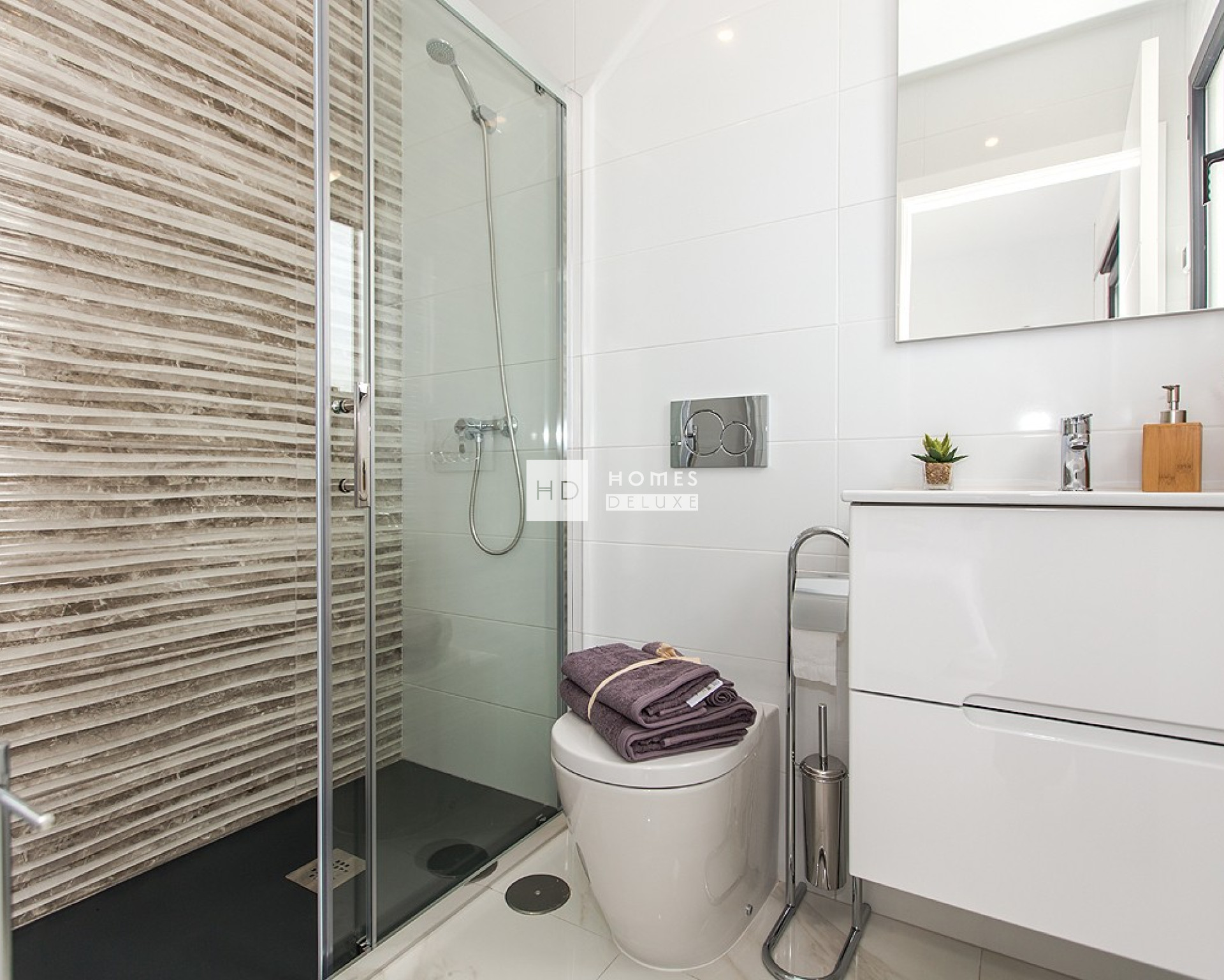 Die im zeitgenössischen Stil erbauten und hochwertig ausgestatteten Immobilien verfügen über Terrassen auf der Vorder- und Rückseite sowie eine Dachterrasse, um das Leben im Freien in Spanien optimal zu genießen. Beide Terrassen sind gut ausgerichtet und bieten sowohl Sonnen- als auch Schattenplätze. Die Immobilien haben außerdem direkten Zugang zu einer gemeinschaftlichen Grünfläche mit Swimmingpool, wo Sie sich entspannen und erholen können.