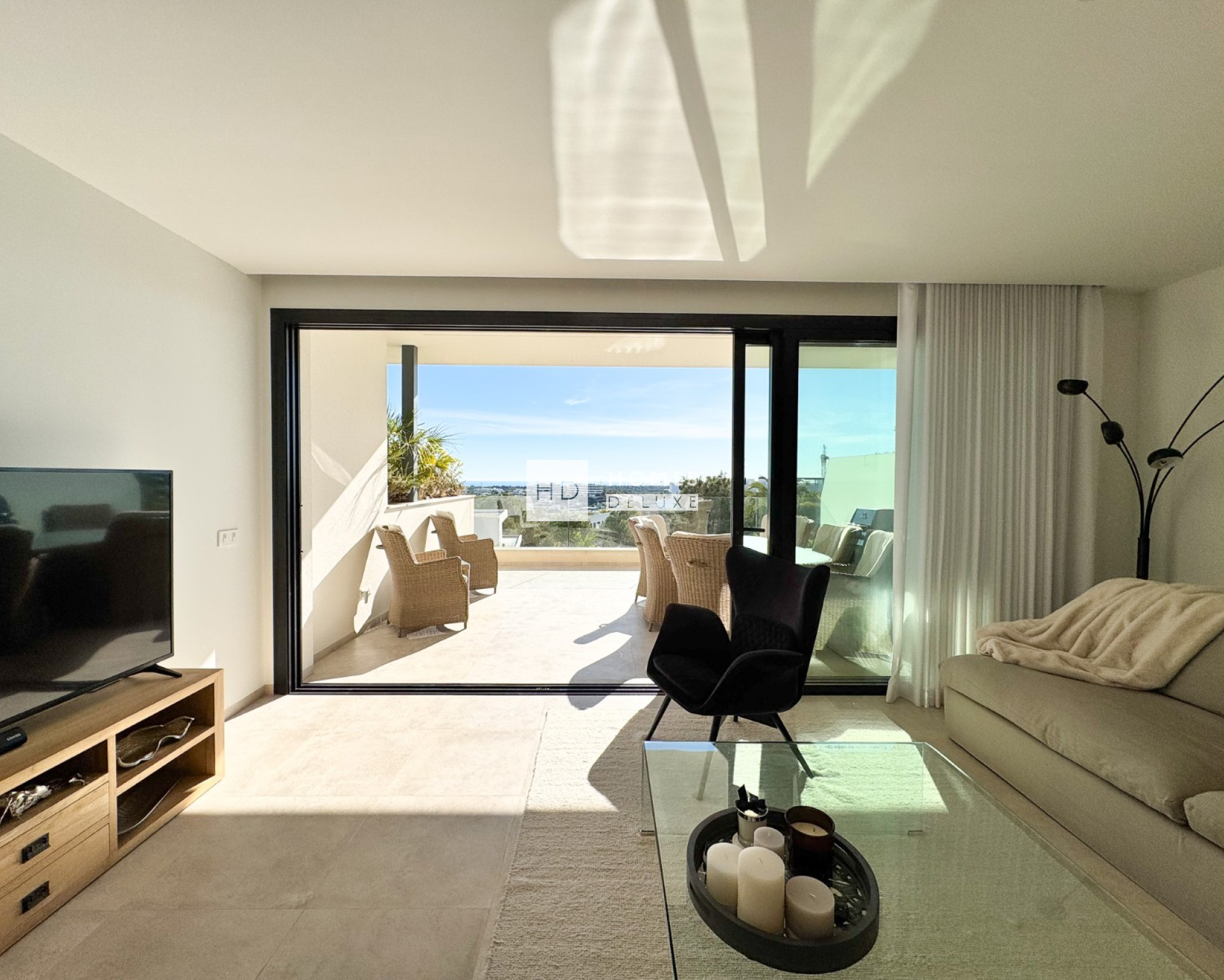 Wiederverkaufswohnung mit 3 Schlafzimmern, 2 Bädern, geräumigen Terrassen und atemberaubender Aussicht auf den Golfplatz und das Meer in der Wohnanlage Limonero 29 Las Colinas Golf. Exklusive Lage mit zwei Gemeinschaftspools (einer davon beheizt). Die Immobilie wird mit allen Elektrogeräten, Klimaanlage (warm/kalt) und Fußbodenheizung in allen Bädern sowie elektrischen Außenrollläden in den Schlafzimmern, LED-Leuchten, Smart-Home-Funktionen und Aufzugszugang zur privaten Garage und zum Abstellraum verkauft.