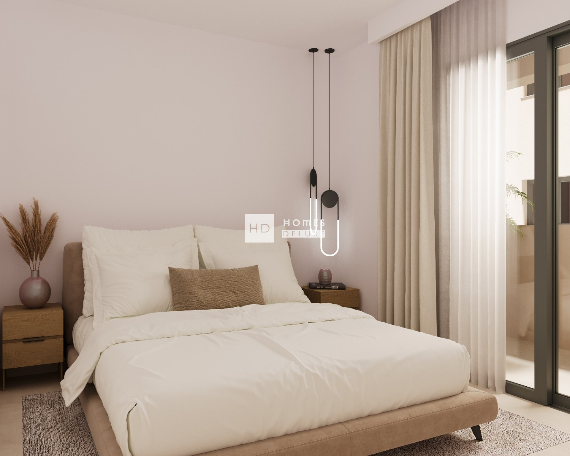Es stehen verschiedene Optionen für 2-Zimmer-Wohnungen zur Auswahl, entweder mit 2 Schlafzimmern und 1 Badezimmer, 2 Schlafzimmern, 1 Badezimmer und einer Gästetoilette oder 2 Schlafzimmern und 2 Badezimmern. Die Innenausstattung umfasst einen offenen Wohn- und Essbereich mit Terrassentüren, die auf die Terrasse führen, und im Hauptwohnbereich befindet sich eine moderne Küche im amerikanischen Stil. Ein geräumiges Hauptschlafzimmer mit eigenem Bad (in den Optionen mit 2 Schlafzimmern und 2 Bädern), ein weiteres Doppelschlafzimmer, alle Schlafzimmer mit Einbauschränken und ein separates Badezimmer. Das Projekt verbindet moderne Architektur, Komfort und eine privilegierte Lage – eine einzigartige Gelegenheit, in einer der begehrtesten Gegenden der Costa Blanca zu leben oder zu investieren.