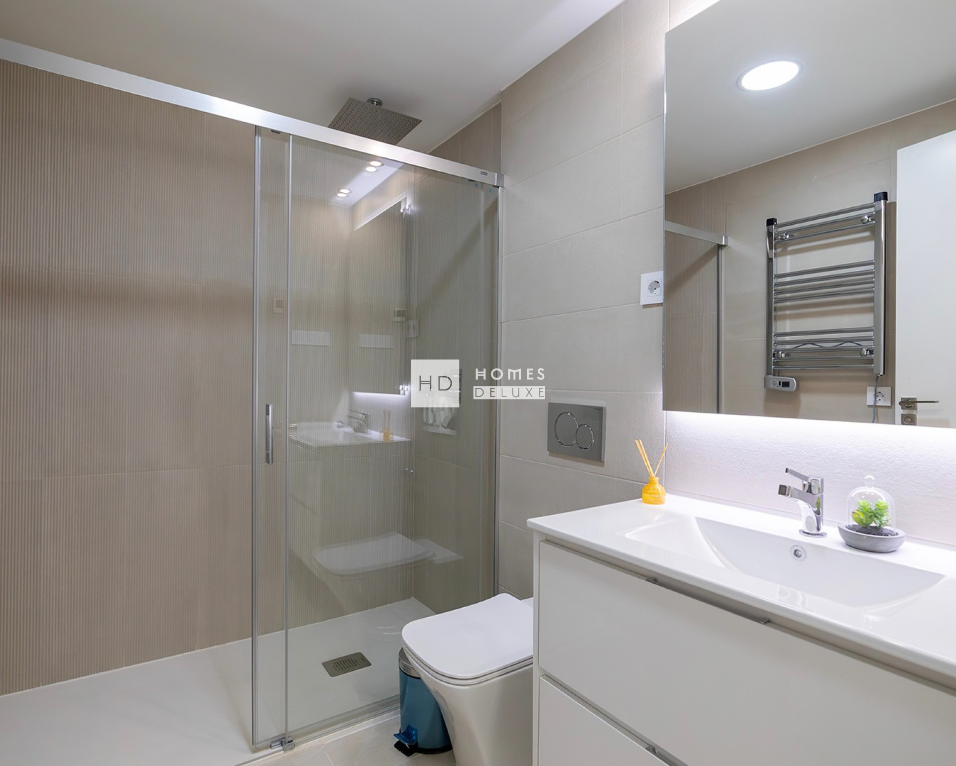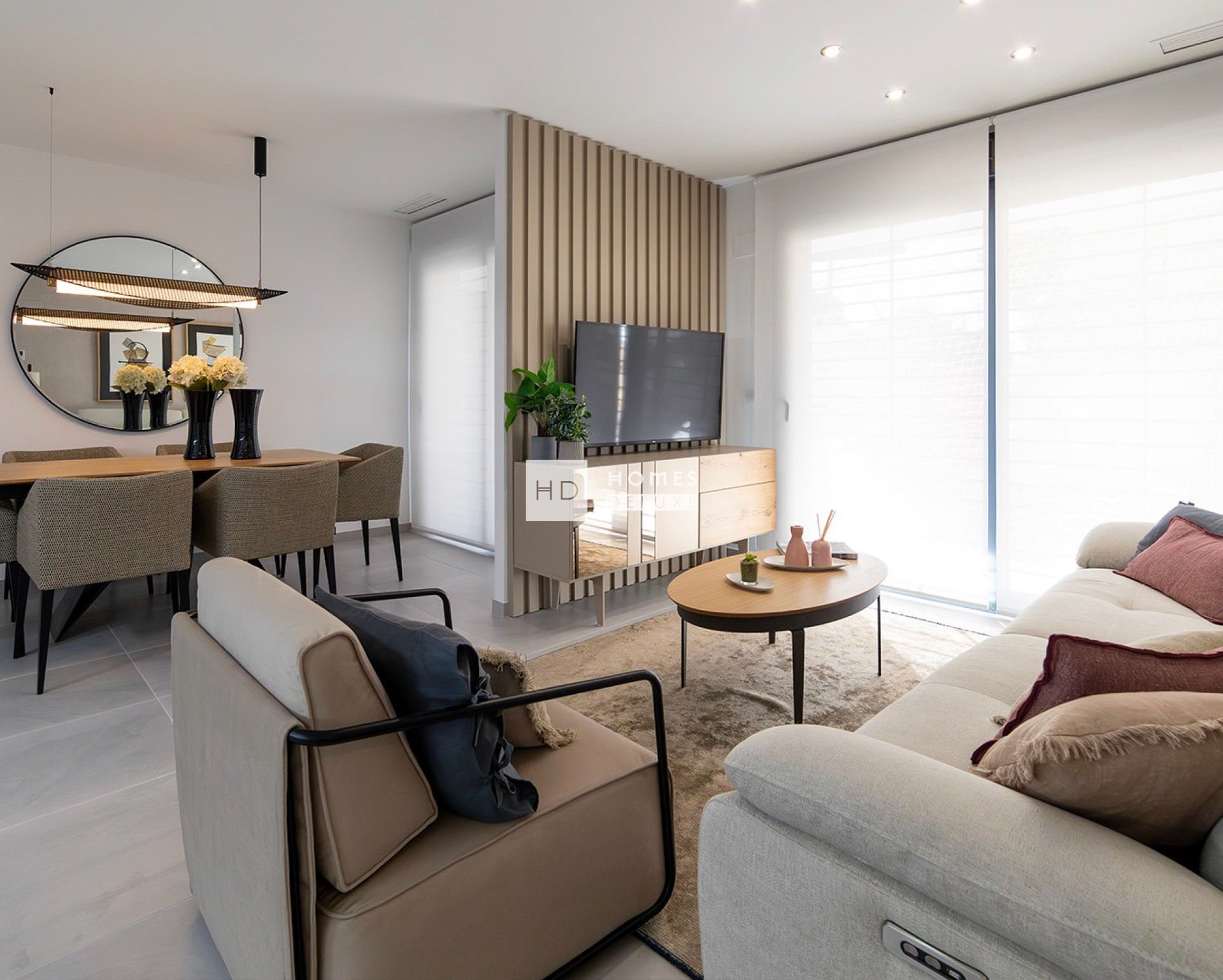 Die Wohnungen mit 2 und 3 Schlafzimmern und 2 Bädern verteilen sich auf 5 Etagen mit unterschiedlicher Ausrichtung und Blick auf die Straßen Lo Ferris oder Pleamar, mit Ausnahme der Wohnungen in der Mitte, die einen Blick auf beide Seiten bieten. Alle Wohnungen verfügen über eine Terrasse in den mittleren Etagen oder einen privaten Garten im Falle der Wohnungen im Erdgeschoss, wobei in den größeren Wohnungen Platz für einen privaten Swimmingpool vorhanden ist. Zu den Ausstattungsmerkmalen der Wohnungen gehören Balkone mit Sicherheitsglas, Fußbodenheizung in den Badezimmern, Silestone-Quarz-Arbeitsplatten und ökoeffiziente Wasserhähne.