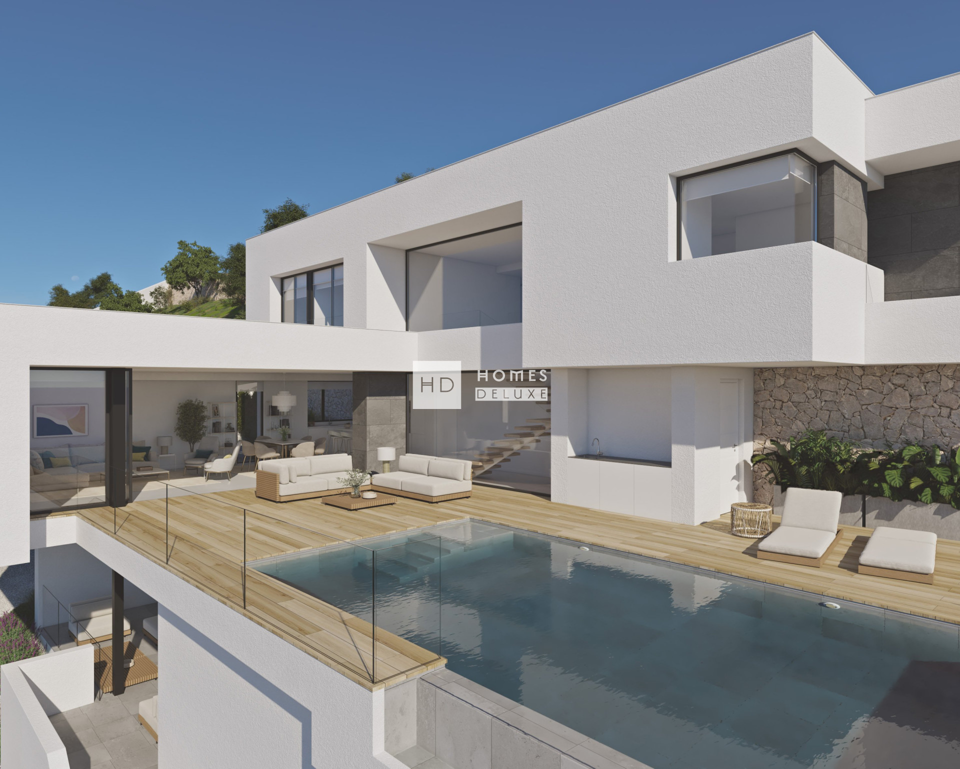 An einem exklusiven Standort von Cumbre del Sol, auf dem Grundstück 223 im Wohngebiet Jazmines, liegt die Villa Karma – dort, wo die Lichter von Calpe und Moraira die Nächte erhellen und der Montgó sich am Horizont abzeichnet. Eine Villa, in der jede architektonische Linie darauf ausgelegt ist, Emotionen zu wecken, und jeder Raum Ruhe und Ausgewogenheit ausstrahlt. Ihr elegantes, zeitgenössisches Design fügt sich nahtlos in die Landschaft ein und unterstreicht den unverstellten Blick auf die Landschaft, der immer präsent ist. Die Villa erstreckt sich über drei Ebenen und passt sich der natürlichen Hanglage des Grundstücks an, wodurch auf jeder Etage einzigartige Wohnbereiche entstehen. Im Hauptgeschoss befindet sich der Tagesbereich, in dem Wohn-, Esszimmer und Küche in einem offenen Raum verschmelzen, der sich durch große Schiebefenster zur Terrasse hin öffnet. Auf derselben Ebene liegt auch das Hauptschlafzimmer, als private Suite mit Bad und Ankleidezimmer konzipiert, sowie ein Gäste-WC. Im oberen Geschoss bieten drei weitere Schlafzimmer mit Zugang zu privaten Terrassen sowie zwei voll ausgestattete Bäder Privatsphäre und Funktionalität. Im unteren Geschoss befindet sich ein großzügiger, multifunktionaler Bereich, der als Fitnessraum, Heimkino, Büro oder Weinkeller genutzt werden kann. Außerdem gibt es eine überdachte Terrasse mit Chill-out-Zone im Freien. Der Zugang zur Villa erfolgt über die obere Ebene des Grundstücks, was einen direkten Eintritt in das elegante Foyer auf der obersten Etage ermöglicht. Auf derselben Ebene befindet sich auch die geschlossene Garage für zwei Fahrzeuge, die dezent in das architektonische Gesamtkonzept integriert und bequem von der Straße erreichbar ist. Die Villa Karma ist mit modernster Bautechnologie und einem hohen Maß an Wohnkomfort ausgestattet. Sie verfügt über ein Klimasystem mit Aerothermie und Fußbodenheizung, eine kontrollierte Wohnraumlüftung mit Wärmerückgewinnung, Aluminiumfenster mit thermischer Trennung und Sonnenschutzverglasung. Eingelassene LED-Beleuchtung und ein Smart-Home-System zur Steuerung von Jalousien, Beleuchtung und Klimatisierung sorgen für zusätzlichen Komfort und Energieeffizienz. Von der Terrasse mit endlos langem Pool aus bietet sich ein Panoramablick, der vom Peñón de Ifach bis zu den Lichtern der Küste reicht. Die Südwest-Ausrichtung garantiert magische Sonnenuntergänge und ein warmes Licht, das das Haus den ganzen Tag über durchflutet. Die Villa Karma ist mehr als ein Zuhause – sie ist pures Wohlbefinden hoch über dem Mittelmeer.
