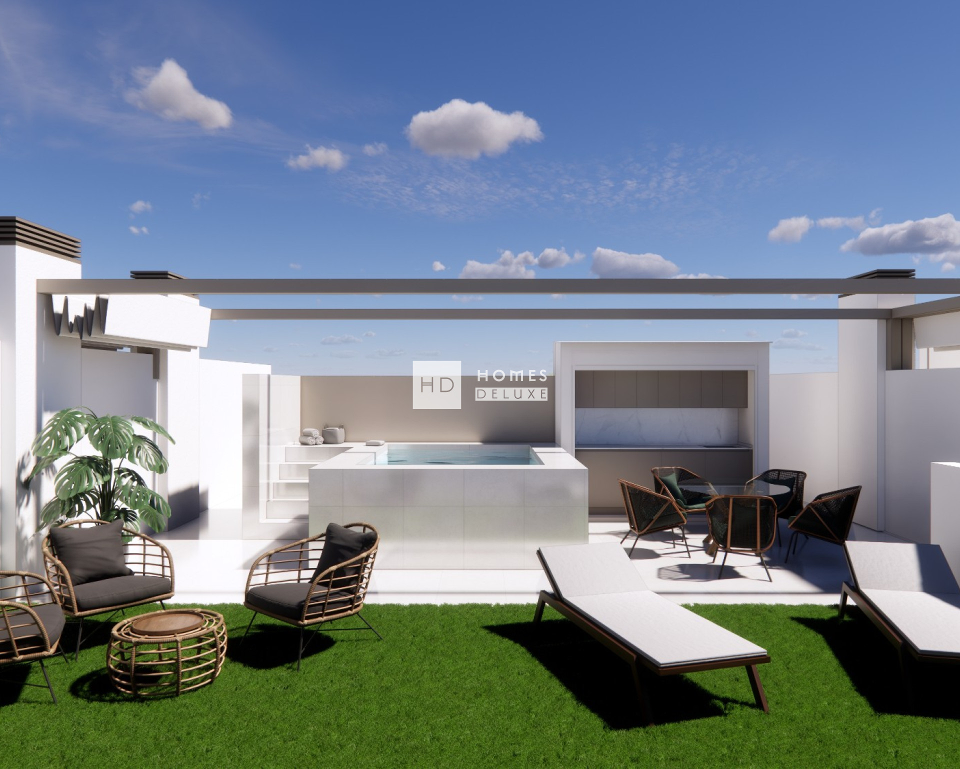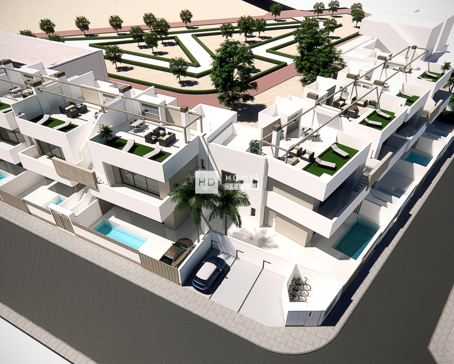 Die Immobilien erfüllen höchste Standards und sind mit Vorinstallationen für eine Klimaanlage, Küchengeräten (Backofen, Cerankochfeld, Dunstabzugshaube, Mikrowelle, Kühl-Gefrierkombination und Geschirrspüler), Einbauschränken in allen Schlafzimmern, LED-Innen- und Außenbeleuchtung, Sommerküche auf der Sonnenterrasse der Apartments im obersten Stockwerk ausgestattet. Alle Apartments verfügen über einen privaten Parkplatz.