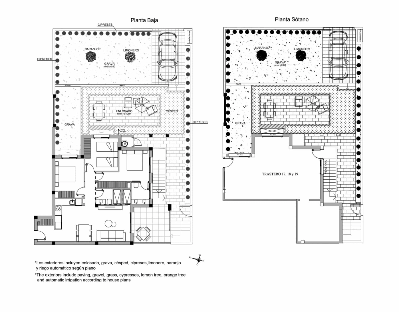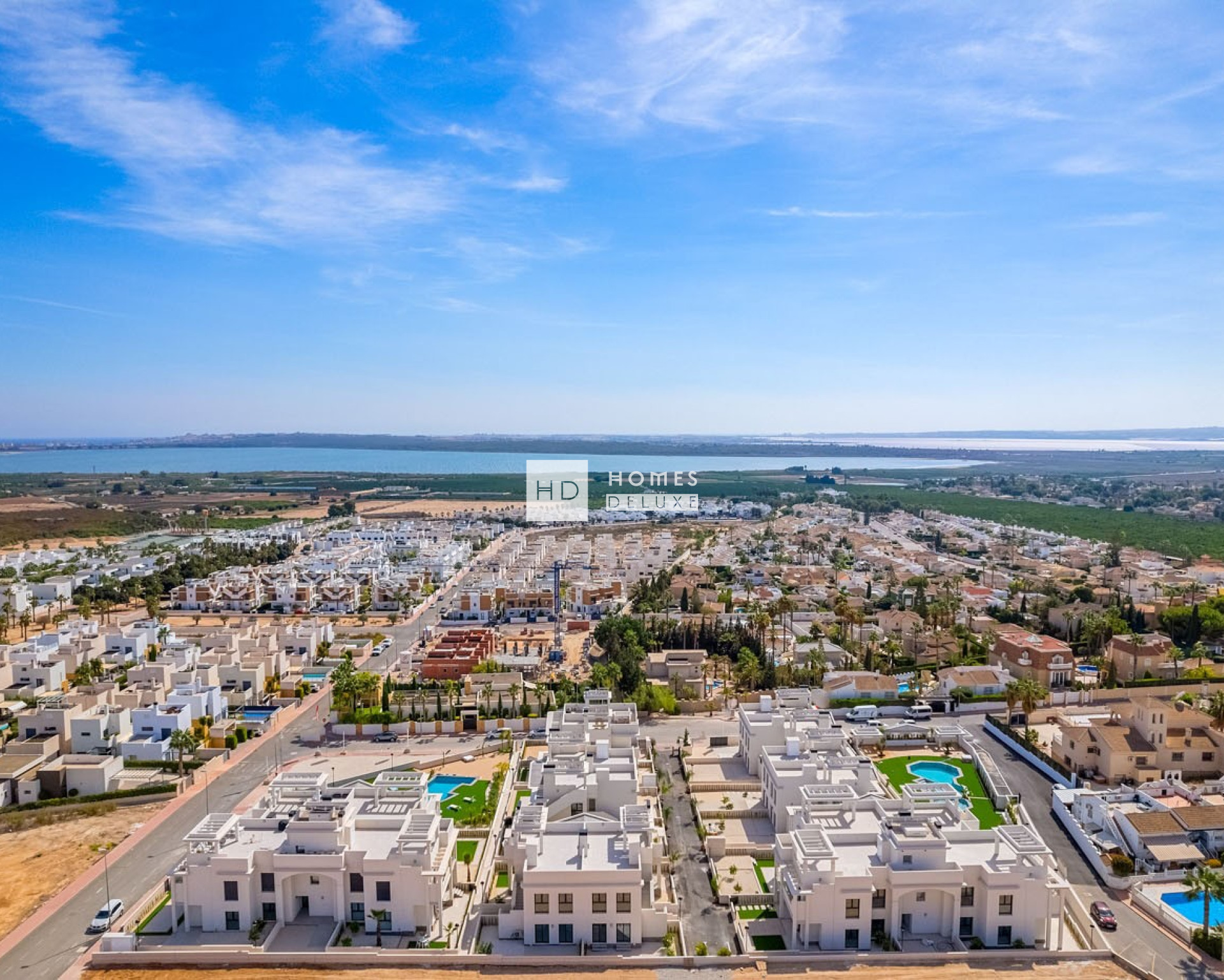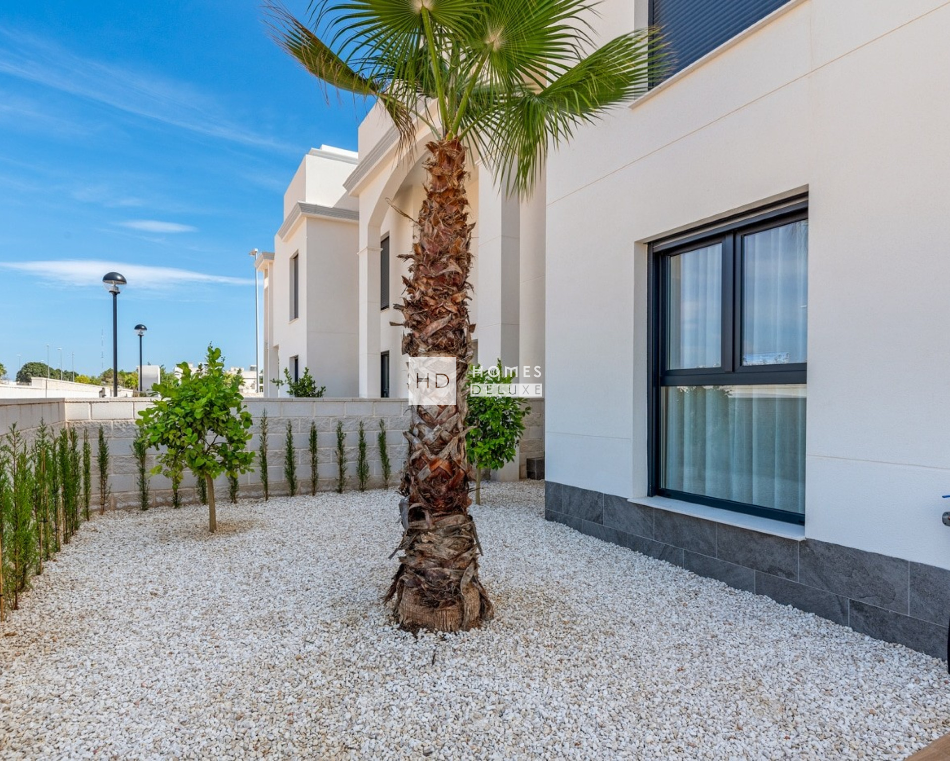 Die Innenausstattung umfasst einen hellen und geräumigen offenen Wohn- und Essbereich mit großen Fenstern, die auf die Terrasse hinausgehen. Im Hauptwohnbereich befindet sich eine Küche im amerikanischen Stil mit niedrigen und hohen Schränken sowie einer Frühstückstheke. Das große Hauptschlafzimmer verfügt über ein eigenes Bad und reichlich Stauraum für Kleidung. Es gibt zwei weitere geräumige Doppelschlafzimmer und ein separates Gästebad. Die Immobilien verfügen über eine Vorinstallation für eine Klimaanlage, Einbauschränke in allen Schlafzimmern, elektrische Jalousien, eine Gegensprechanlage und einen privaten Parkplatz.