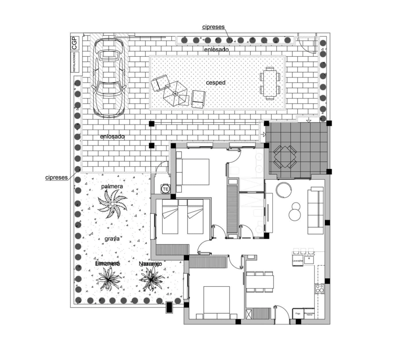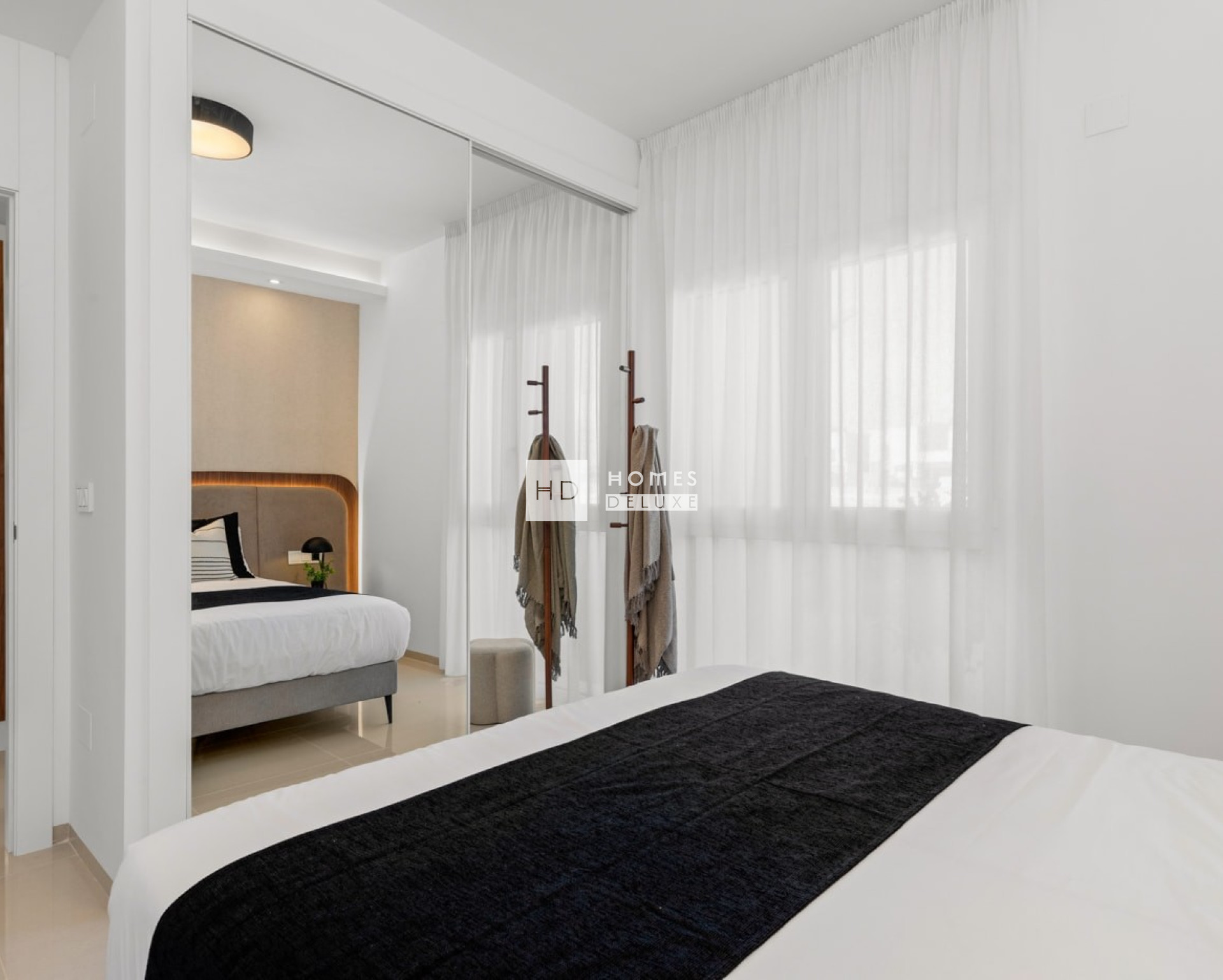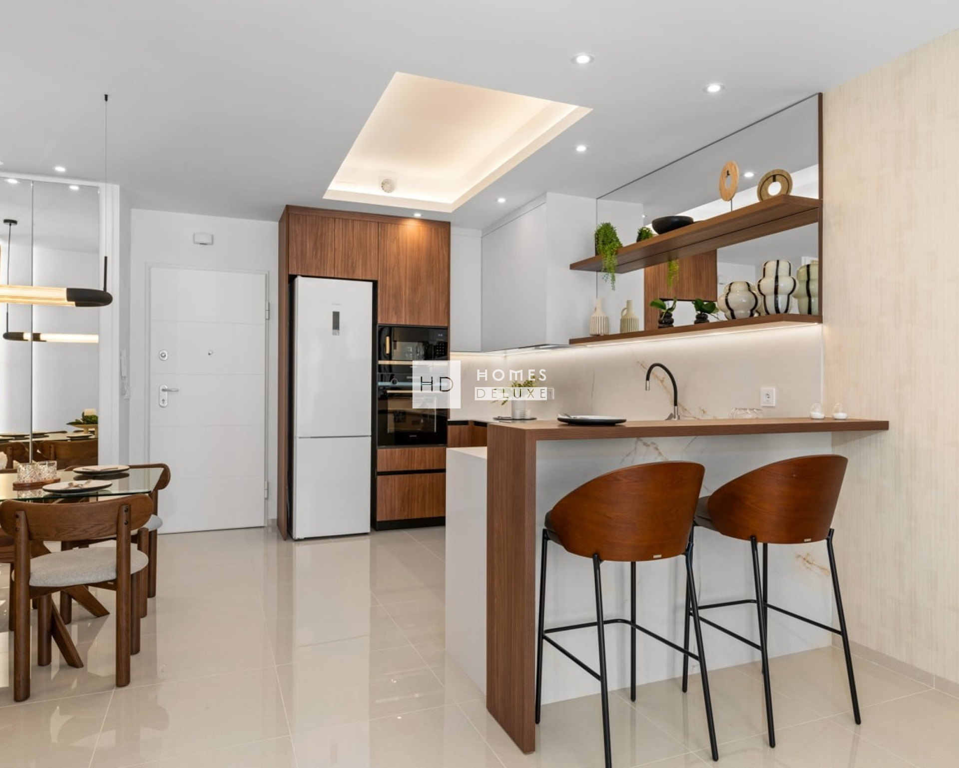 Die Innenausstattung umfasst einen hellen und geräumigen offenen Wohn- und Essbereich mit großen Fenstern, die auf die Terrasse hinausgehen. Im Hauptwohnbereich befindet sich eine Küche im amerikanischen Stil mit niedrigen und hohen Schränken sowie einer Frühstückstheke. Das große Hauptschlafzimmer verfügt über ein eigenes Bad und reichlich Stauraum für Kleidung. Es gibt zwei weitere geräumige Doppelschlafzimmer und ein separates Gästebad. Die Immobilien verfügen über eine Vorinstallation für eine Klimaanlage, Einbauschränke in allen Schlafzimmern, elektrische Jalousien, eine Gegensprechanlage und einen privaten Parkplatz.