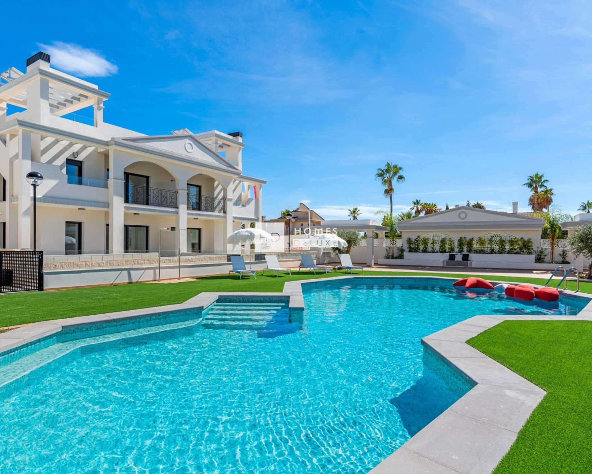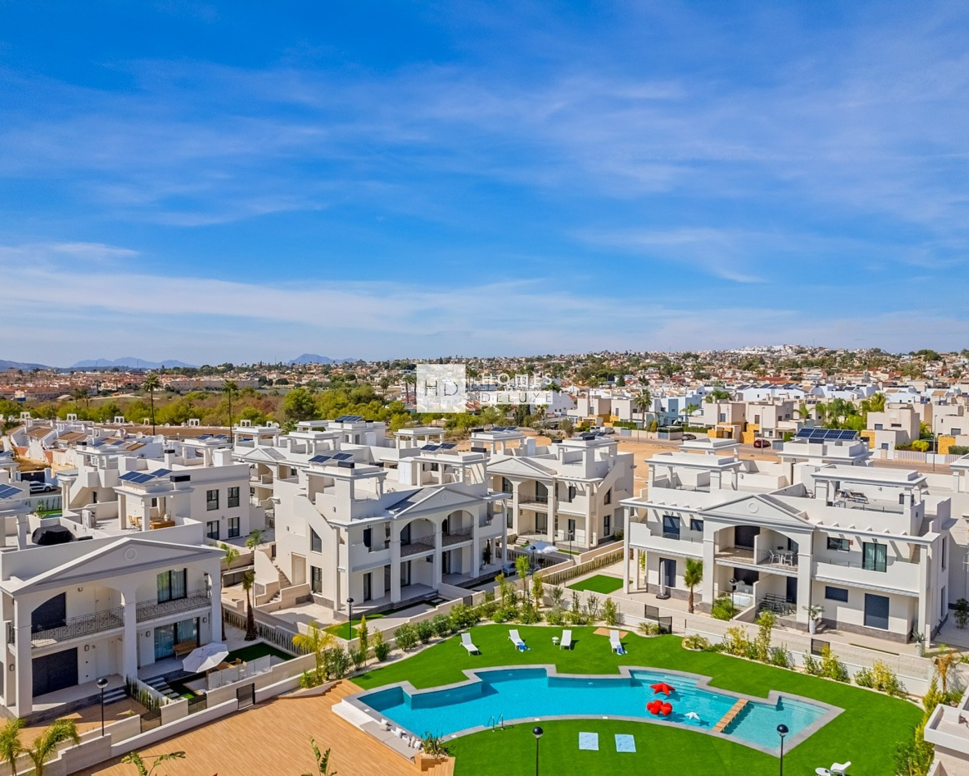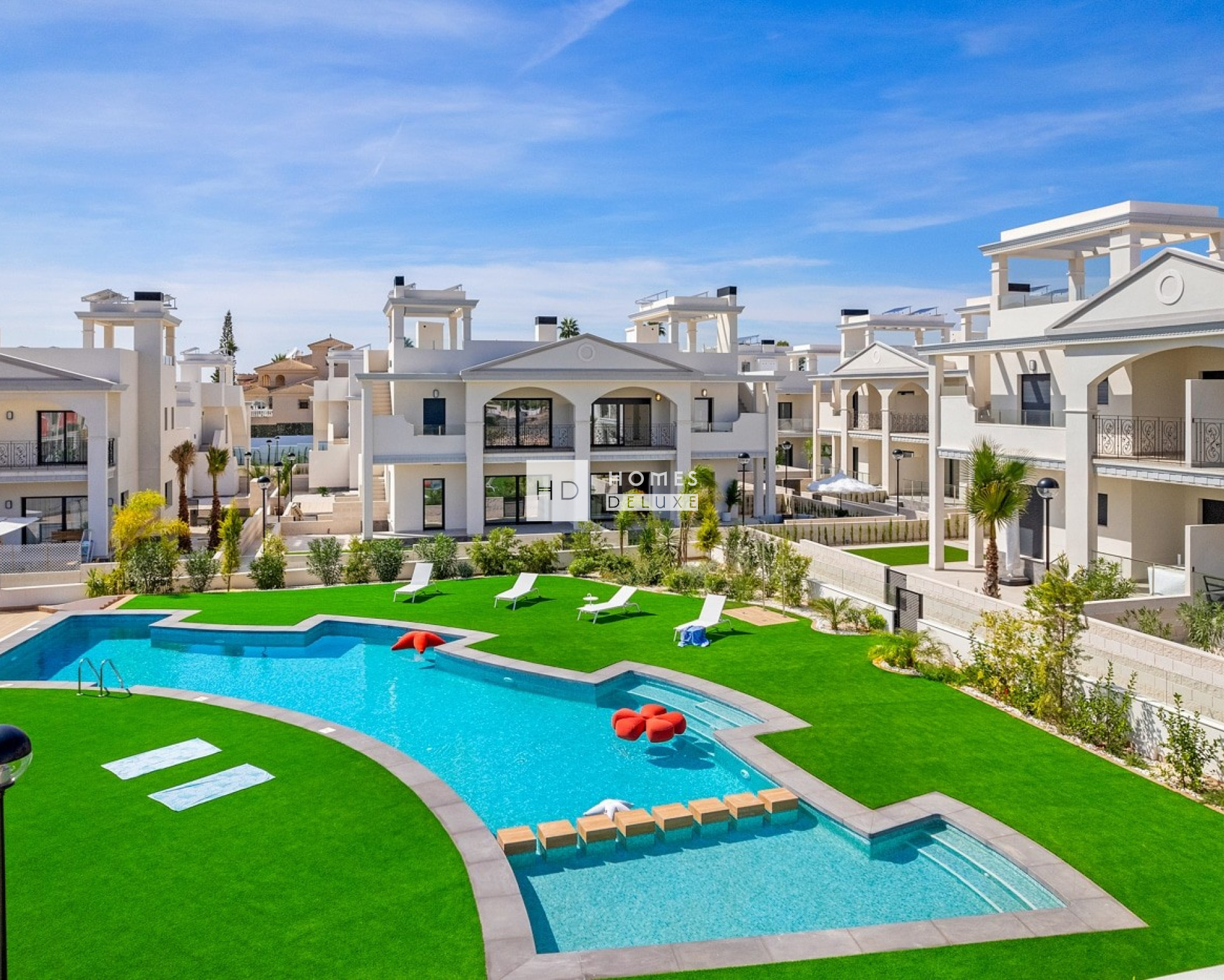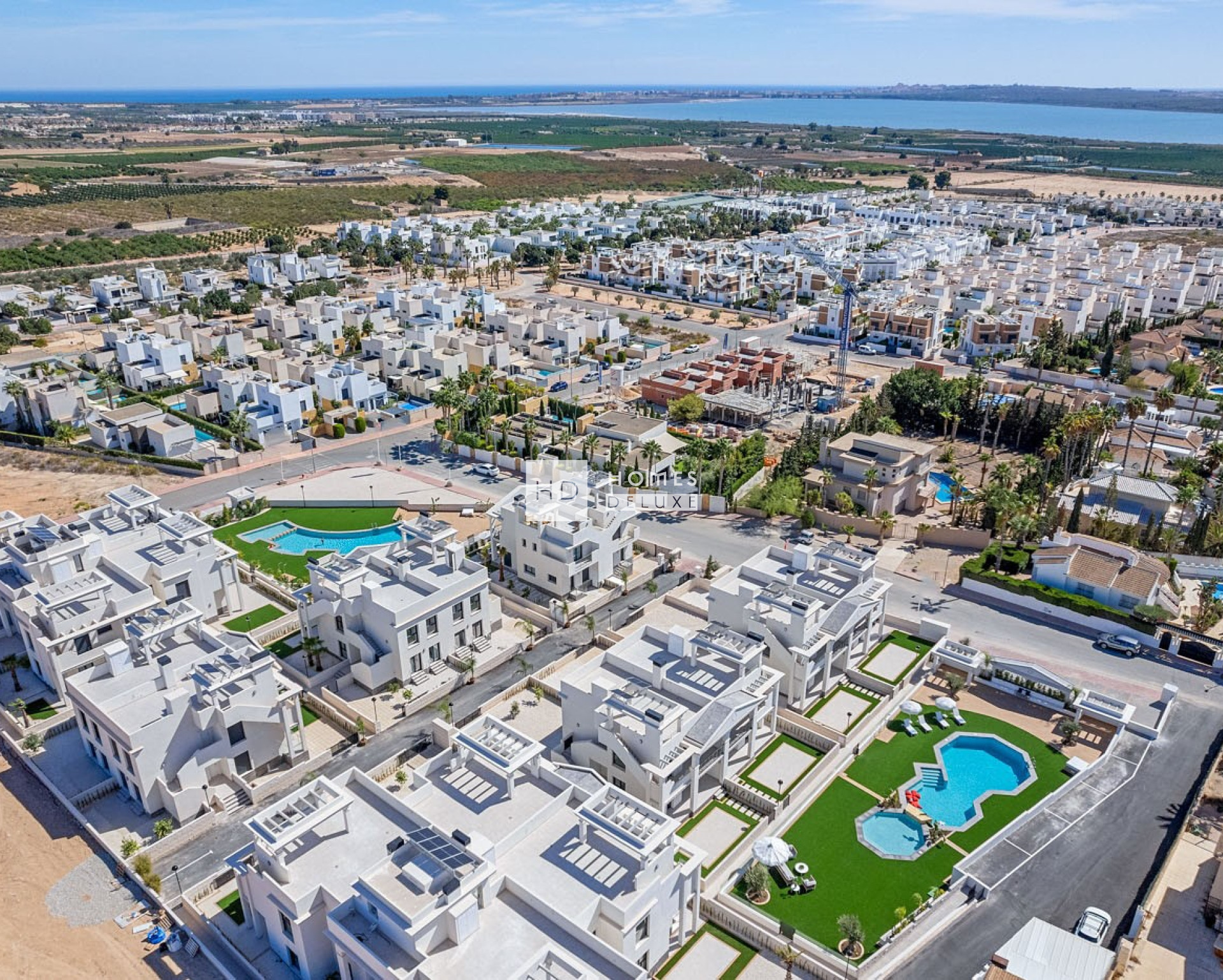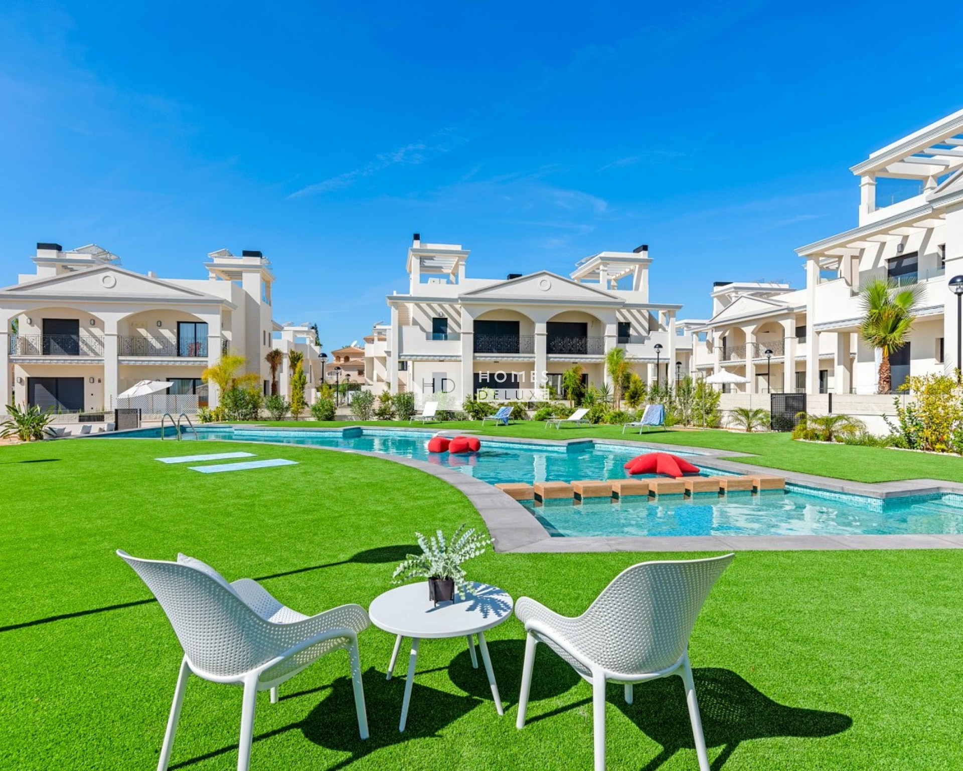 Dieser beeindruckende Wohnkomplex besteht aus verschiedenen Arten von Wohnungen: Apartments und Doppelhaushälften. Die Apartments verfügen über 2 Schlafzimmer und 2 Badezimmer sowie 3 Schlafzimmer und 2 Badezimmer und sind mit einer offenen Küche und einem Wohn-Esszimmer ausgestattet. Sie können zwischen einer Wohnung im Erdgeschoss mit schönem Privatgarten oder einer Wohnung im obersten Stockwerk mit großzügiger Dachterrasse wählen. Die Doppelhaushälften verfügen über 3 Schlafzimmer und 3 Badezimmer, eine offene Küche, ein großes Wohn-Esszimmer, eine Dachterrasse und einen Privatgarten. Die Bewohner können sich an den schönen Gemeinschaftsbereichen erfreuen, die sich perfekt zum Entspannen und Erholen eignen, mit einem großen Gemeinschaftspool und weitläufigen Grünflächen.