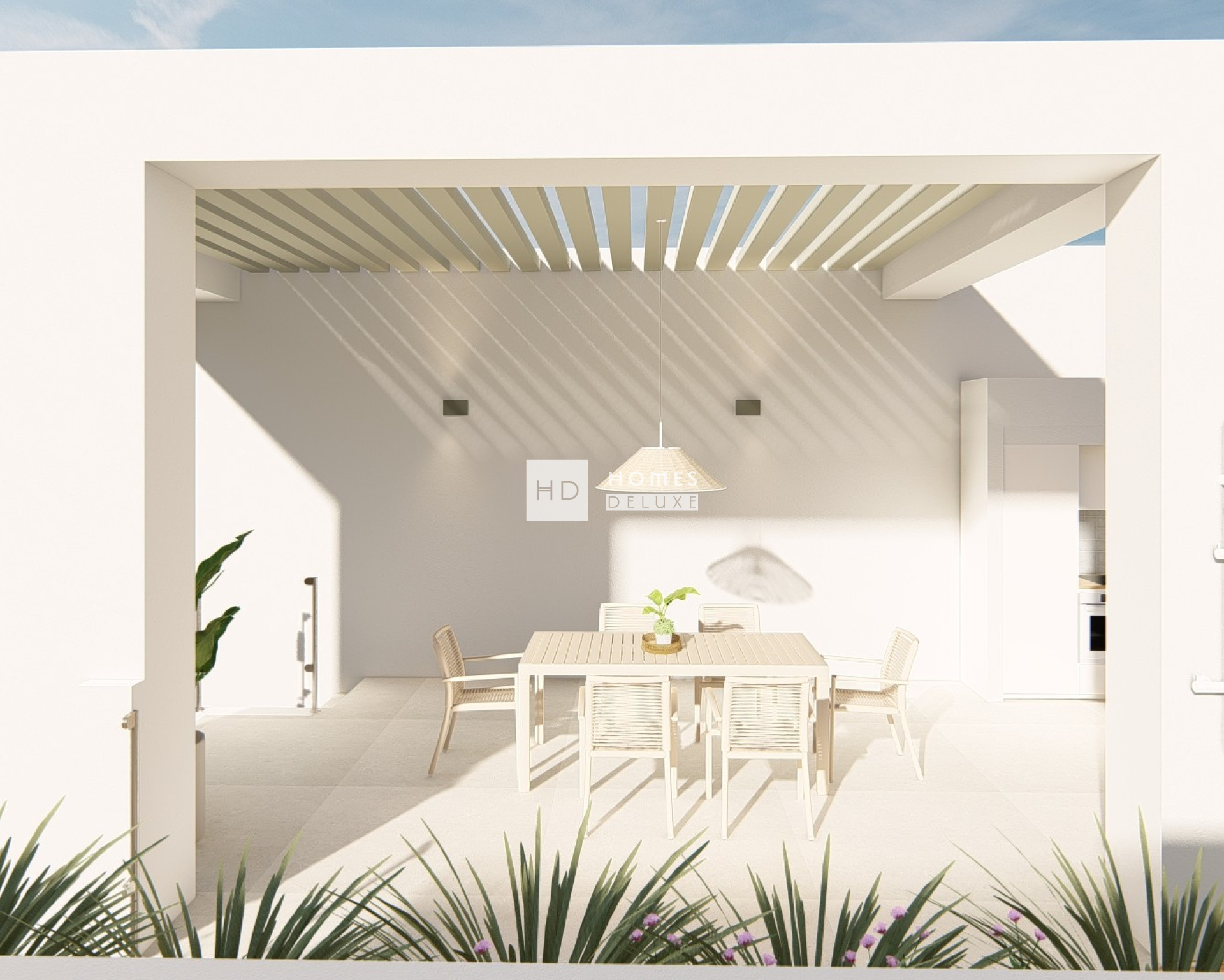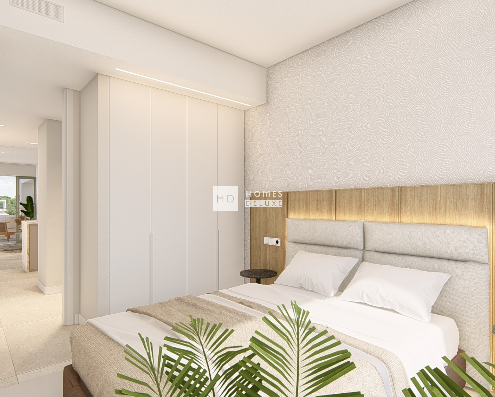 Es stehen Apartments im Erdgeschoss mit privatem Garten, Apartments im mittleren Stockwerk mit großzügiger Terrasse oder Penthäuser mit großem Dachsolarium zur Auswahl. Die Außenbereiche verfügen alle über gut miteinander verbundene Außenflächen, auf denen Sie das ganze Jahr über das mediterrane Klima genießen können. Dank der dreistöckigen Anordnung der Gebäude, aus denen sich der Komplex zusammensetzt, sind alle entweder nach Süden oder Südosten ausgerichtet, was für hervorragende natürliche Lichtverhältnisse und Belüftung sowie Meerblick sorgt. Jede Wohnung verfügt über helle Innenräume mit hochwertigen Oberflächen und funktionalen Grundrissen, die für den täglichen Komfort ausgelegt sind. Die Innenausstattung umfasst einen Eingangsflur, der zu einem hellen und geräumigen offenen Wohn- und Essbereich mit großen Fenstern führt, die sich zur Terrasse hin öffnen. Im Hauptwohnbereich befindet sich eine voll ausgestattete, moderne Designerküche im amerikanischen Stil mit hochwertigen Schränken, darunter Ober- und Unterschränke mit Oberflächen in Mattweiß oder Taupe und verschiedenen dekorativen Holzoptionen. Das große Hauptschlafzimmer verfügt über ein eigenes Bad und einen Ankleidebereich. Es gibt ein weiteres geräumiges Doppelzimmer und ein separates Gästebad. Die Penthäuser verfügen über eine Außentreppe auf der Terrasse, die zum 68 m² großen Dachsolarium führt, das mit einer Vorinstallation für eine Sommerküche und einen Whirlpool eine perfekte Ergänzung des Außenbereichs darstellt.