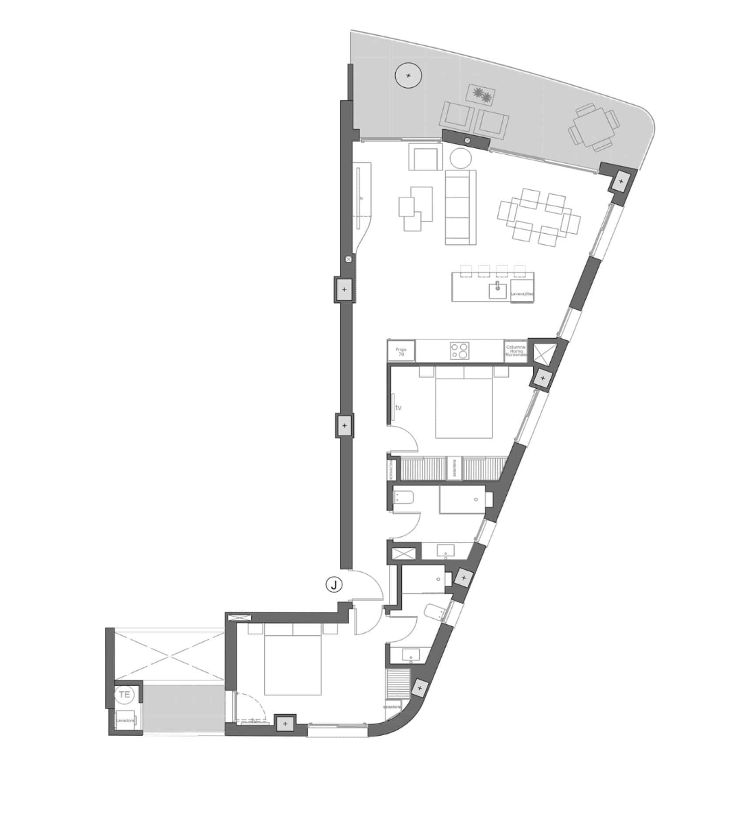 Hier können Sie zwischen stilvoll gestalteten 1-, 2- oder 3-Zimmer-Wohnungen wählen, die alle nach höchsten Standards mit hochwertigen Materialien und Ausstattungen gebaut wurden. Jede Wohnung verfügt über einen hellen und luftigen Grundriss und besteht aus einem geräumigen, offenen Wohn- und Essbereich mit großen Fenstern, die direkten Zugang zur großzügigen Terrasse bieten – ideal zum Entspannen, während Sie den fantastischen Meerblick und die erfrischende Meeresbrise genießen. Zum Hauptwohnbereich gehört eine moderne Küche im amerikanischen Stil mit hohen und niedrigen Schränken sowie einer Kochinsel oder einer Frühstückstheke. Das große Hauptschlafzimmer verfügt über ein eigenes Bad, es gibt ein weiteres geräumiges Doppelzimmer, alle Schlafzimmer sind mit Einbauschränken ausgestattet, und es gibt ein separates Gästebad.