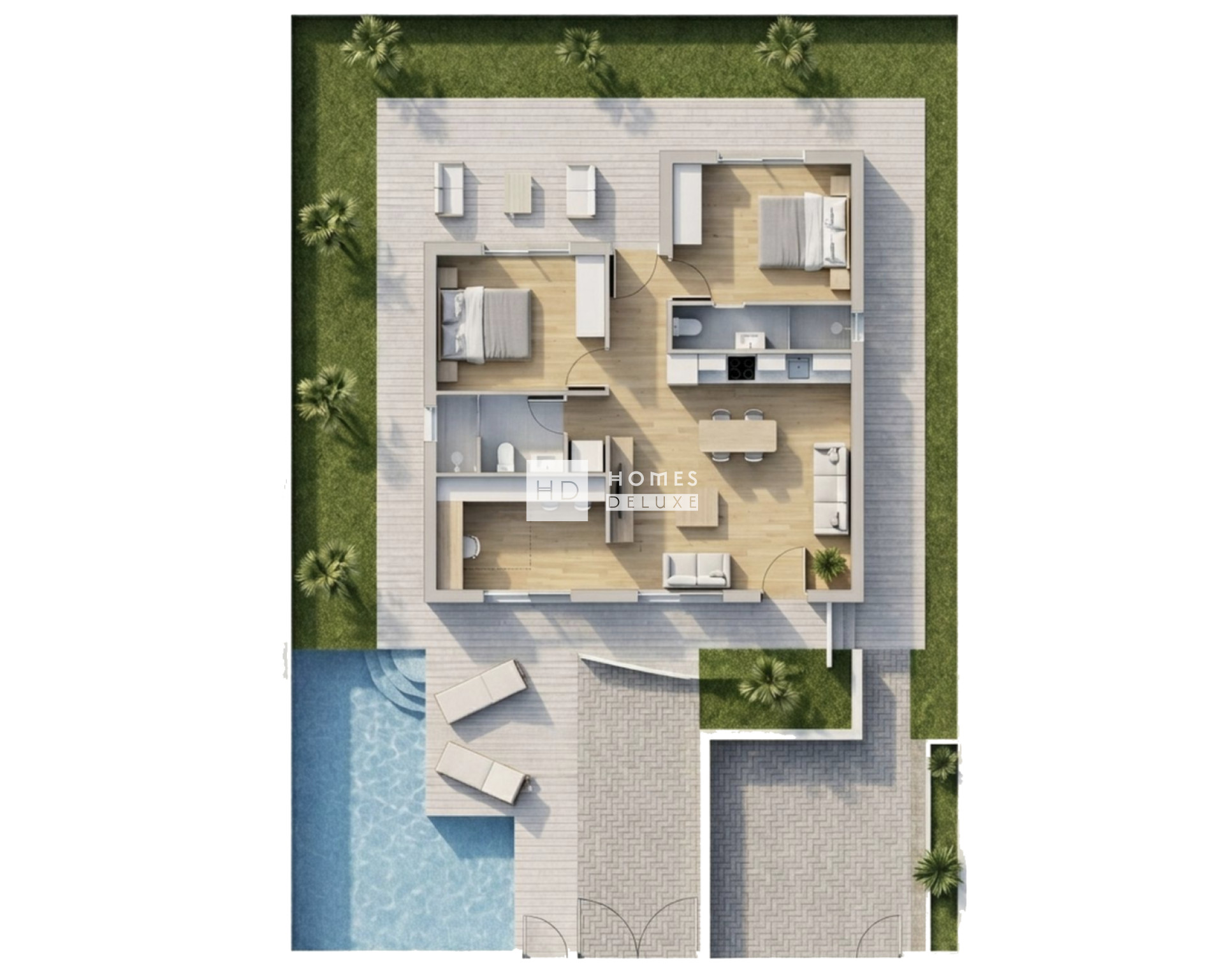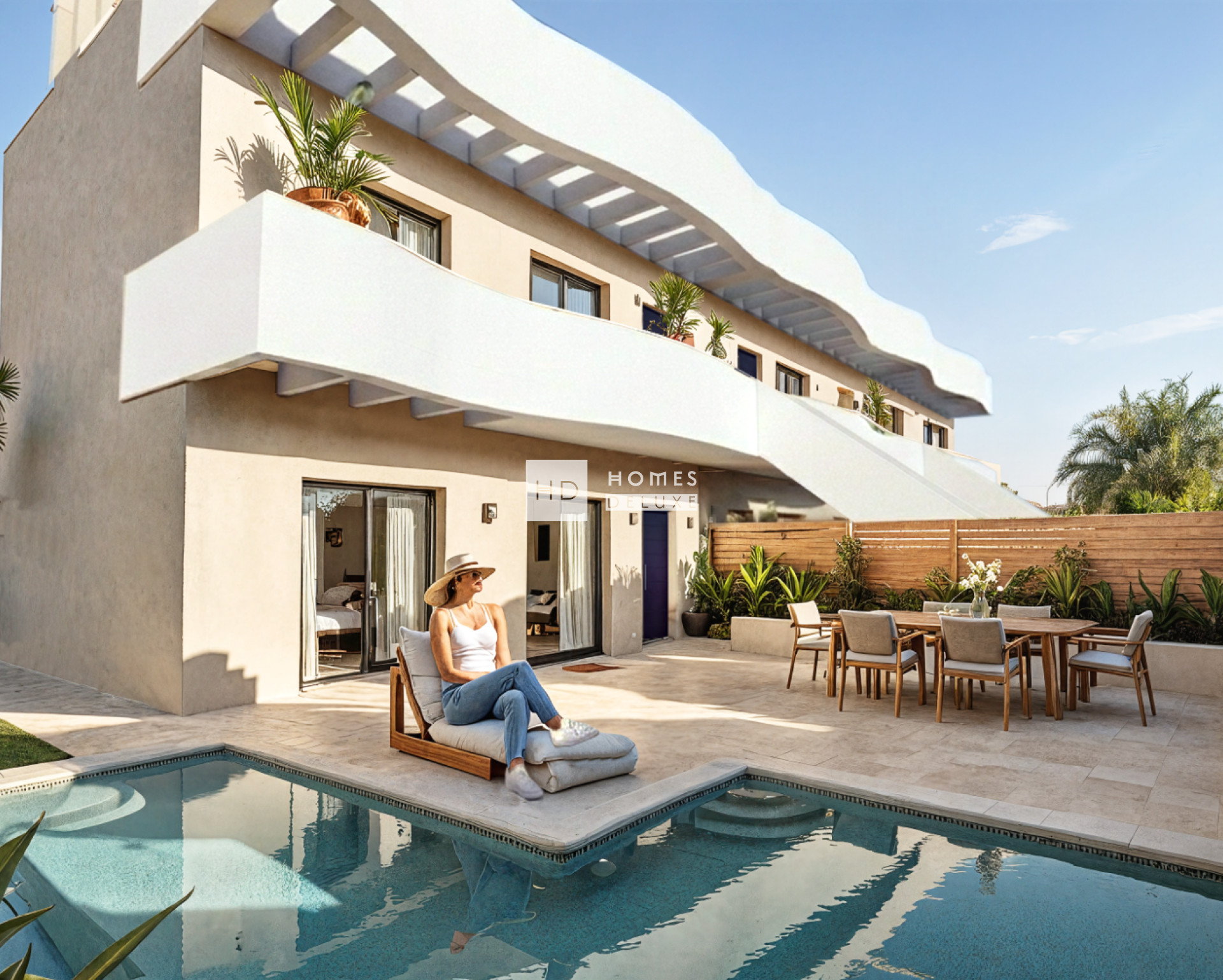 Die Immobilien sind inklusive Vorinstallation für Klimaanlage, Küchengeräte (Backofen, Kochfeld, Dunstabzugshaube, Mikrowelle, Kühl-Gefrierkombination, Geschirrspüler und Waschmaschine), Einbauschränken in allen Schlafzimmern, LED-Beleuchtung im Innen- und Außenbereich, elektrischen Rollläden, Video-Gegensprechanlage, privatem Swimmingpool, privatem Parkplatz und Abstellraum ausgestattet.