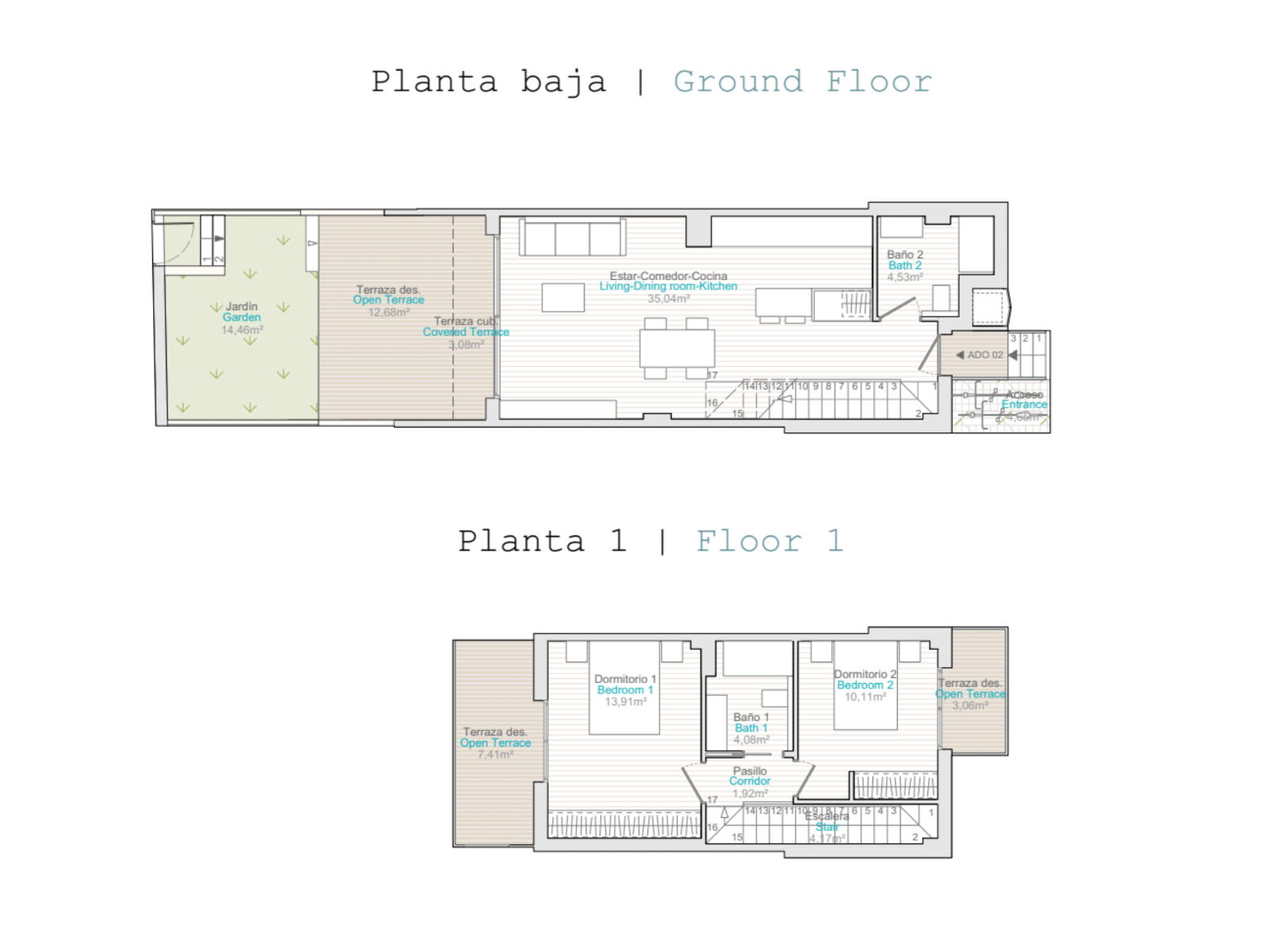In Anlehnung an den Ansatz der Nachhaltigkeit und Energieeffizienz des anderen Komplexes innerhalb der Wohnanlage haben die Planer ein Projekt entworfen, bei dem Reihen-Einfamilienhäuser im Vordergrund stehen. Dieses Wohnkonzept bietet ein Umfeld, in dem Gemeinschaftsbereiche für alle Bewohner zugänglich sind, während jedes Haus über eigene private Bereiche im Innen- und Außenbereich verfügt, die zum täglichen Genießen einladen.