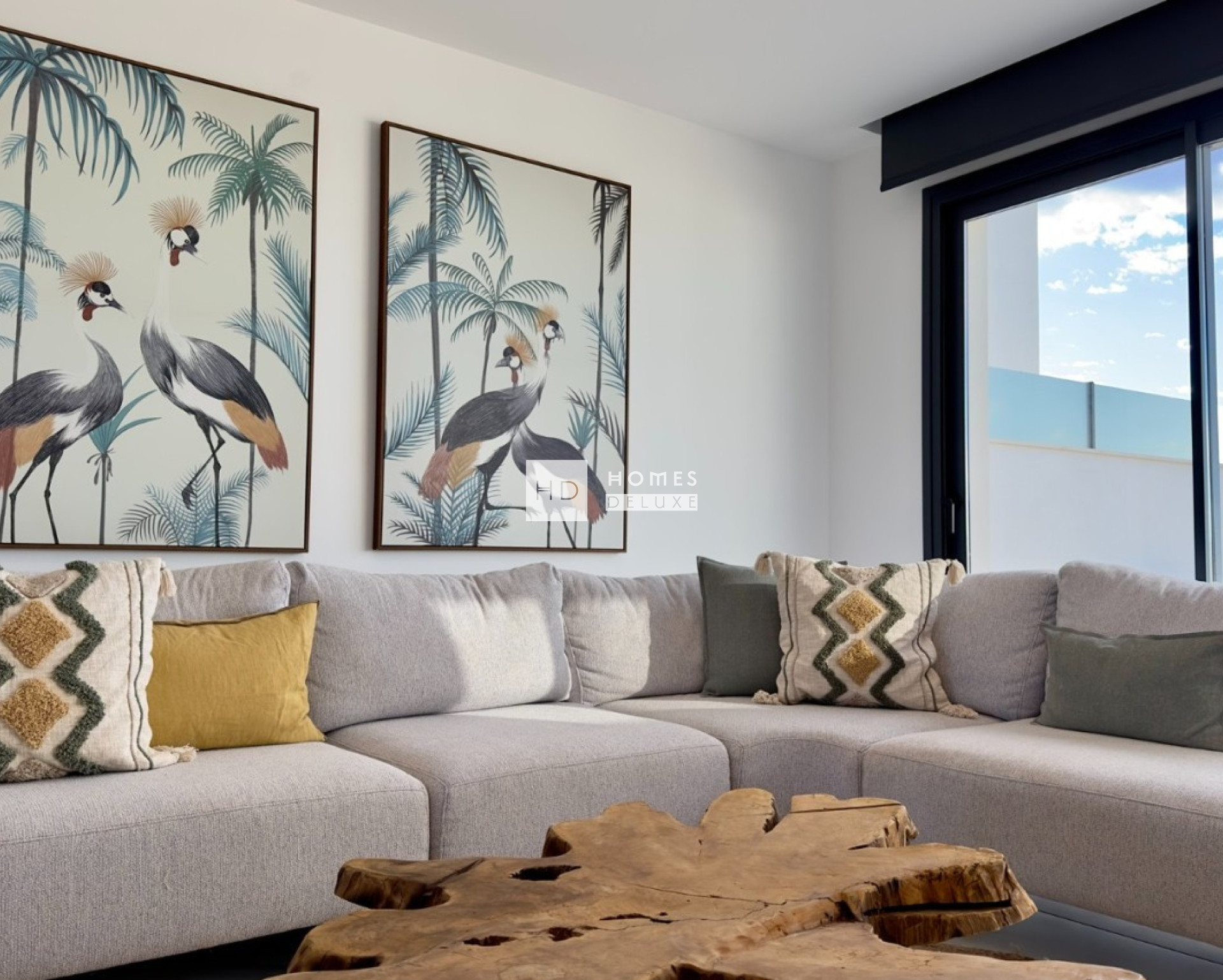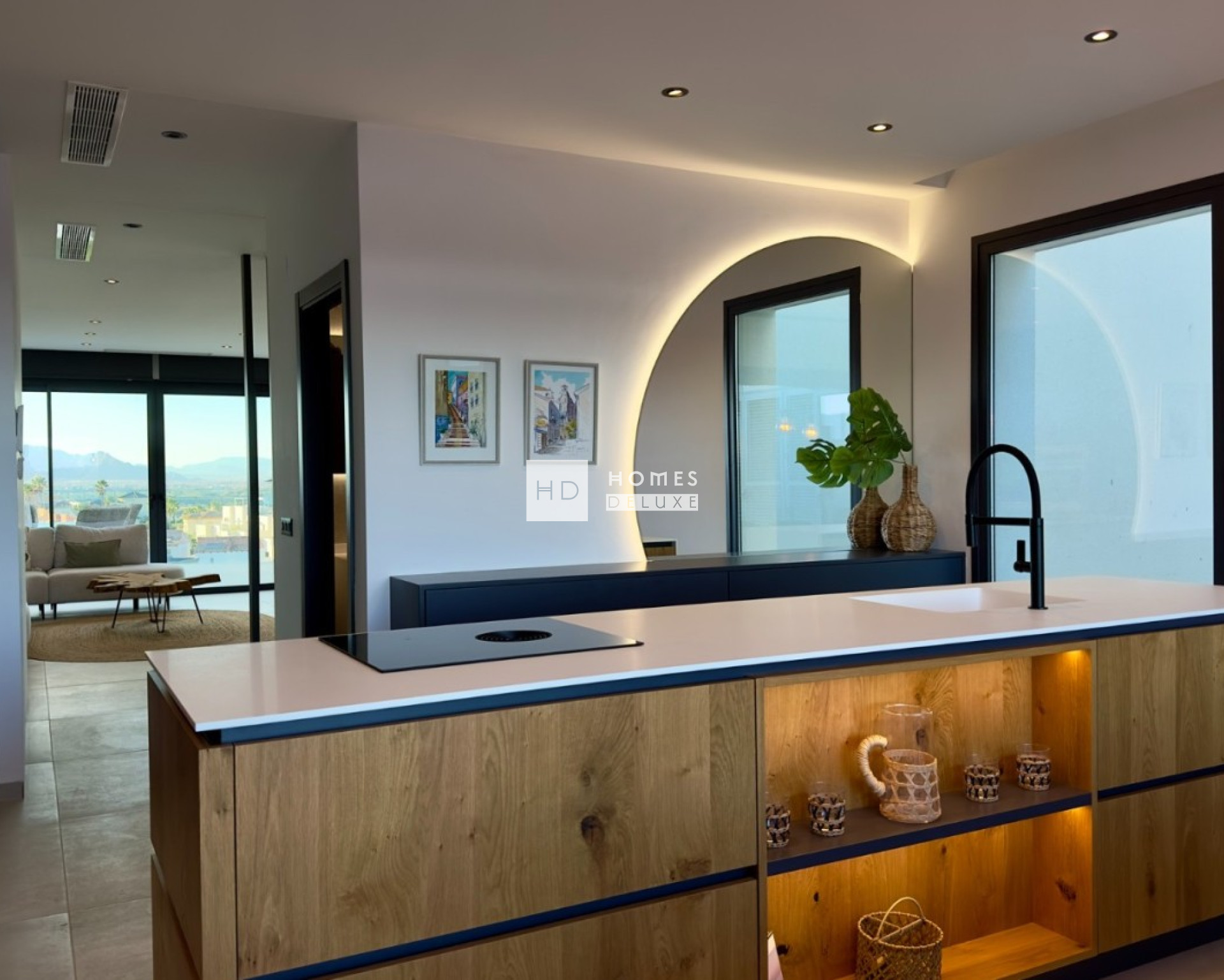 Luxuriös gestaltete Erdgeschosswohnungen mit 4 und 5 Schlafzimmern mit privatem Garten und Swimmingpool in Ciudad Quesada - Rojales (Alicante), mit herrlichem Blick auf die Skyline von Guardamar del Segura und das Meer.