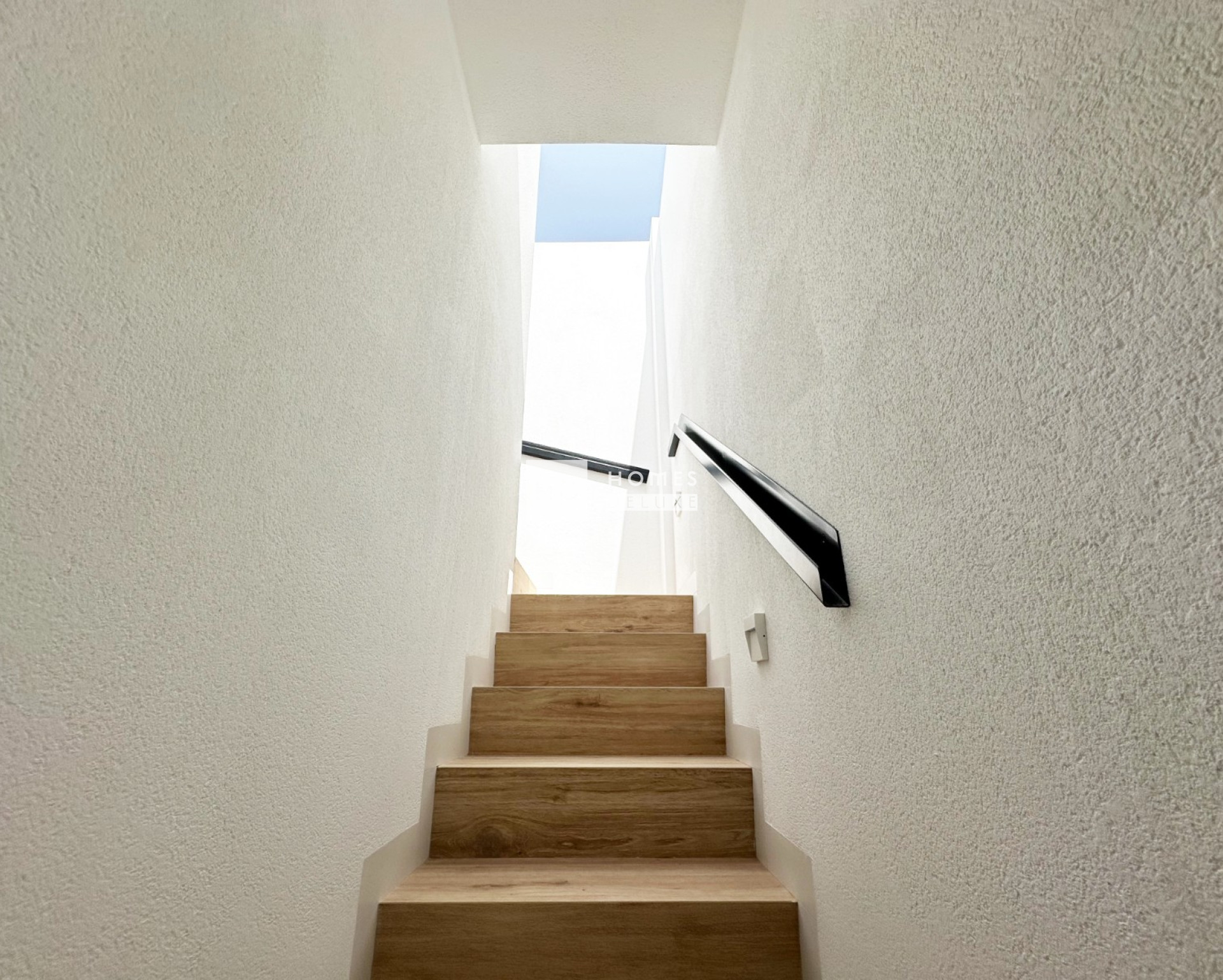 Einzigartige Villen, die sich über zwei Etagen verteilen. Die Innenaufteilung besteht aus einem hellen, geräumigen, offenen Wohn- und Essbereich mit großen Terrassenfenstern, die viel natürliches Licht in das Haus lassen und Zugang zur Terrasse und zum Garten bieten, einer modernen Küche im amerikanischen Stil, sowie einem Schlafzimmer mit Doppelbett und einem Gästebad im Erdgeschoss. Die interne Treppe führt Sie in den ersten Stock mit Hauptschlafzimmer mit en-suite Badezimmer und hat Zugang zur vorderen Sonnenterrasse mit Blick auf den Swimmingpool, ein weiteres Schlafzimmer mit Doppelbett und ein Gästebad. Über die Innentreppe gelangt man auch auf die große Dachterrasse mit Panoramablick.