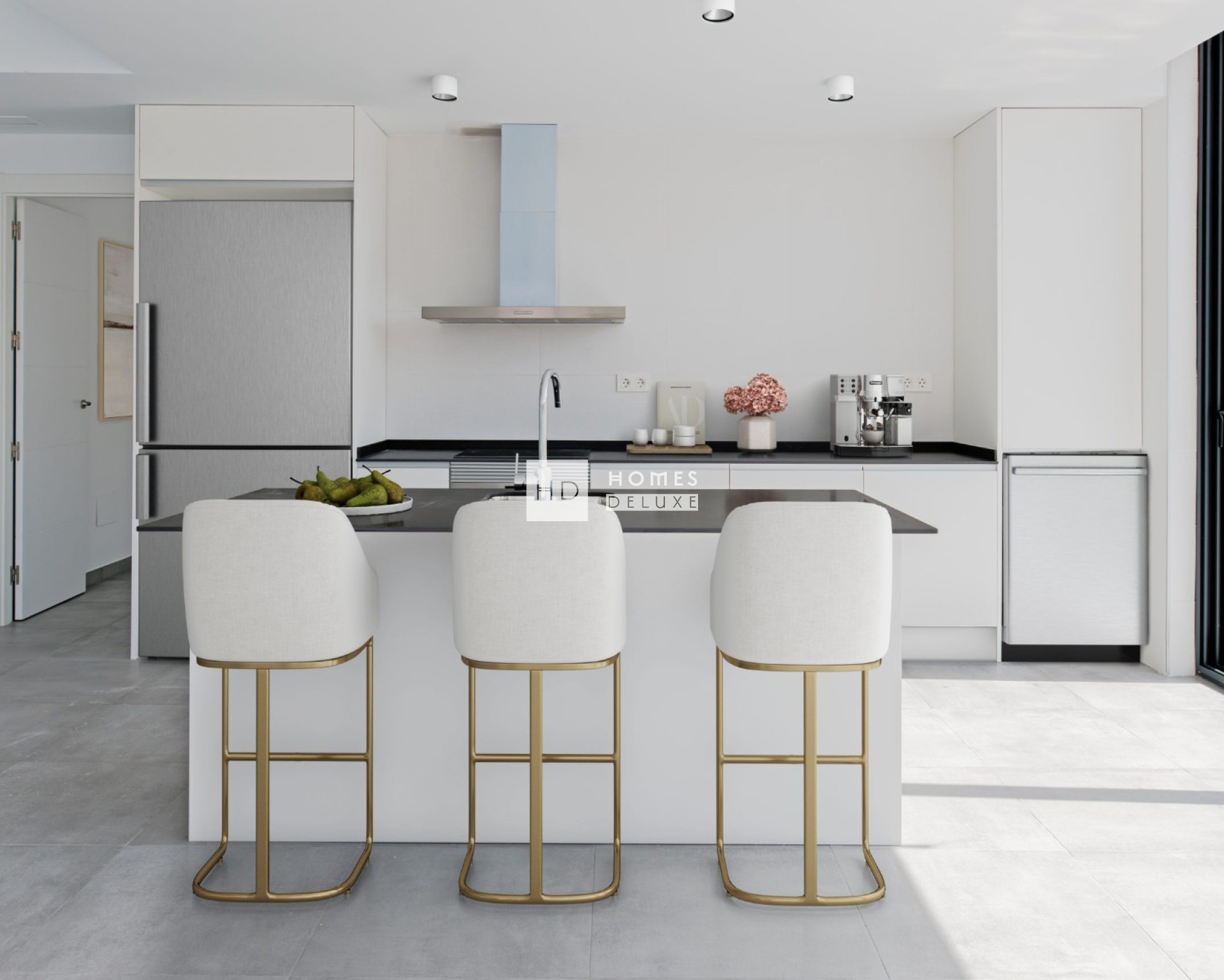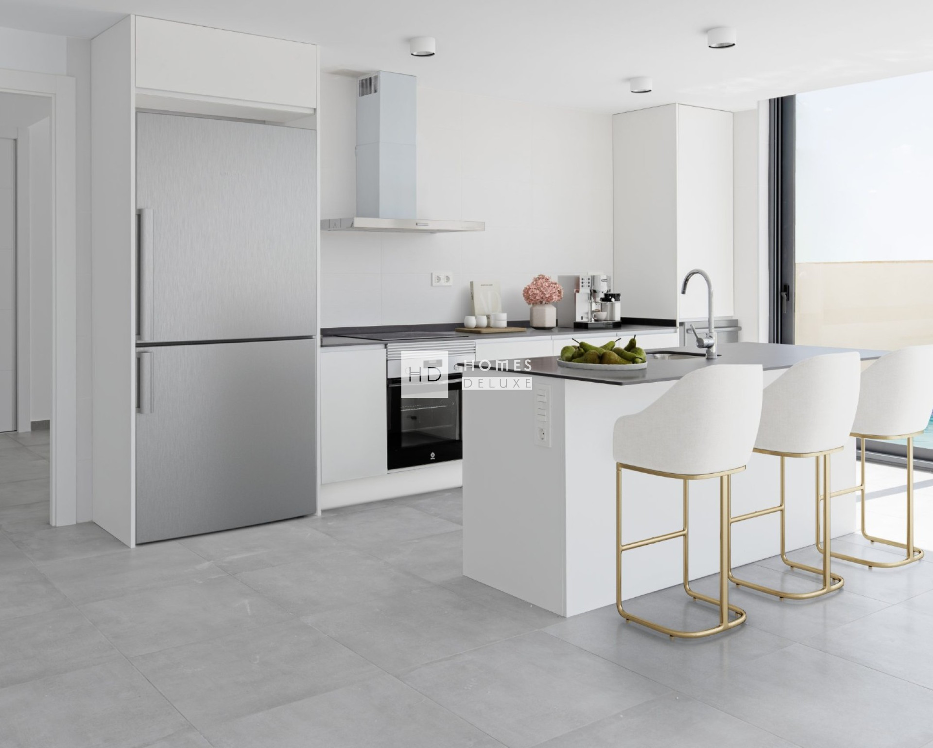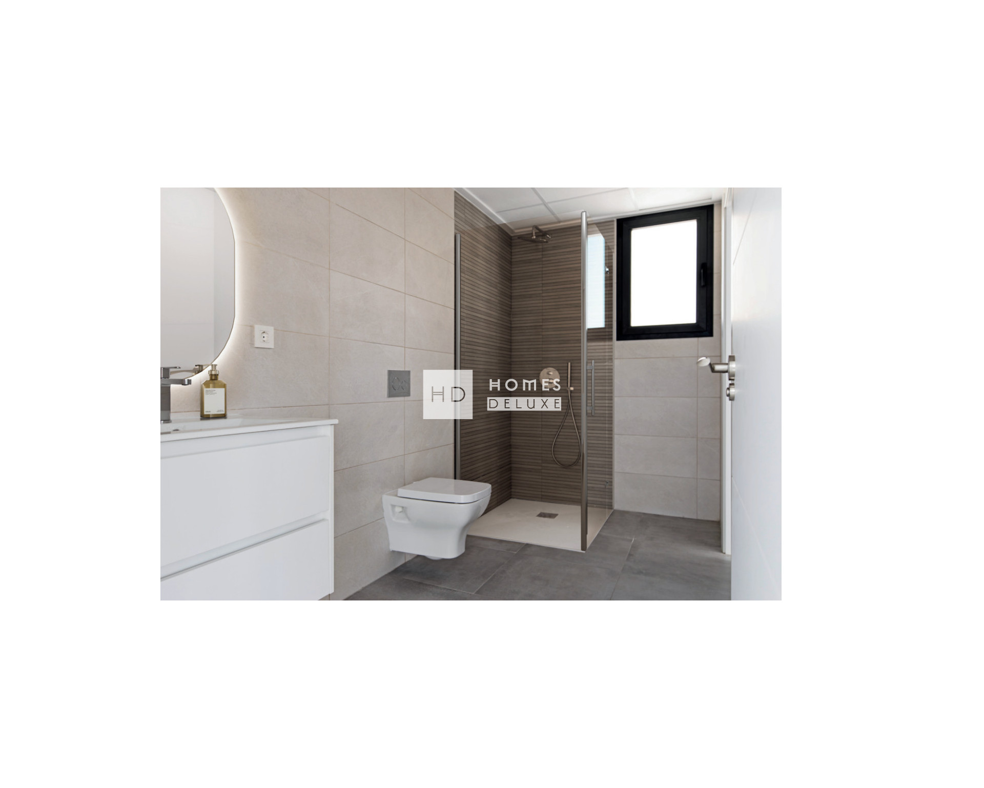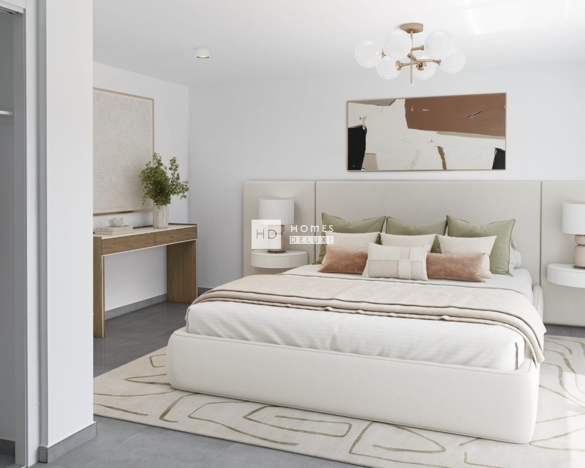 Der Grundriss der Villa besteht aus einem hellen und geräumigen offenen Wohn- und Essbereich mit amerikanischer Küche, die individuell gestaltet werden kann. Große Terrassentüren im gesamten Hauptwohnbereich bieten Zugang zur Terrasse und zum Gartenbereich, im Erdgeschoss befindet sich auch die Master-Suite mit großem Schlafzimmer, en-suite Badezimmer und Ankleidebereich. Die Innentreppe führt Sie in den ersten Stock mit drei weiteren Doppelschlafzimmern (eines mit eigenem Bad), einem Gästebad und einer Sonnenterrasse von 13 m2. Der Garten und die Terrasse im Erdgeschoss bieten viel Platz zum Entspannen und für Mahlzeiten im Freien. Es gibt einen privaten Parkplatz auf dem Grundstück und die Möglichkeit, einen privaten Swimmingpool hinzuzufügen. Sie haben die Wahl zwischen verschiedenen Bodenbelägen, und die Häuser verfügen über eine vorinstallierte Klimaanlage und ein System für erneuerbare Energien (Aerotermo).