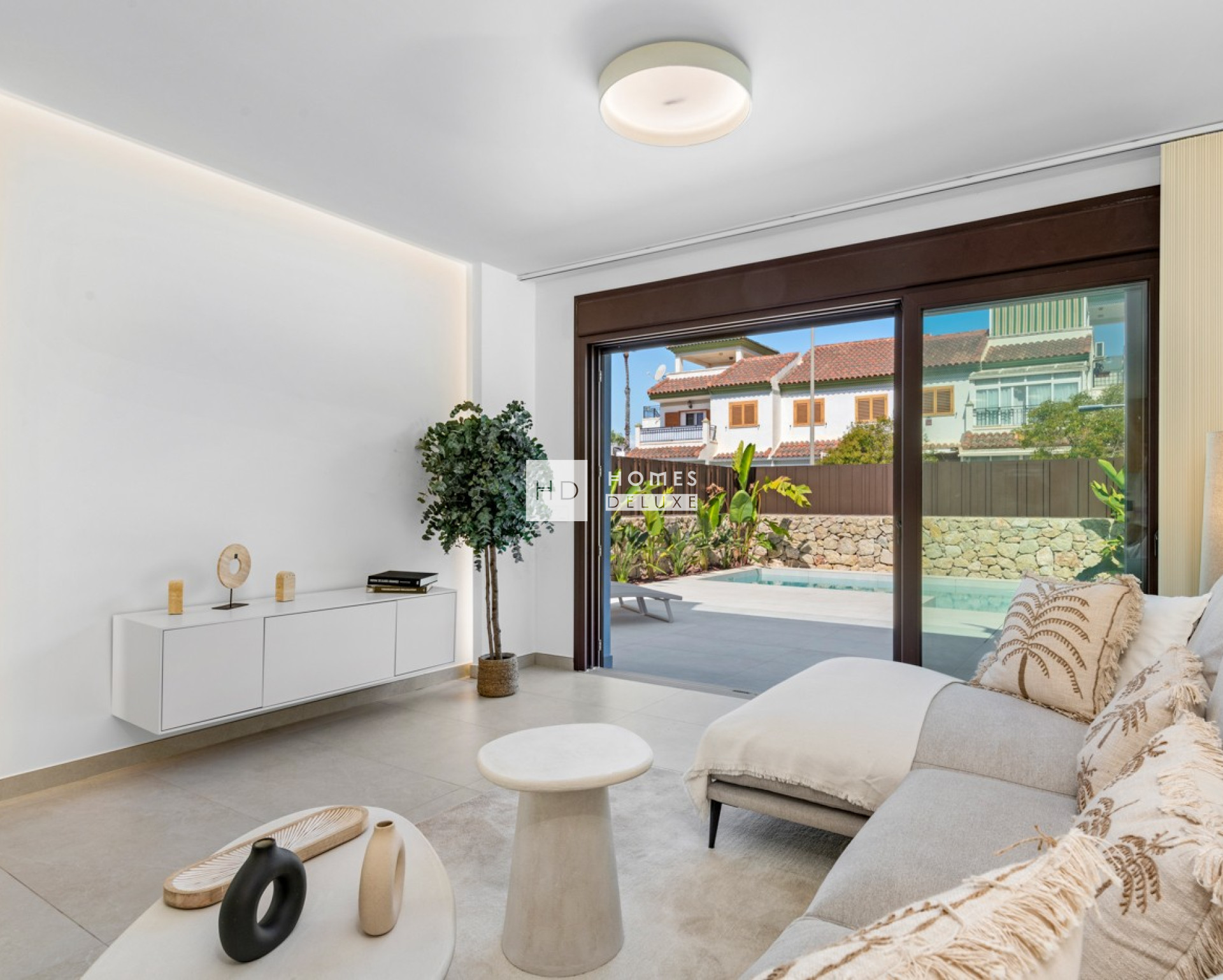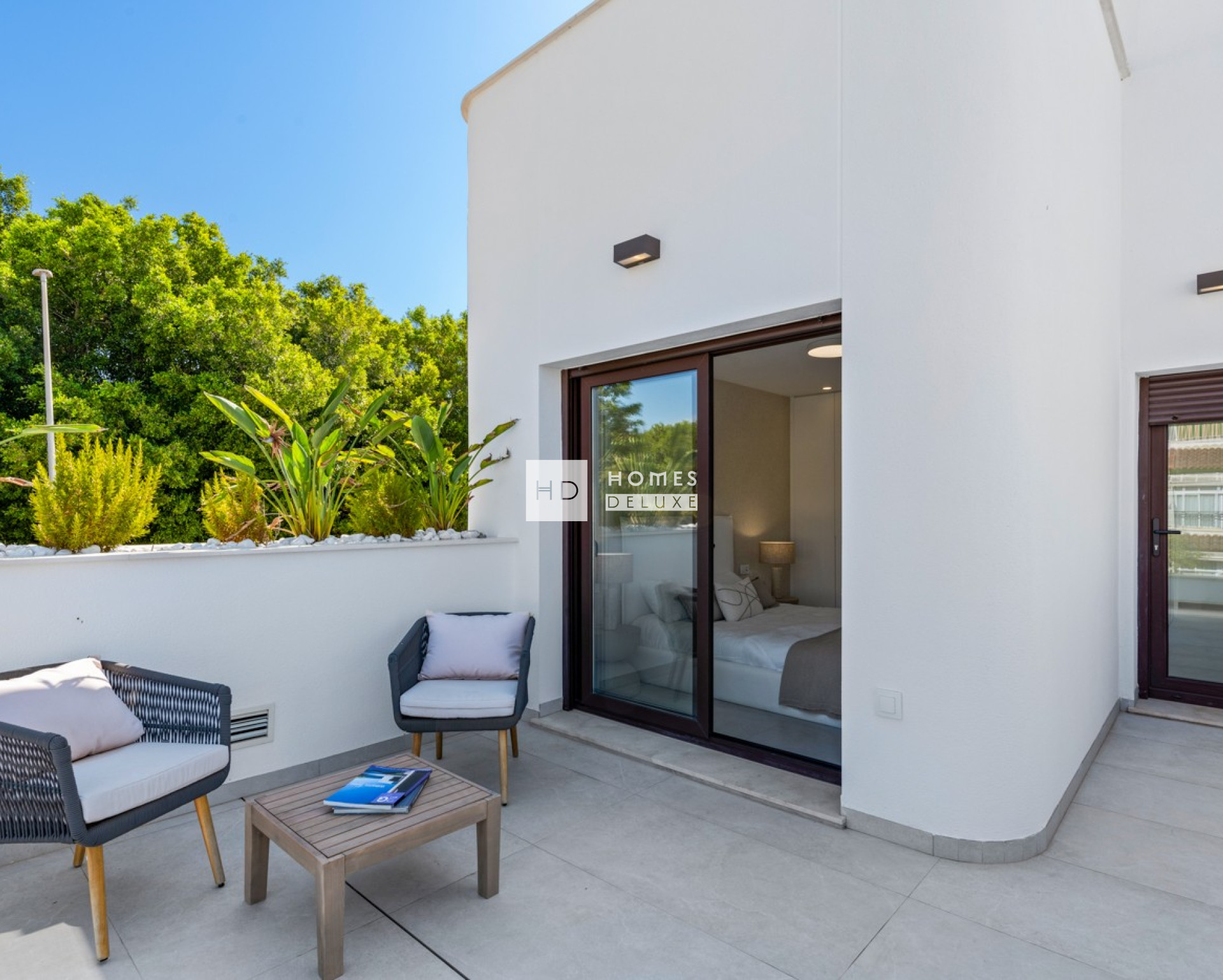 Das Haus liegt in der Nähe des Strandes Mil Palmeras, zwischen Campoamor und Torre de la Horadada. Diese Gegend ist bekannt für ihre schönen Strände mit feinem Sand, die mit der blauen Flagge ausgezeichnet sind. In der Gegend gibt es eine Reihe von Annehmlichkeiten wie Supermärkte, Bars, Restaurants, Apotheken, etc. Nur wenige Autominuten entfernt befindet sich eines der größten Einkaufszentren der Provinz Alicante, der "Zenia Boulevard". Sie können auch die Natur genießen, die Wohnanlage ist umgeben von einem natürlichen pinnate und ein Weg, direkt neben dem Fluss Seco, wo Sie Spaziergänge machen können. Ganz in der Nähe des Projekts befinden sich 4 Golfplätze, in weniger als 10 Minuten mit dem Auto erreichen Sie Villamartin Golf, Las Ramblas Golf, Real Club de Golf Campoamor Resort und den preisgekrönten Las Colinas Golf and Country Club.