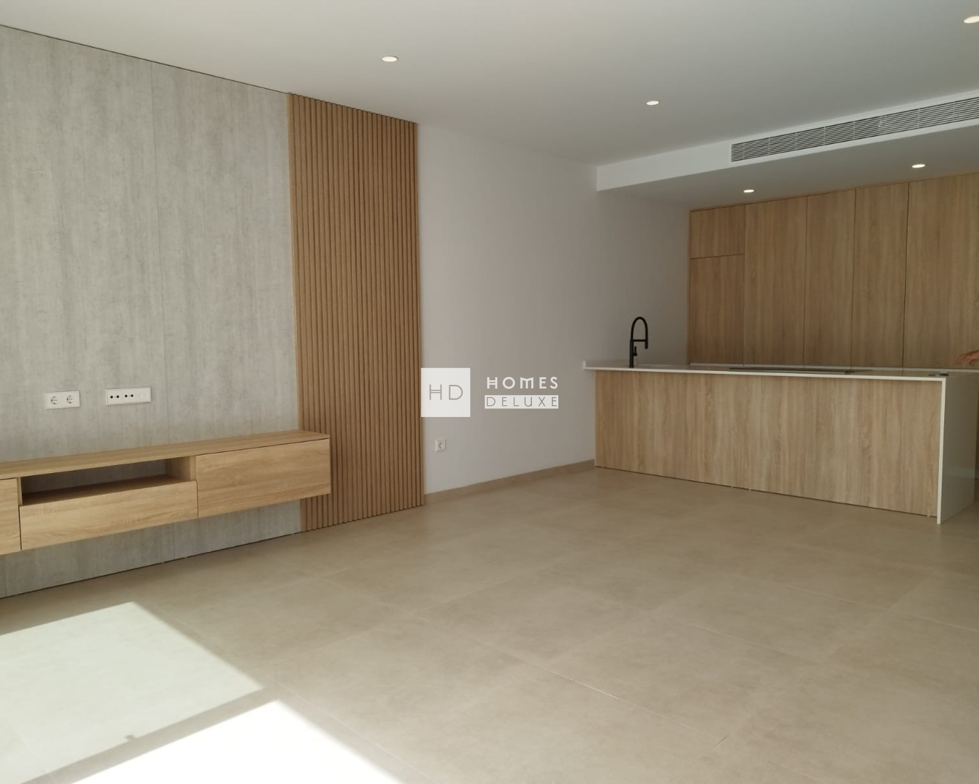 Die Villa besteht aus einem hellen, offenen Wohn- und Essbereich mit großen Terrassentüren, die Zugang zur Terrasse bieten, einer voll ausgestatteten, modernen Küche im amerikanischen Stil, einem Hauptschlafzimmer mit eigenem Bad, zwei weiteren Doppelschlafzimmern und einem separaten Gästebad. Jedes Schlafzimmer hat eine Terrassentür, die entweder auf die vordere Terrasse oder in den Garten auf der Rückseite des Hauses führt. Die Außentreppe führt Sie auf die große Dachterrasse, wo Sie den ganzen Tag die Sonne genießen können.