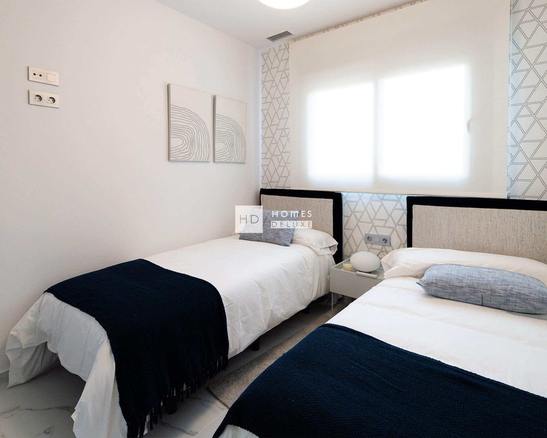 La distribución interior consta de un amplio salón y comedor con puertas que dan a la terraza acristalada, una cocina de diseño contemporáneo totalmente equipada con lavadero independiente, dormitorio principal con baño en-suite y puerta de acceso a la terraza, otros dos dormitorios dobles y un baño de invitados. Las propiedades incluyen aire acondicionado por conductos, calefacción por suelo radiante en los baños, toallero eléctrico en el baño uno, descalcificador de agua comunitario que mejora la calidad del agua del grifo, horno, vitrocerámica y campana extractora en la cocina (otros electrodomésticos son opcionales), armarios empotrados en todos los dormitorios, iluminación LED, sistema de video portero, instalación de equipo de recepción de televisión, todos los apartamentos tienen una plaza de aparcamiento, ya sea en el sótano del edificio o en el aparcamiento al aire libre, todos con pre instalación para un punto de carga para un vehículo eléctrico.