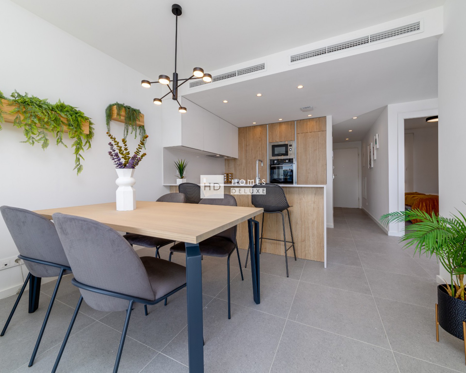 Las viviendas incluyen aire acondicionado por conductos, calefacción por suelo radiante en los baños, electrodomésticos en la cocina (vitrocerámica, horno, campana extractora, microondas, frigorífico-congelador y lavavajillas), armarios empotrados en todos los dormitorios, iluminación interior LED, una plaza de aparcamiento con pre instalación para un cargador de vehículo eléctrico y una plaza de aparcamiento para bicicletas.
