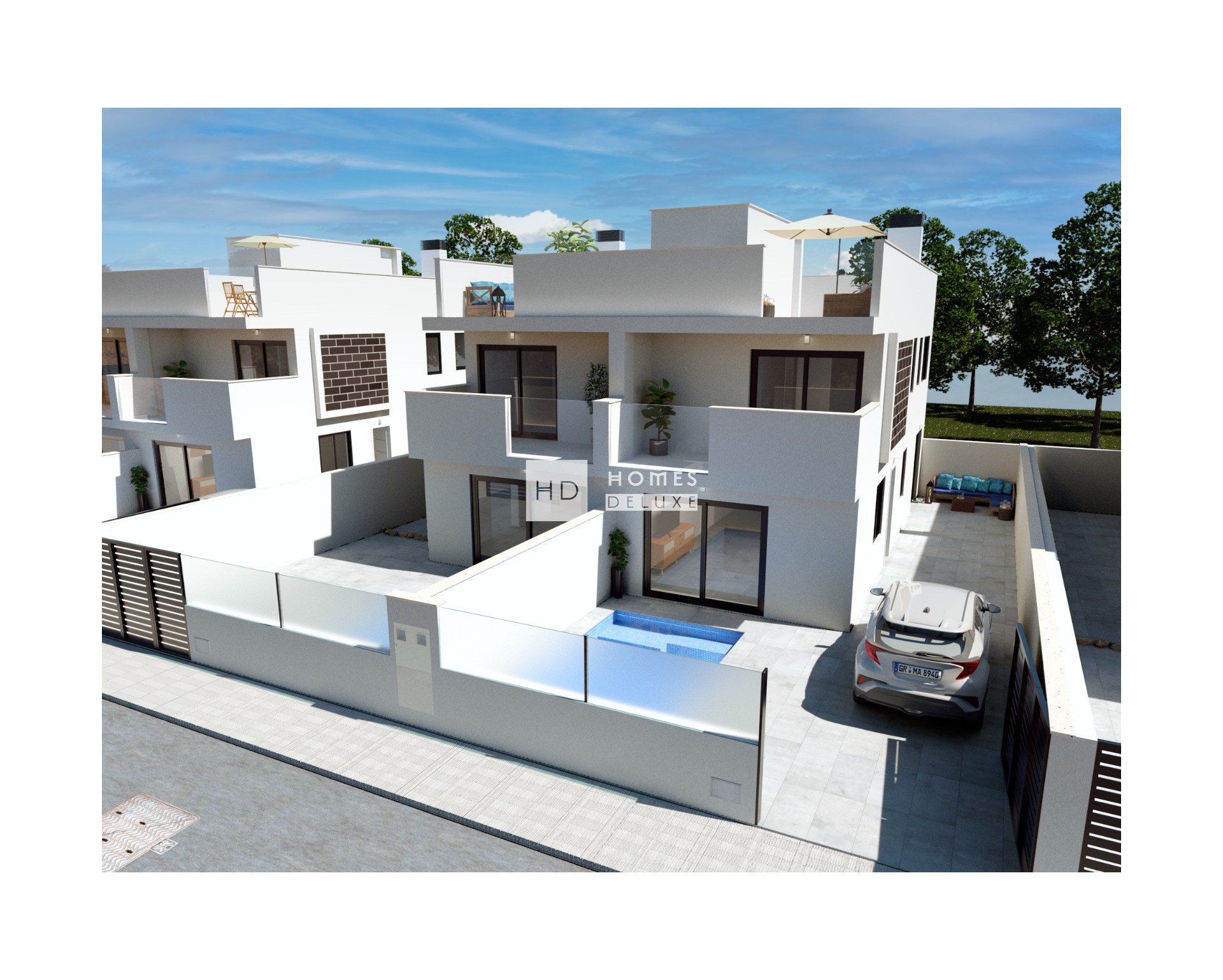 Un nuevo proyecto de 2 villas adosadas con 3 dormitorios 3 baños y piscina privada situada en San Pedro del Pinatar (Murcia), rodeado de todos los servicios, las hermosas playas y "Salinas del San Pedro" parque natural que le permite disfrutar de un entorno natural único.