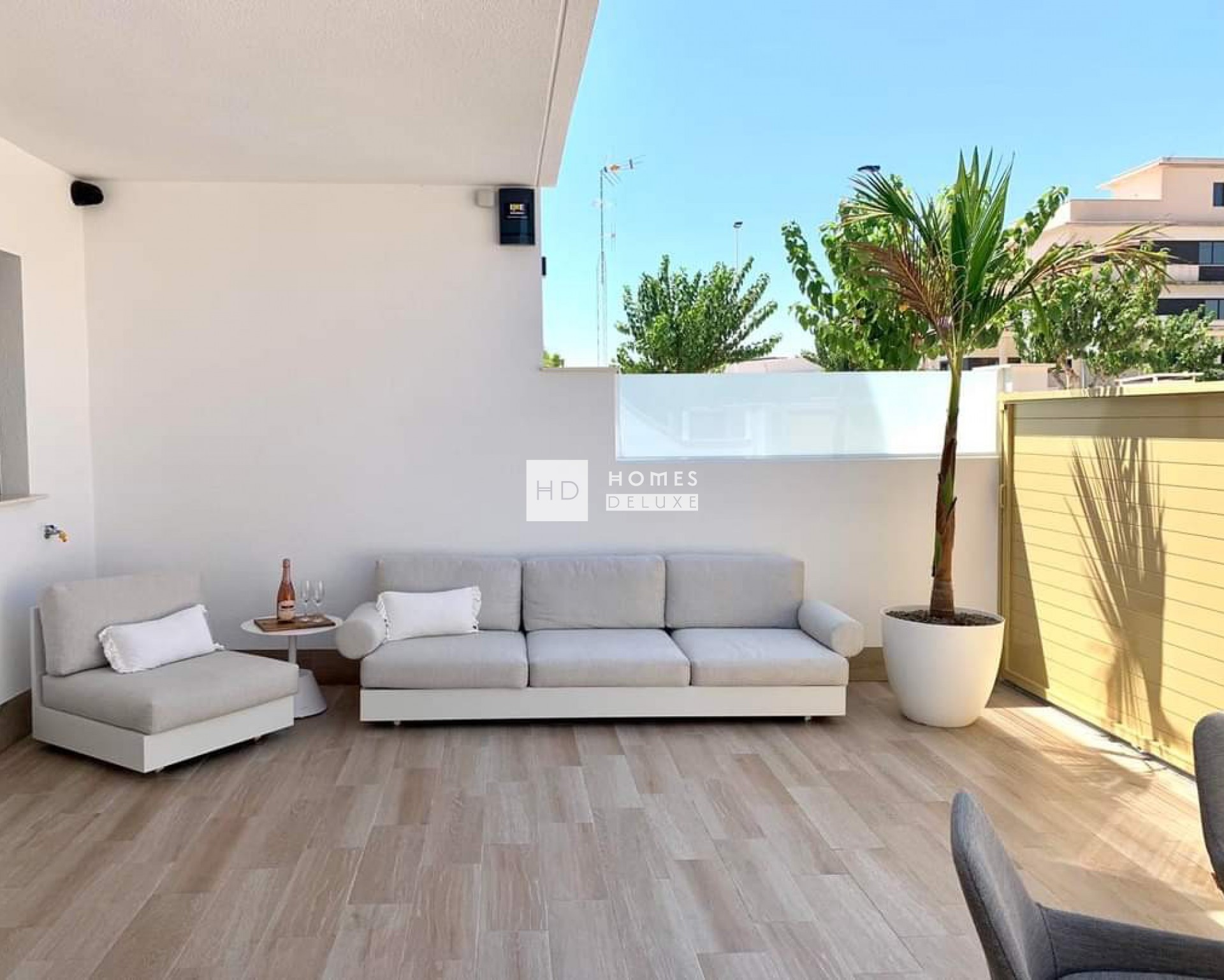 Las viviendas incluyen pre instalación de aire acondicionado por conductos, electrodomésticos en cocina (horno, vitrocerámica, campana extractora, frigorífico-congelador, microondas, lavavajillas y lavadora), armarios empotrados en todos los dormitorios, iluminación LED interior y exterior, trastero y plaza de aparcamiento privada. Hay varios extras opcionales para elegir con aire acondicionado completo, cocina de verano y mucho más.