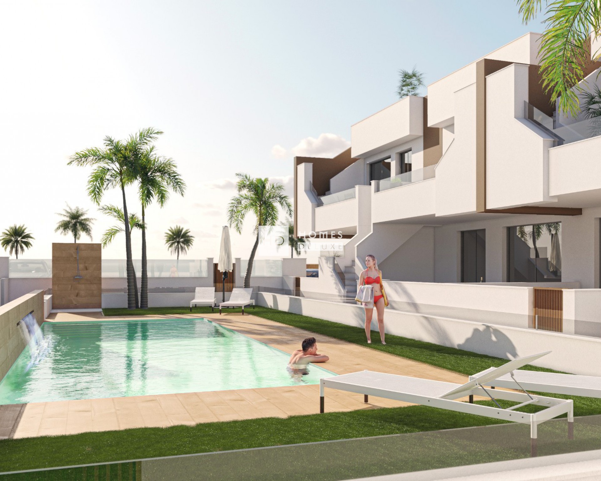 El complejo es una comunidad cerrada con hermosos jardines comunitarios y una gran piscina comunitaria para el disfrute de los residentes. Se puede elegir entre apartamentos de 2 dormitorios en planta baja con jardín privado y apartamentos de 3 dormitorios en planta alta con solarium privado en la azotea.