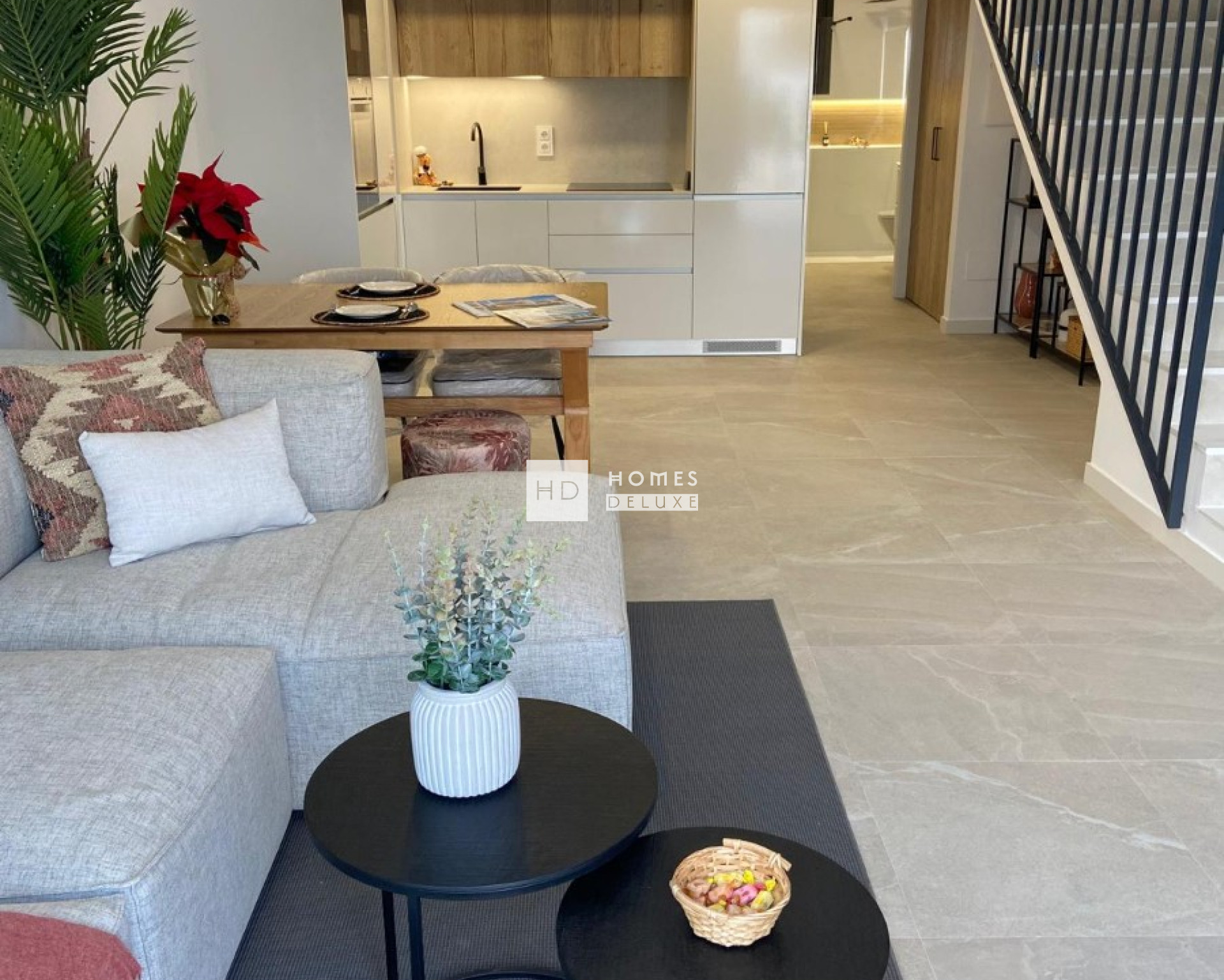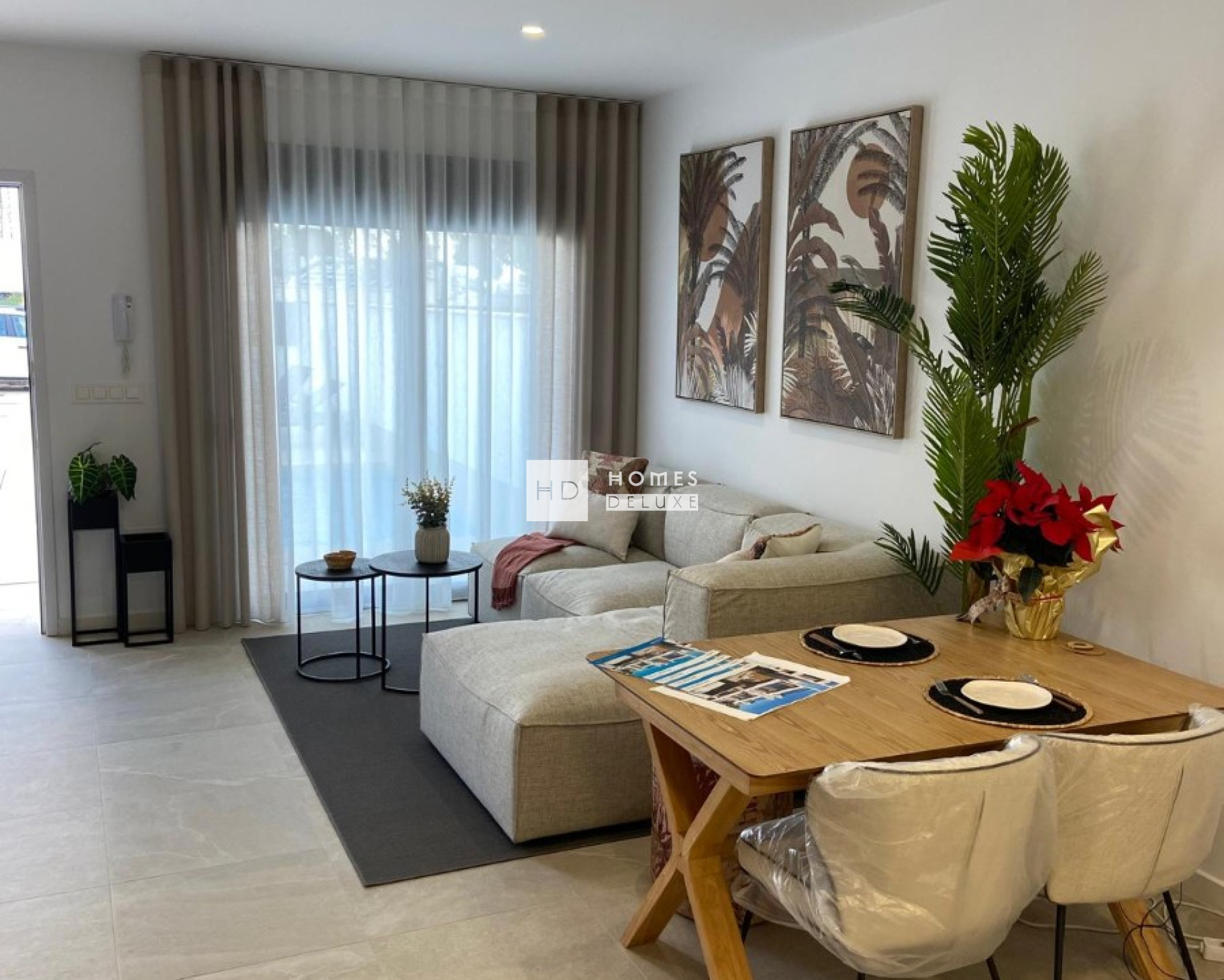Las propiedades han sido diseñadas con un estilo contemporáneo y un concepto de planta abierta, la distribución interior consta de un amplio salón y comedor con puertas que dan acceso a la terraza y jardín, una cocina americana totalmente equipada, la planta baja también tiene un dormitorio doble con puerta de acceso a la terraza trasera, y un baño de invitados. La escalera interior le lleva a la primera planta con el dormitorio principal con vestidor y puerta de acceso a la terraza de 16m2, otro dormitorio doble y un segundo baño de invitados. La escalera interior también le lleva al amplio solarium de la azotea de 35m2 para disfrutar del sol durante todo el día. El espacio exterior en la planta baja cuenta con una gran terraza con piscina privada de 14m2, las parcelas de esquina tienen piscinas un poco más grandes de 15m2 y 19m2, y en la parte trasera de cada propiedad hay una zona de lavandería.