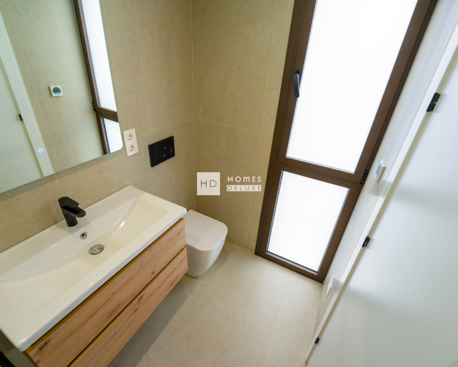Las parcelas le permiten disfrutar de la vida al aire libre con una piscina privada opcional de 6x3, una amplia terraza y zona ajardinada para relajarse bajo el sol, y otra característica de la villa es la gran terraza en el primer nivel con vistas a la piscina y zona ajardinada. Las villas cuentan con un hermoso diseño contemporáneo y grandes ventanales que permiten que la luz natural fluya a través de los espacios interiores. La distribución interior consta de un amplio salón de planta abierta y un comedor orientado hacia el jardín y la piscina, una moderna cocina americana totalmente equipada con isla central, un aseo, la planta baja también tiene un impresionante dormitorio principal con baño en-suite y puerta de acceso directamente a la terraza principal. La escalera interior conduce a la primera planta con otros dos amplios dormitorios dobles y un baño de invitados. Uno de los dormitorios y el pasillo de la primera planta da acceso a la amplia terraza de 43m2.