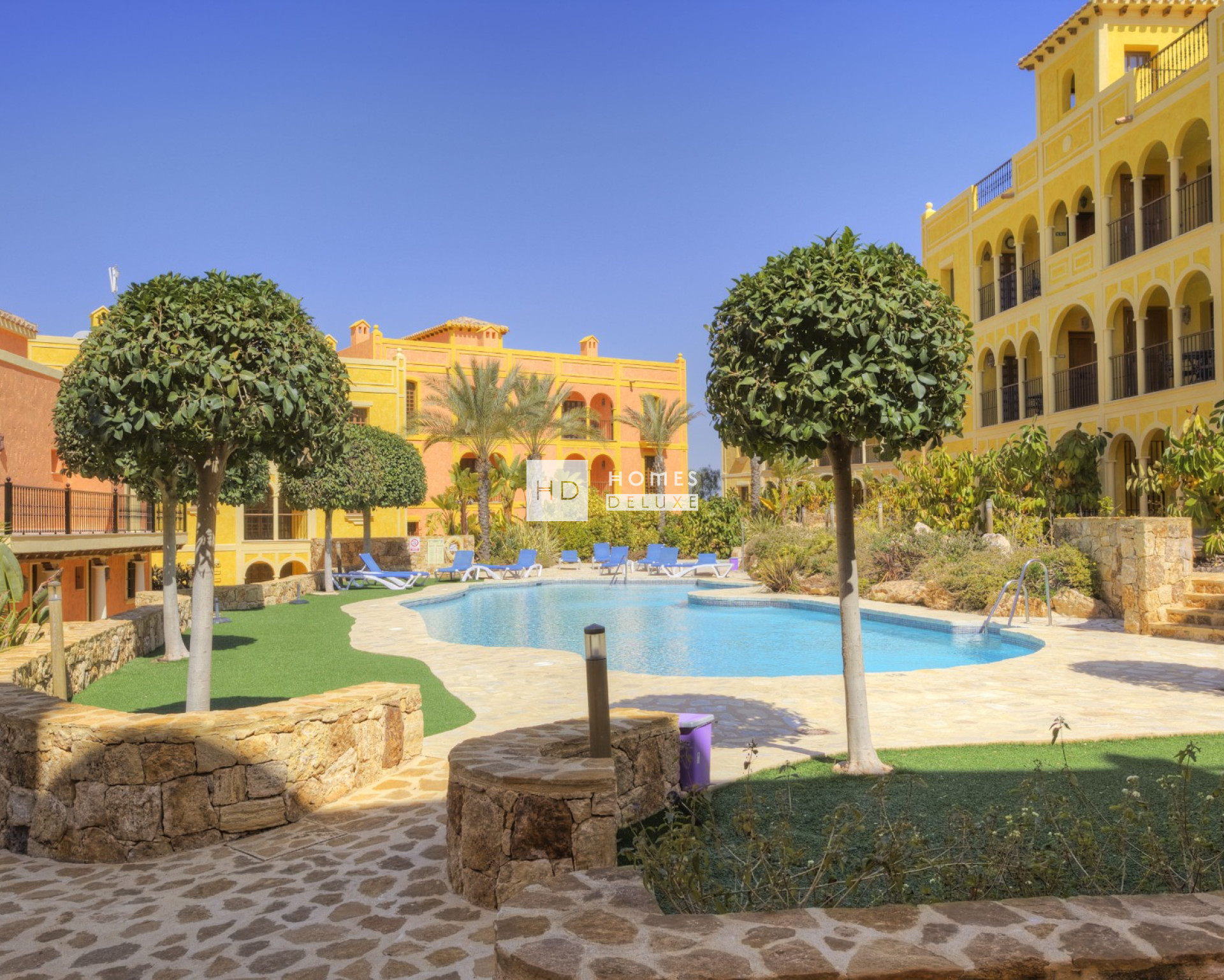 Este impresionante apartamento de dos dormitorios está situado dentro de un encantador patio de estilo español, rodeado de hermosos jardines comunitarios y con acceso a una refrescante piscina comunitaria. El exterior de la propiedad conserva la rica tradición de la arquitectura española, con verandas y balcones de madera y hierro que realzan el carácter de la vivienda, mientras que el interior es un escaparate de elegancia y confort modernos. El apartamento cuenta con dos dormitorios bien equipados, incluyendo un baño en-suite, ambos con armarios empotrados y sanitarios de alta calidad. El espacioso salón-comedor se abre a una terraza soleada, creando un flujo continuo entre los espacios interiores y exteriores, perfecto tanto para relajarse como para entretenerse. La cocina abierta está totalmente equipada con electrodomésticos integrados, como frigorífico/congelador, lavadora, vitrocerámica, microondas y campana extractora, lo que garantiza una combinación perfecta de forma y funcionalidad. El apartamento también incluye aire acondicionado y doble acristalamiento para la comodidad durante todo el año, y una plaza de aparcamiento asignada para mayor comodidad. Situado dentro de una comunidad cerrada con seguridad 24/7, esta residencia ofrece tranquilidad en un entorno prestigioso y exclusivo. Tanto si busca una residencia a tiempo completo como una escapada de vacaciones, esta propiedad en Desert Springs es el lugar perfecto para experimentar un lujoso estilo de vida bajo el sol. No pierda la oportunidad de hacer de este extraordinario apartamento su hogar. Precios sujetos a disponibilidad. Contacte con nosotros para más información.
