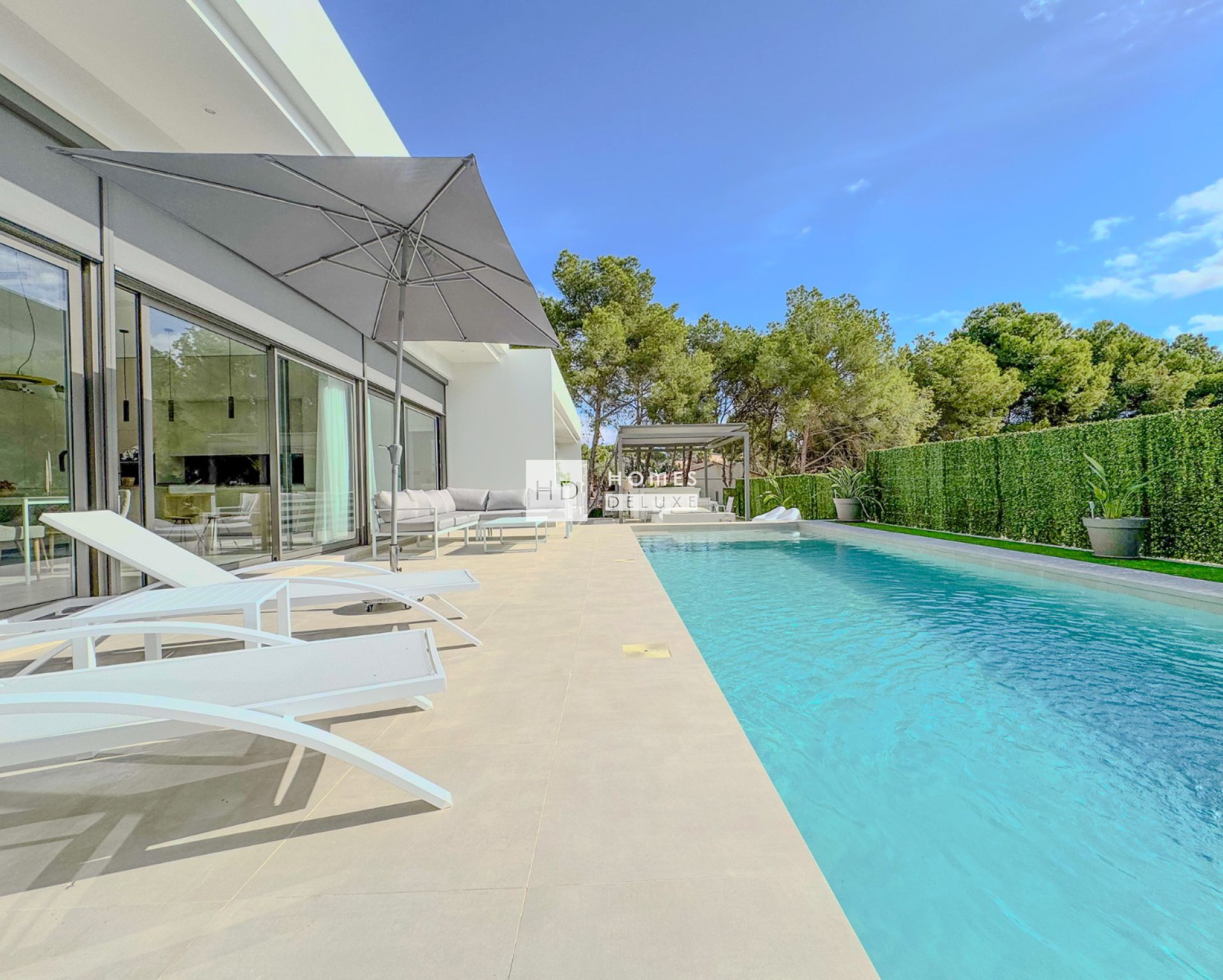 El proyecto consta de 5 villas de lujo todas en una sola planta con un impresionante diseño contemporáneo. El exterior cuenta con un amplio espacio al aire libre para aprovechar al máximo la vida al aire libre en España con un gran jardín privado y terraza, incluyendo una amplia piscina privada de 10m x 3,5m. La cocina de verano con isla central le permite disfrutar de cenas al aire libre con familiares y amigos.