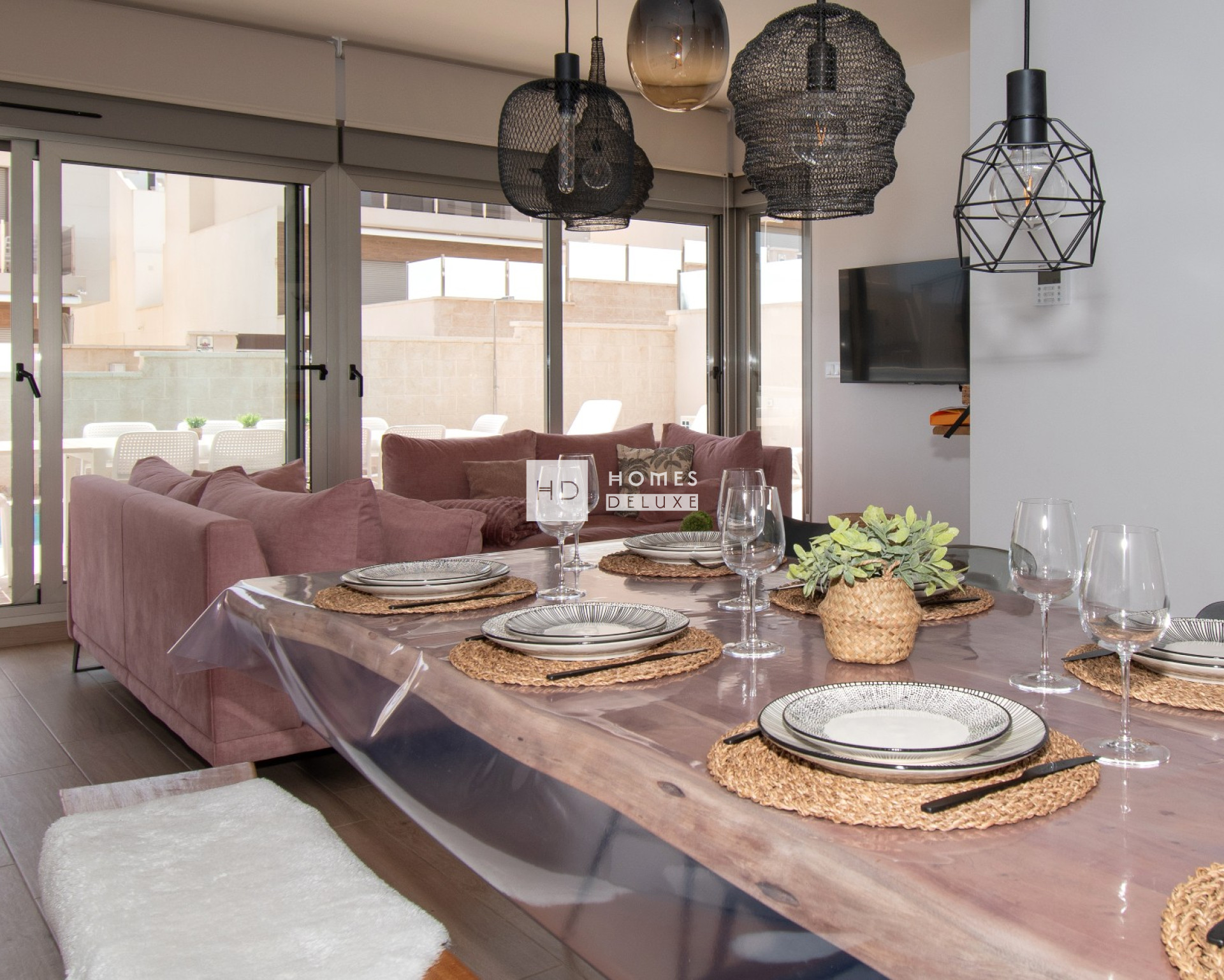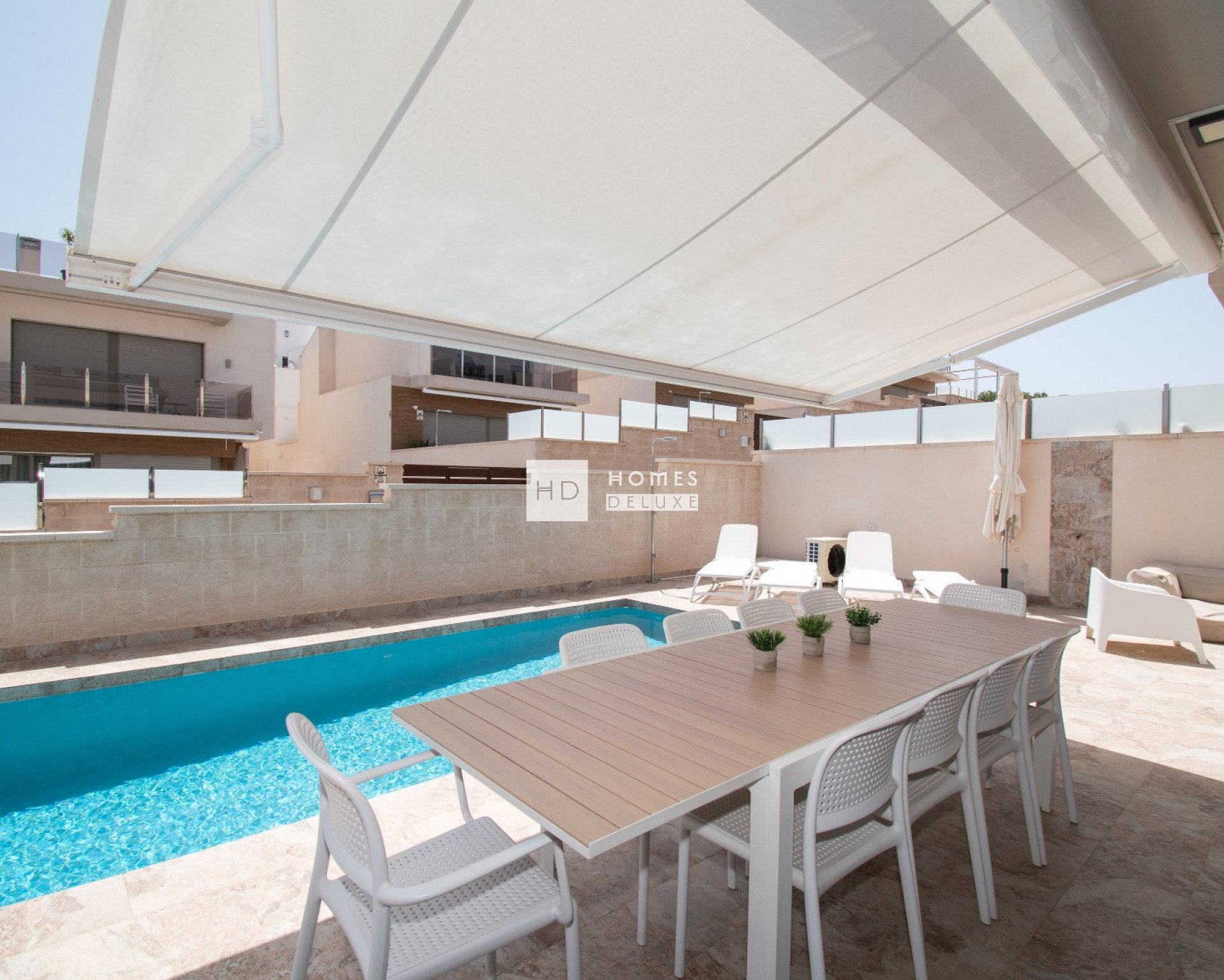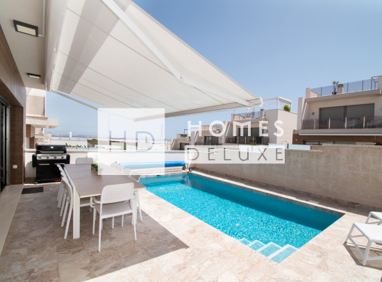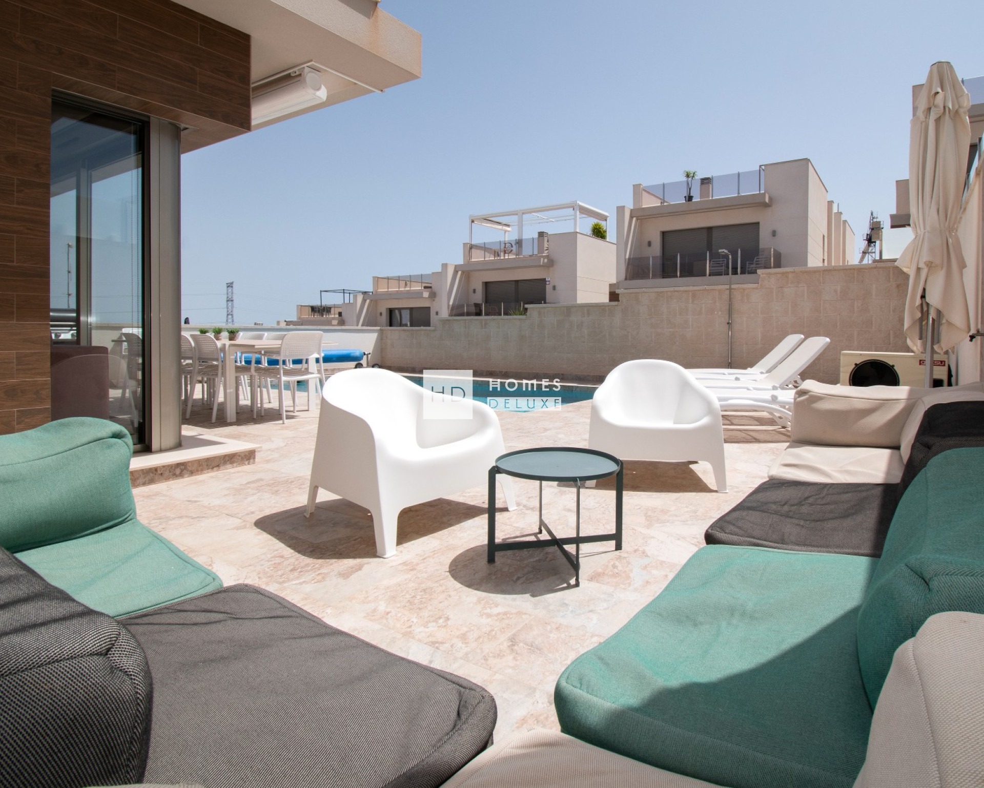 La propiedad fue construida en 2021 y cuenta con un amplio tamaño de construcción 190m2 con un garaje privado. La villa goza de una orientación sureste que es perfecto para disfrutar del sol todo el día con la gran terraza y piscina privada donde tiene zonas para relajarse y descansar, así como áreas para el entretenimiento con cenas al aire libre con familiares y amigos. Extendiendo el espacio exterior aún más es el amplio solarium en la azotea.