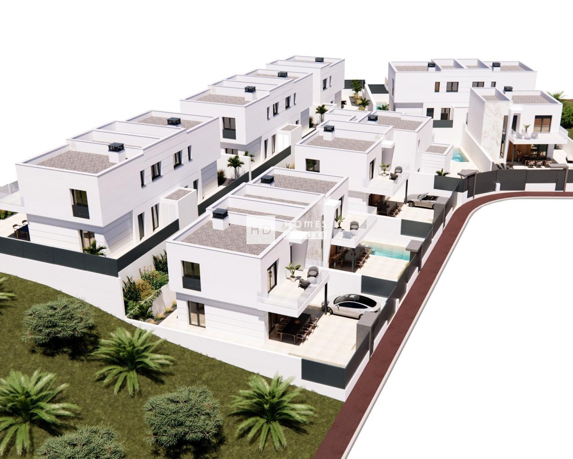 Las propiedades incluyen pre instalación de aire acondicionado por conductos, armarios empotrados en todos los dormitorios, persianas eléctricas, sistema de videoportero, piscina privada con sistema opcional de purificación y recirculación, ducha exterior y aparcamiento privado en la parcela con apertura automática motorizada por mando a distancia.