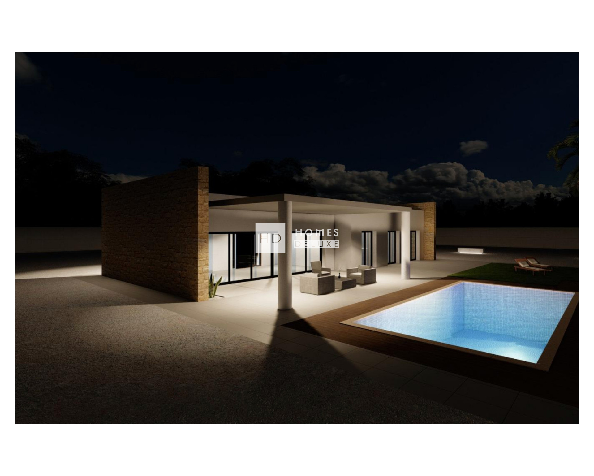 La villa es de una sola planta, con 3 dormitorios y 2 baños. La distribución interior comprende un salón y un comedor diáfanos, luminosos y espaciosos, con grandes ventanales en todo el espacio que permiten la máxima entrada de luz natural y dan acceso a las terrazas delantera y trasera. Dentro de la zona de estar principal hay una elegante y moderna cocina de estilo americano con isla central. El pasillo conduce a la zona de dormitorios de la villa, con el gran dormitorio principal que incluye baño en suite y vestidor. Hay otros dos dormitorios dobles de buen tamaño, todos ellos con puertas que dan acceso a la terraza principal con vistas a la piscina. También hay un cuarto de baño independiente para invitados y un práctico lavadero.