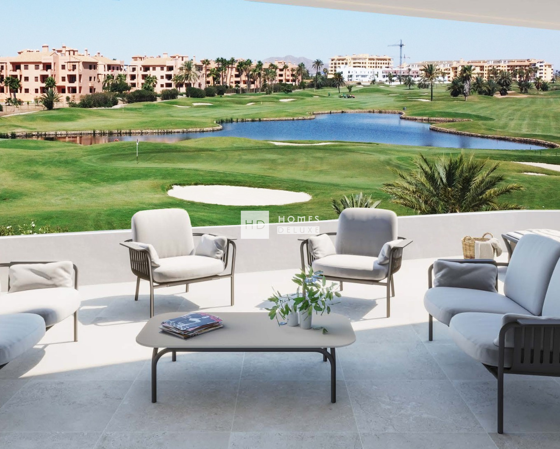 El proyecto combina un diseño contemporáneo con una calidad y funcionalidad excepcionales. Su excepcional ubicación ofrece vistas panorámicas al campo de golf de La Serena y al Mar Menor, proporcionando un remanso de tranquilidad y sofisticación. Cada apartamento cuenta con espacios diseñados con líneas limpias y funcionales, concebidos para una vida cómoda y elegante. Las amplias terrazas a ambos lados de la propiedad son un punto destacado, ya que favorecen la ventilación cruzada y multiplican las vistas al campo de golf y al Mar Menor. Este inteligente diseño no solo mejora el confort interior, sino que también enmarca cada momento del día con luz natural y vistas inolvidables. Los residentes también disfrutan de hermosos jardines comunitarios mediterráneos con una gran piscina comunitaria, todo ello en un conjunto armonioso diseñado para disfrutar del clima y el estilo de vida mediterráneos.