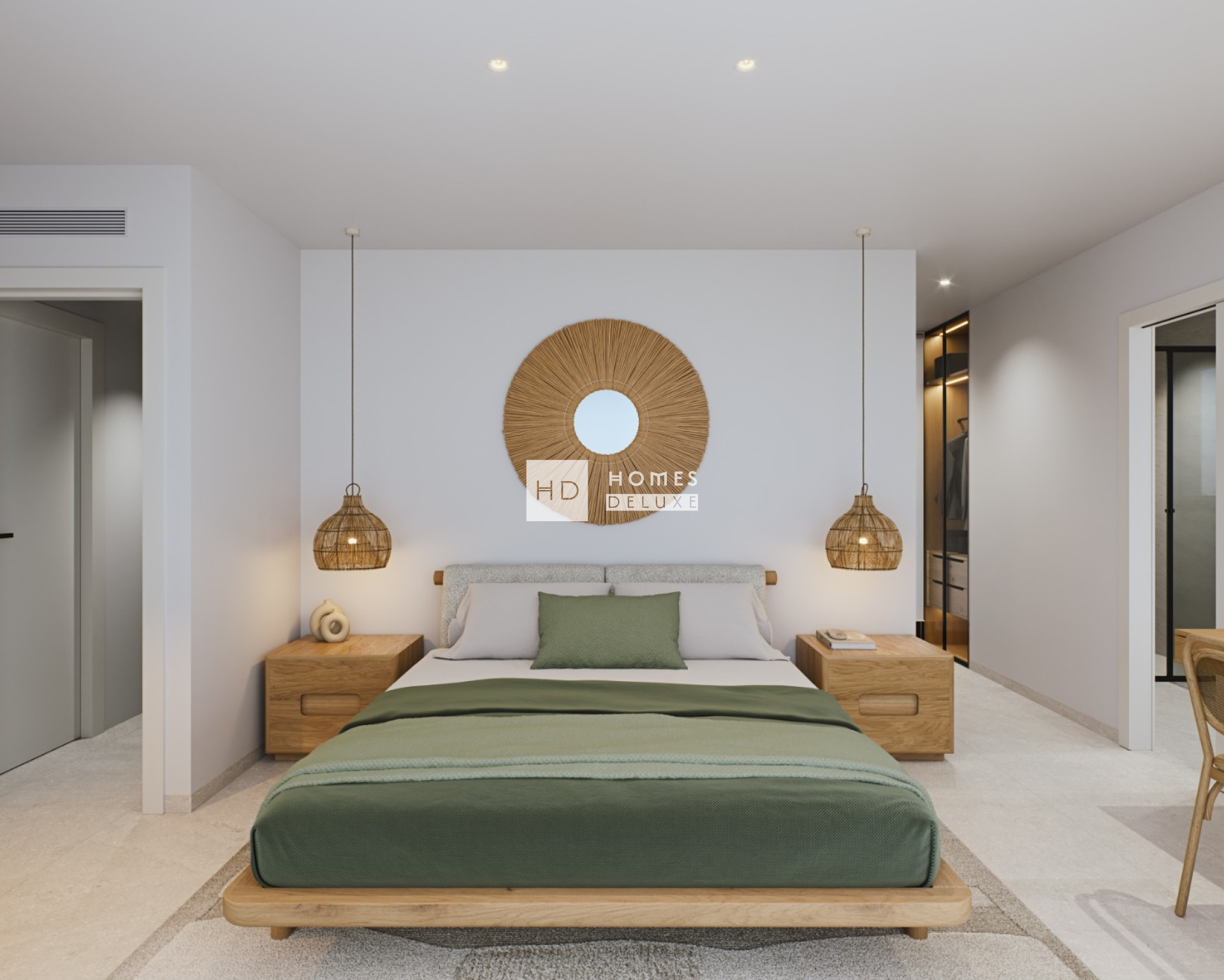 Las propiedades están construidas con los más altos estándares y diseñadas con un estilo contemporáneo funcional y hermoso, con paredes de piedra. Las villas tienen dos niveles y también incluyen un sótano y un gran solárium en la azotea. La distribución interior consta de un salón y un comedor diáfanos, amplios y luminosos, con grandes ventanales que permiten que la luz natural inunde todo el espacio y que dan a un precioso jardín privado. Dentro de la sala de estar principal hay una cocina moderna de estilo americano totalmente equipada con muebles de diseño y una isla central. La cocina también tiene una puerta de acceso a la terraza. La planta baja también incluye un dormitorio doble de buen tamaño y un cuarto de baño con acceso por doble puerta desde el dormitorio o la sala de estar. La escalera interior conduce a la primera planta, donde se encuentra el impresionante dormitorio principal con cuarto de baño en suite y vestidor con amplio espacio de almacenamiento. La suite principal también tiene puertas que dan a la maravillosa terraza. Hay otras dos amplias habitaciones dobles, ambas con baño en suite, en la primera planta. Las villas cuentan con un gran sótano de 74 m² con un patio inglés que permite la ventilación y la iluminación natural, lo que crea un espacio adicional dentro de la propiedad para satisfacer sus necesidades y requisitos.