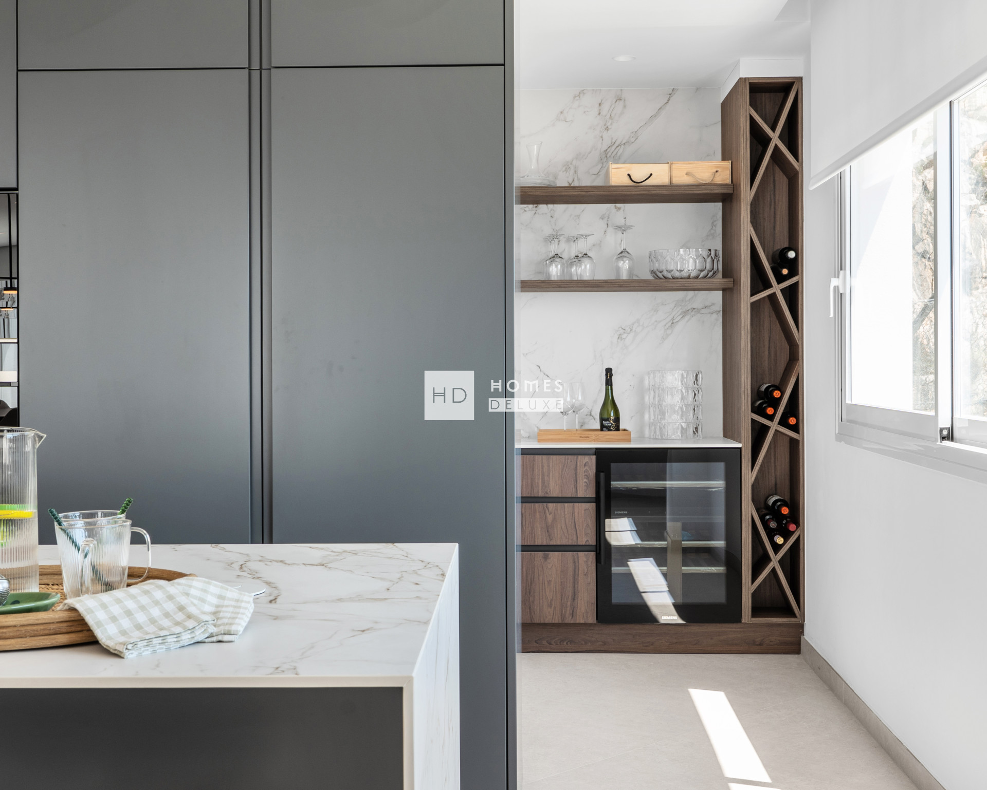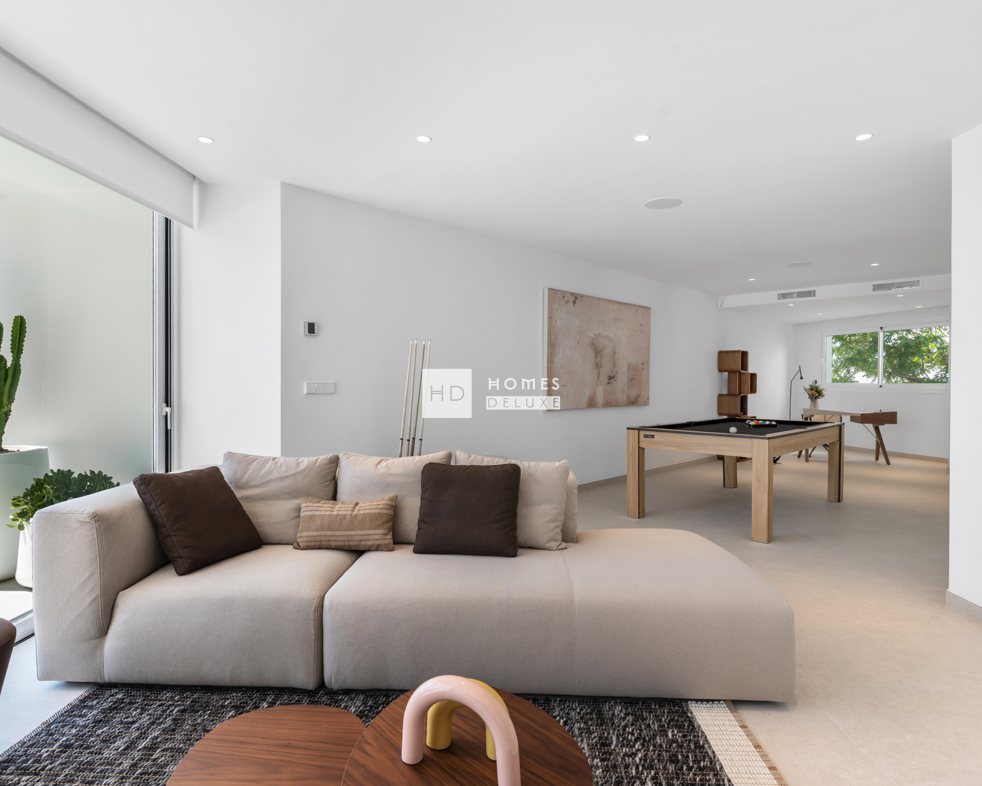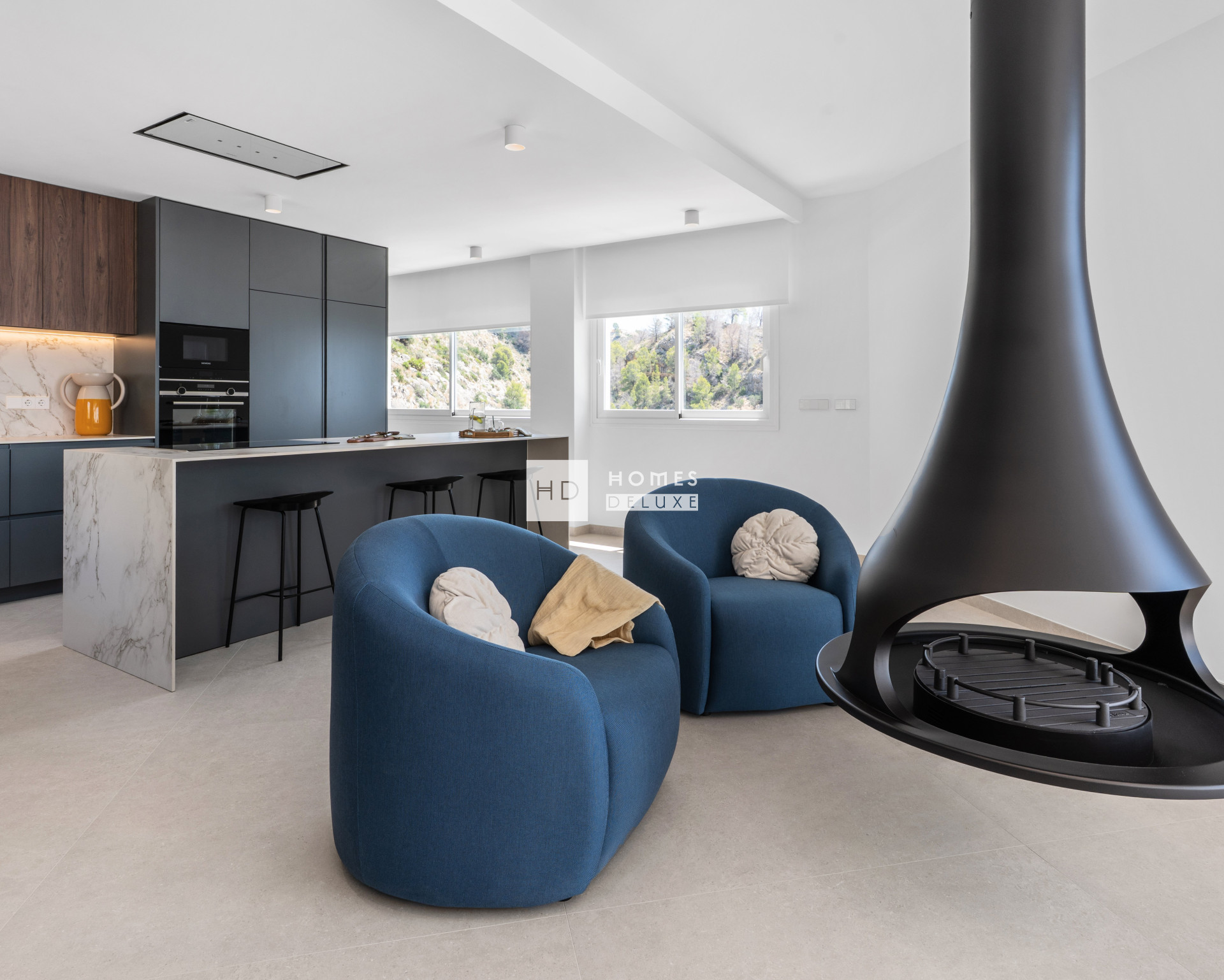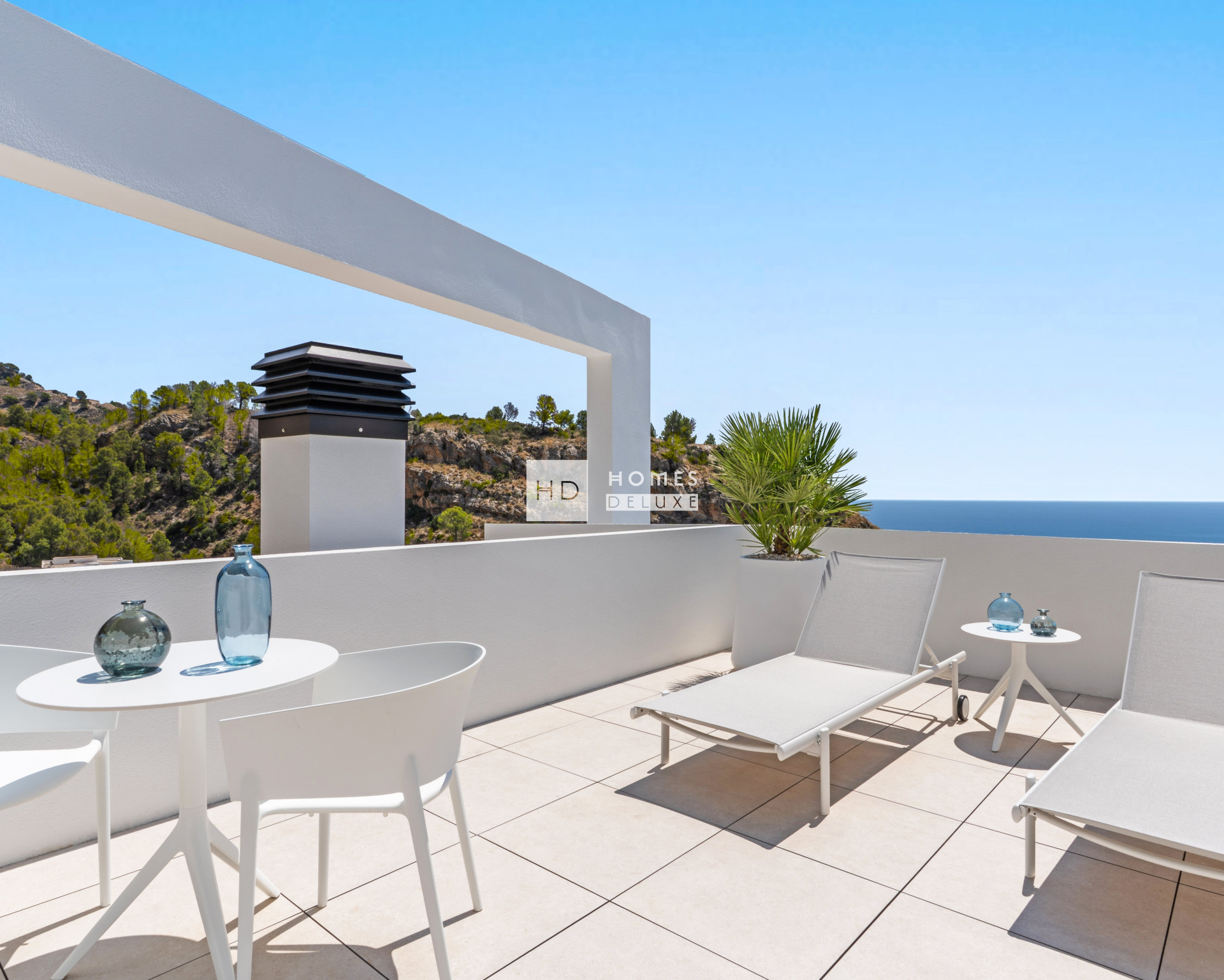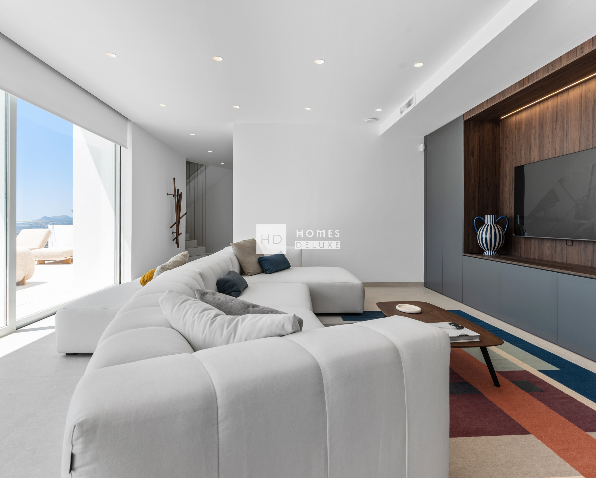 En Altea, entre el azul del mar y el verde de los pinares, se encuentra Blanc-19, una vivienda de cuatro plantas con un diseño pensado para abrazar el paisaje. Desde sus terrazas, las vistas se extienden hacia el Mediterráneo, los bosques costeros y el perfil urbano de Benidorm, creando una conexión visual que transforma cada día en una experiencia única. La casa se desarrolla en varios niveles perfectamente integrados y conectados mediante ascensor, con una distribución que permite separar zonas de descanso, ocio y convivencia. La planta principal acoge los espacios comunes, donde el salón, la cocina y el comedor se comunican en un ambiente continuo y luminoso. En los niveles superiores e inferiores se reparten los 4 dormitorios, zona de ocio con zona de TV y billar, zona de despacho, espacios de almacenaje. El dormitorio principal está en la última planta, un espacio privado con un gran dormitorio, vestidor, baño con bañera exenta y terraza privada. La vivienda incluye un amplio garaje con capacidad para tres vehículos y preinstalación para punto de recarga de coche eléctrico. La vivienda está terminada, amueblada y decorada, lista para recibir a sus propietarios y empezar a vivirla desde ya. El interior refleja una estética limpia y mediterránea, con pavimentos en tonos arena, superficies blancas y grandes ventanales que inundan los espacios de luz. Blanc-19 está equipada con materiales de alta calidad, soluciones técnicas eficientes y todos los elementos necesarios para una vida cómoda y contemporánea. Desde el primer paso dentro de la vivienda, el paisaje está presente. Atardeceres cálidos, vistas despejadas y una sensación constante de tranquilidad hacen de esta casa una verdadera expresión del estilo de vida mediterráneo.