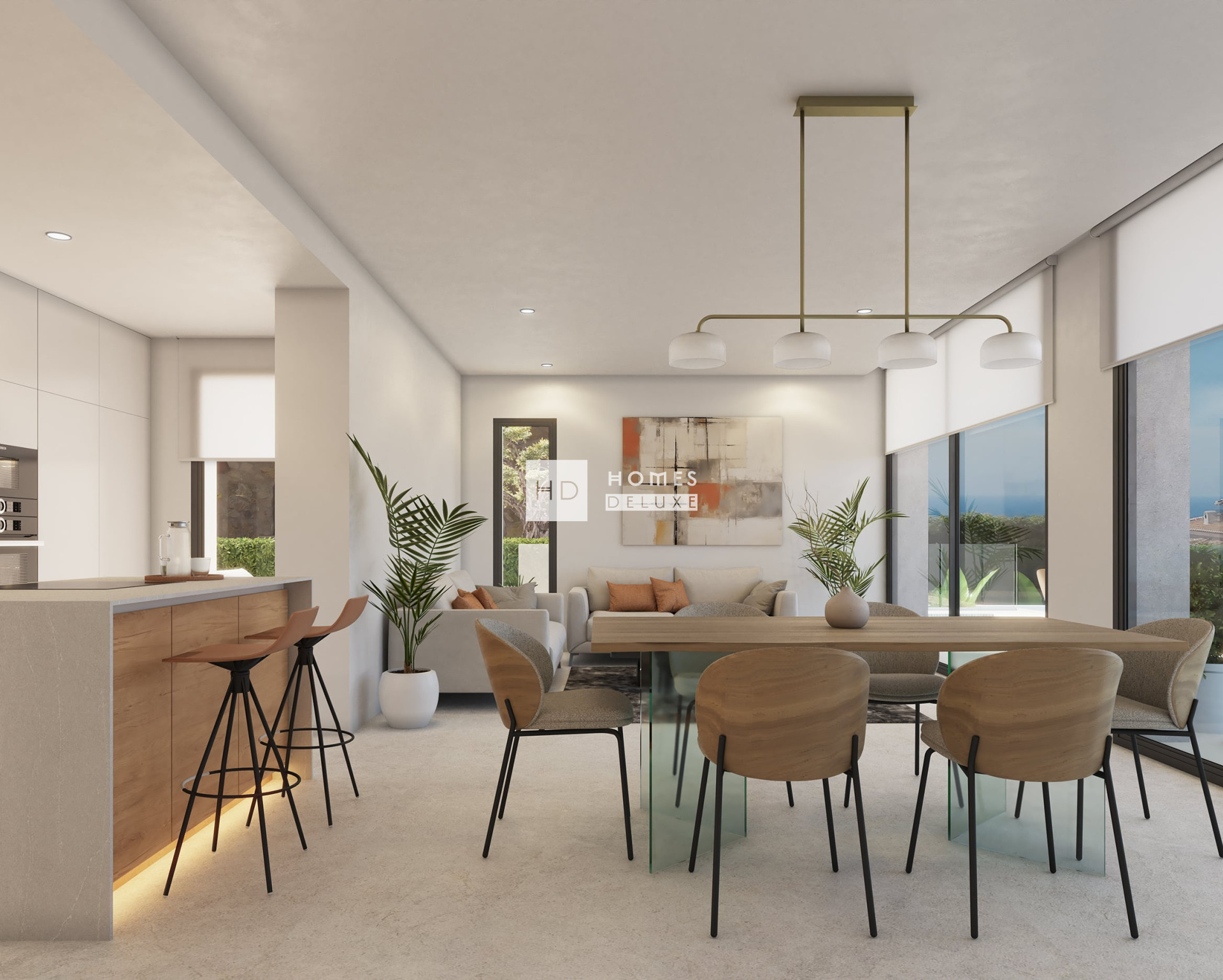 En la parcela 74 del Residencial Magnolias, en Cumbre del Sol, se encuentra Villa Bianca, una vivienda que destaca por su arquitectura contemporánea, espacios amplios y orientación al mar Mediterráneo. Este exclusivo proyecto combina diseño moderno, funcionalidad y vistas abiertas al horizonte, ofreciendo un estilo de vida lleno de confort y elegancia. La distribución de Villa Bianca se organiza en dos plantas y un sótano. En la planta principal se ubica el núcleo de la vivienda: un espacio abierto donde confluyen la cocina, el comedor y el salón, todo con acceso directo a la terraza y a la piscina infinity. Este nivel también alberga un dormitorio con baño en suite y un aseo de cortesía. En la planta superior se encuentran dos amplios dormitorios con baños en suite y acceso a una gran terraza privada, ideal para disfrutar del clima y las vistas. En la planta sótano, de más de 80 m², hay un espacio diáfano con terraza privada que se puede acondicionar como dormitorio de invitados, gimnasio, despacho o lo que el futuro propietario necesite. El diseño interior ha sido cuidadosamente pensado, con una paleta de materiales naturales como la madera, la piedra y los tonos neutros, que aportan calidez a los espacios. La cocina destaca por su funcionalidad y estética moderna, equipada con electrodomésticos de primeras marcas y una isla central con barra para desayunos. El comedor y el salón, inundados de luz natural gracias a los grandes ventanales, se integran con el exterior gracias a una decoración que privilegia el confort sin perder elegancia. En el exterior, la piscina infinity se convierte en el centro de la vida al aire libre, acompañada por zonas de descanso, comedor exterior y una terraza ajardinada con vistas al mar. Todo el proyecto ha sido concebido para vivir de manera práctica, eficiente y estética, con una atención especial a los detalles y acabados.
